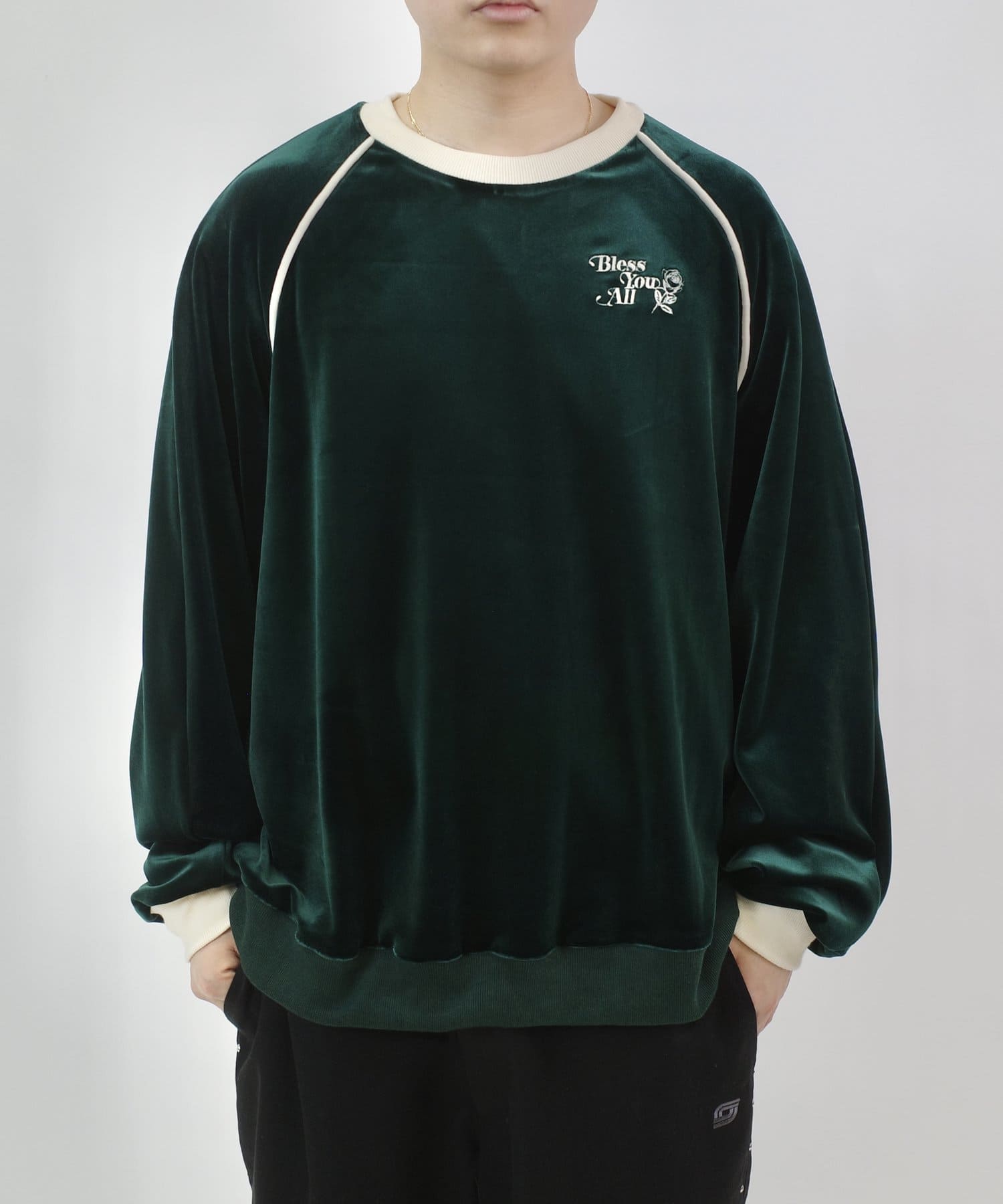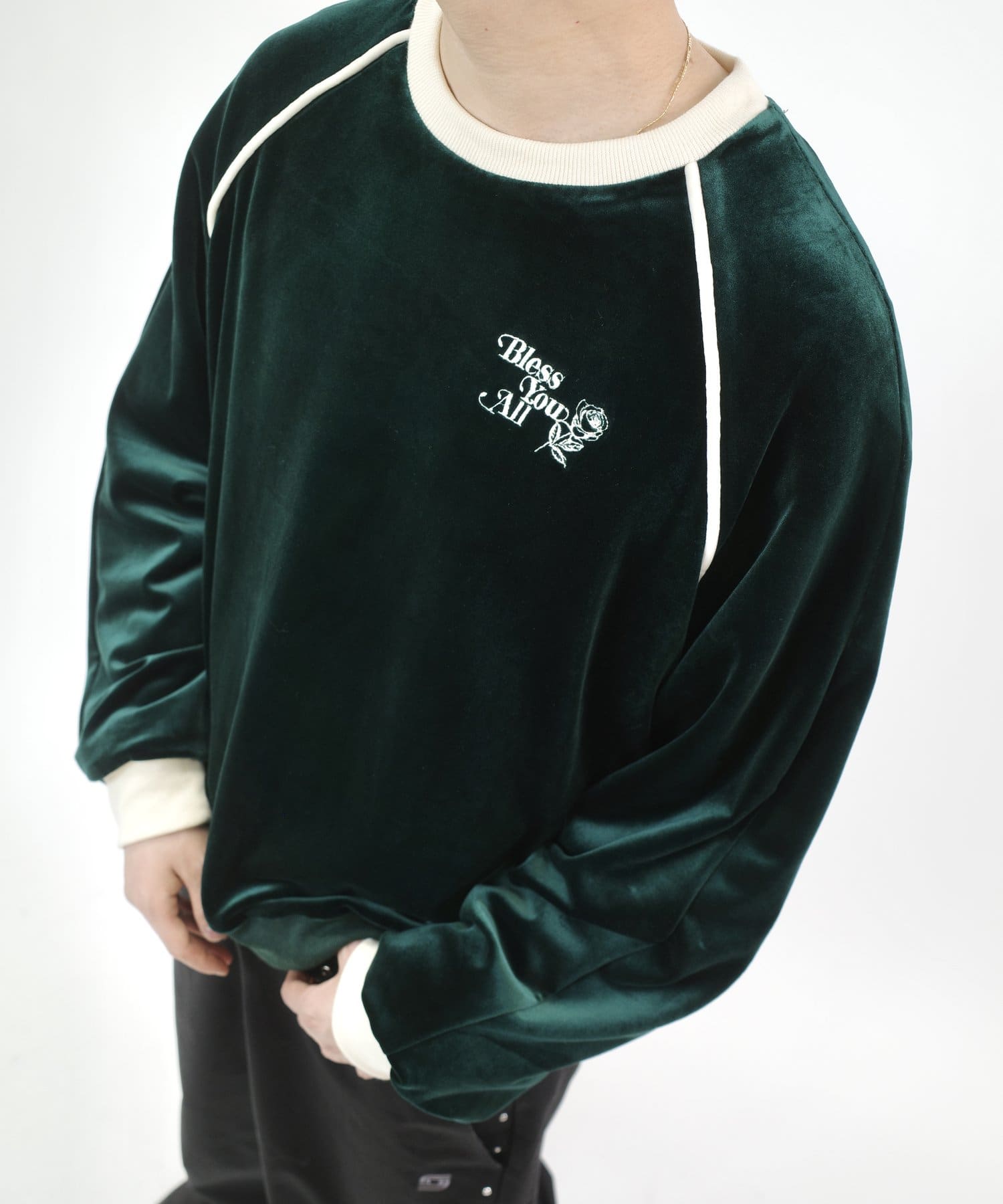 ・胸元にはBLESSYOUの刺繍ロゴ。