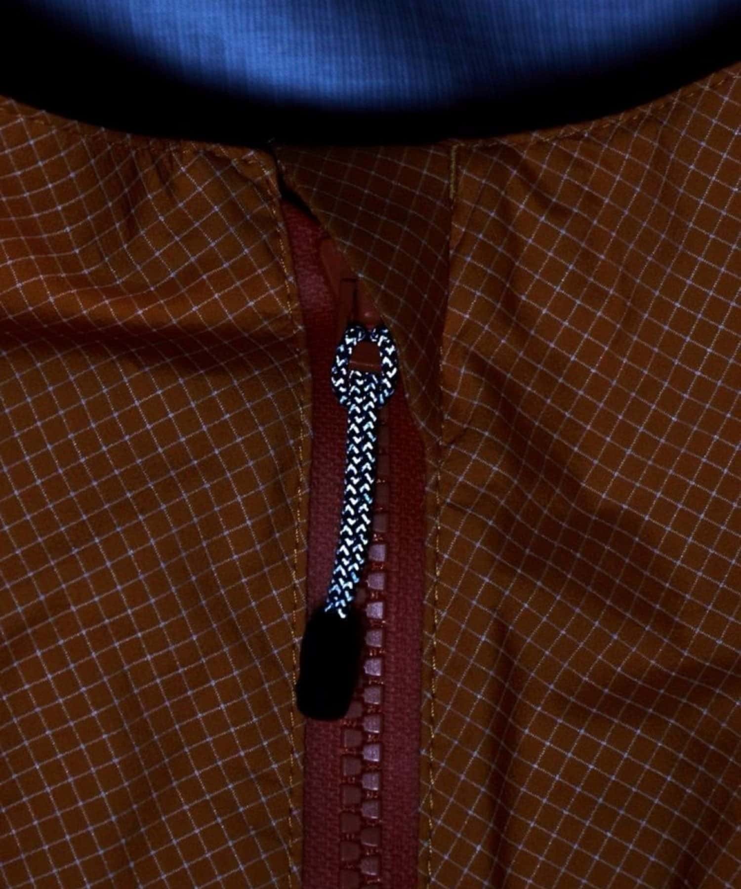 胸のロゴやファスナーの引き手はリフレクト仕様で、夜間の視認性を向上。