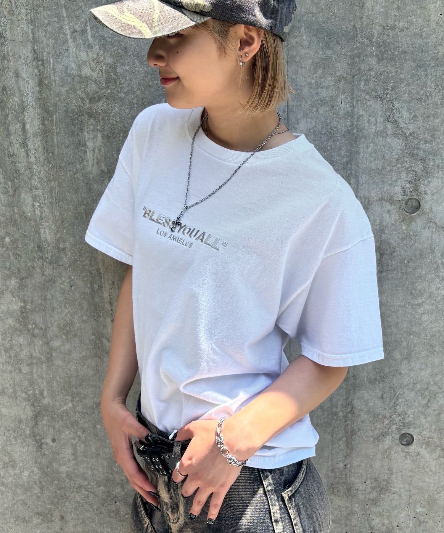 【BLESSYOU/ブレスユー】ピグメント刺繍ロゴTEE