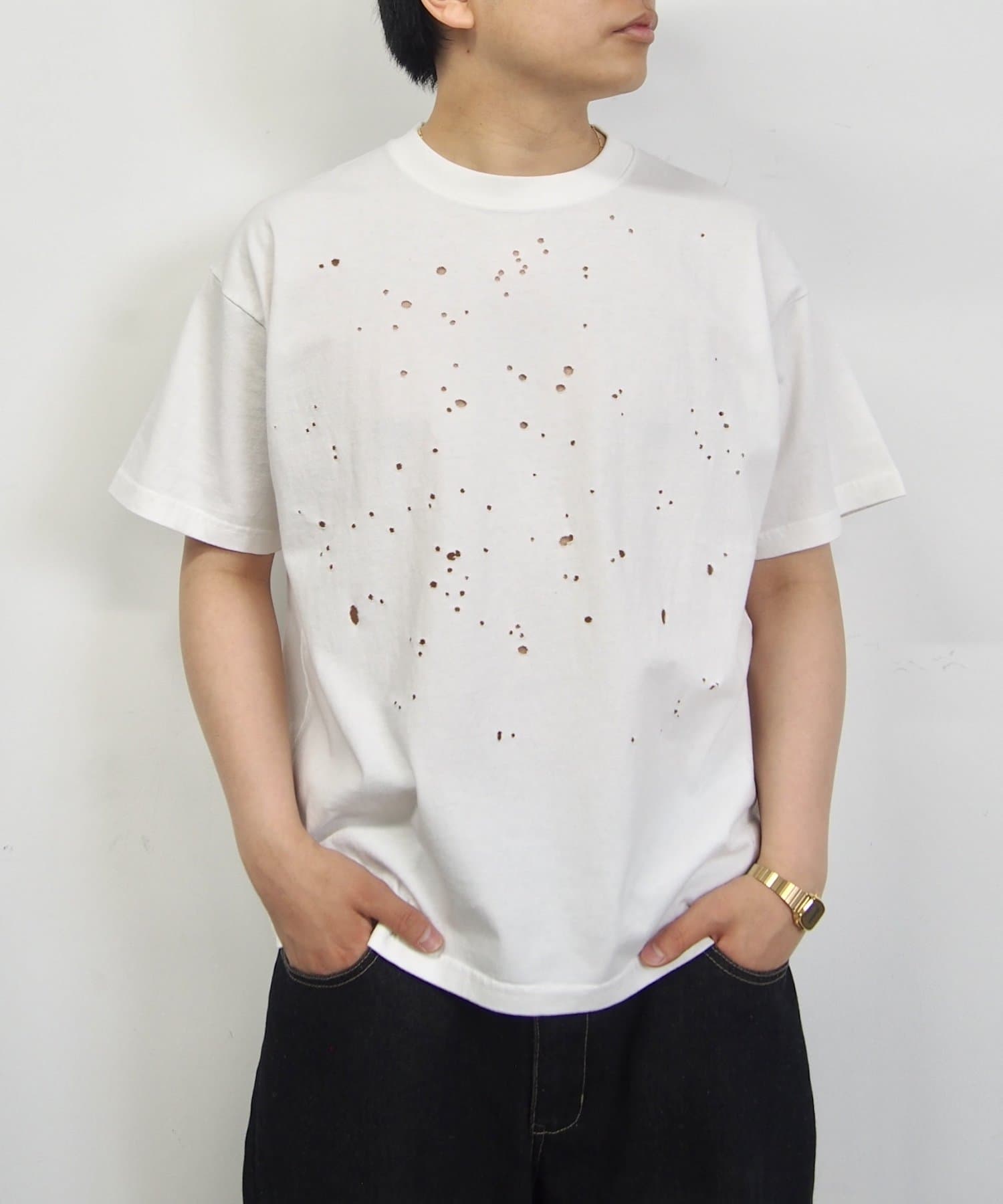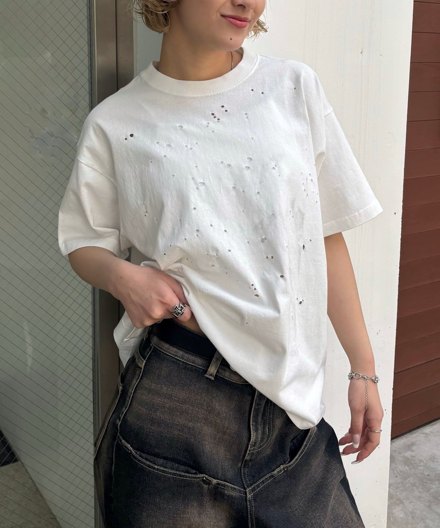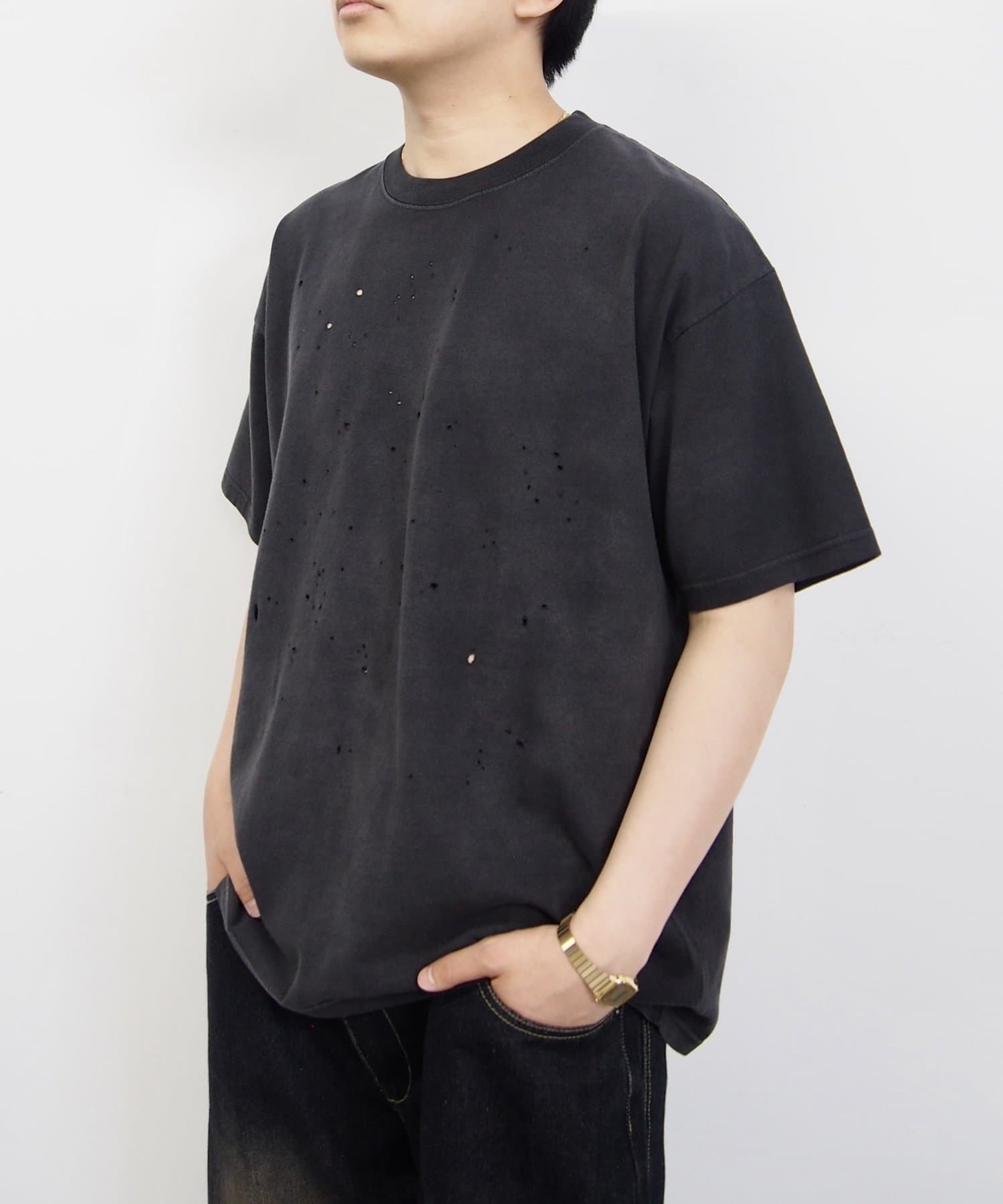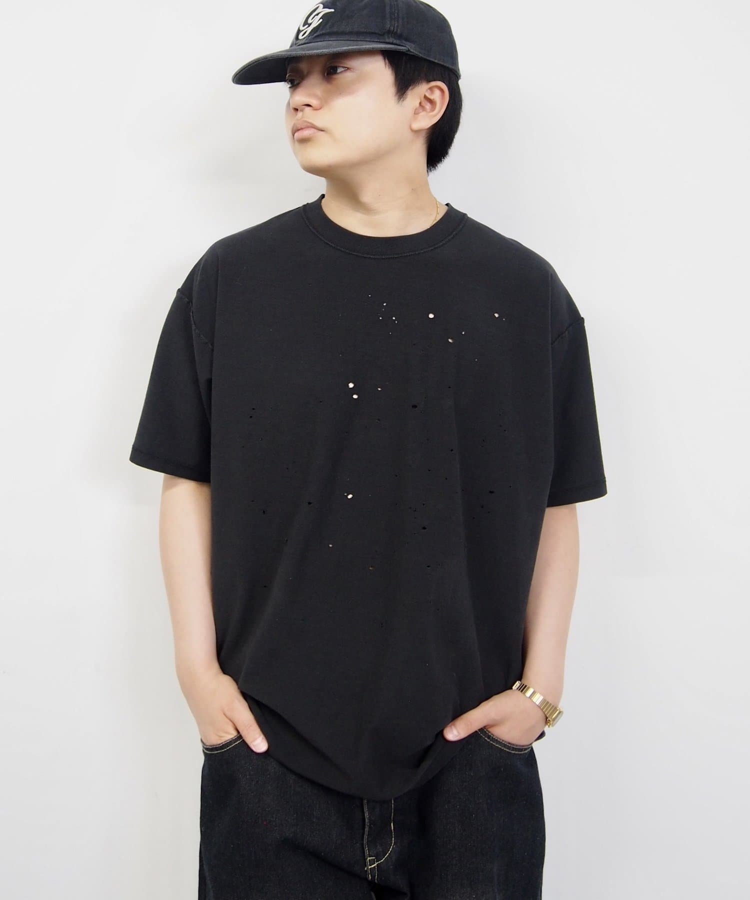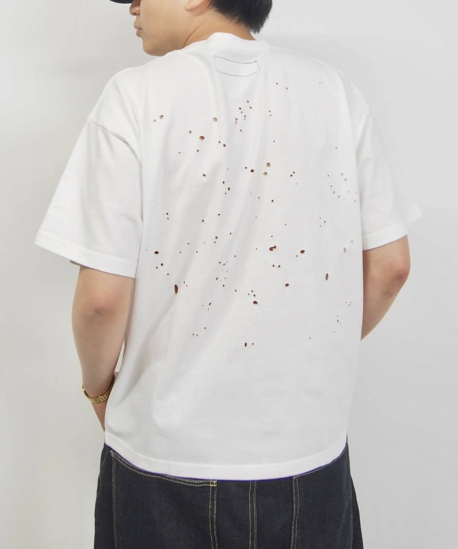 施し,ダメージ加工を重ね1枚でも主役になれるデザインTEEに昇華。