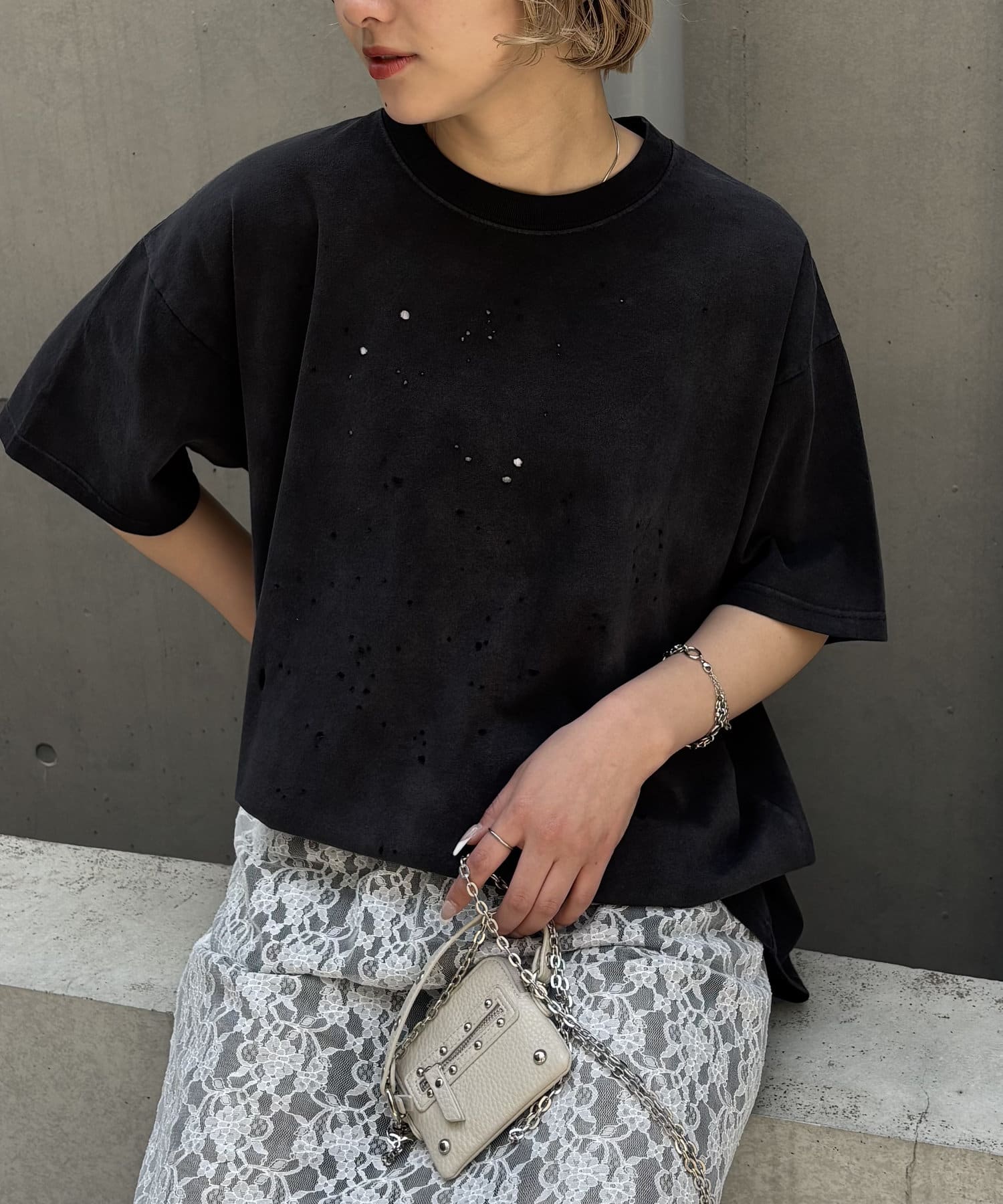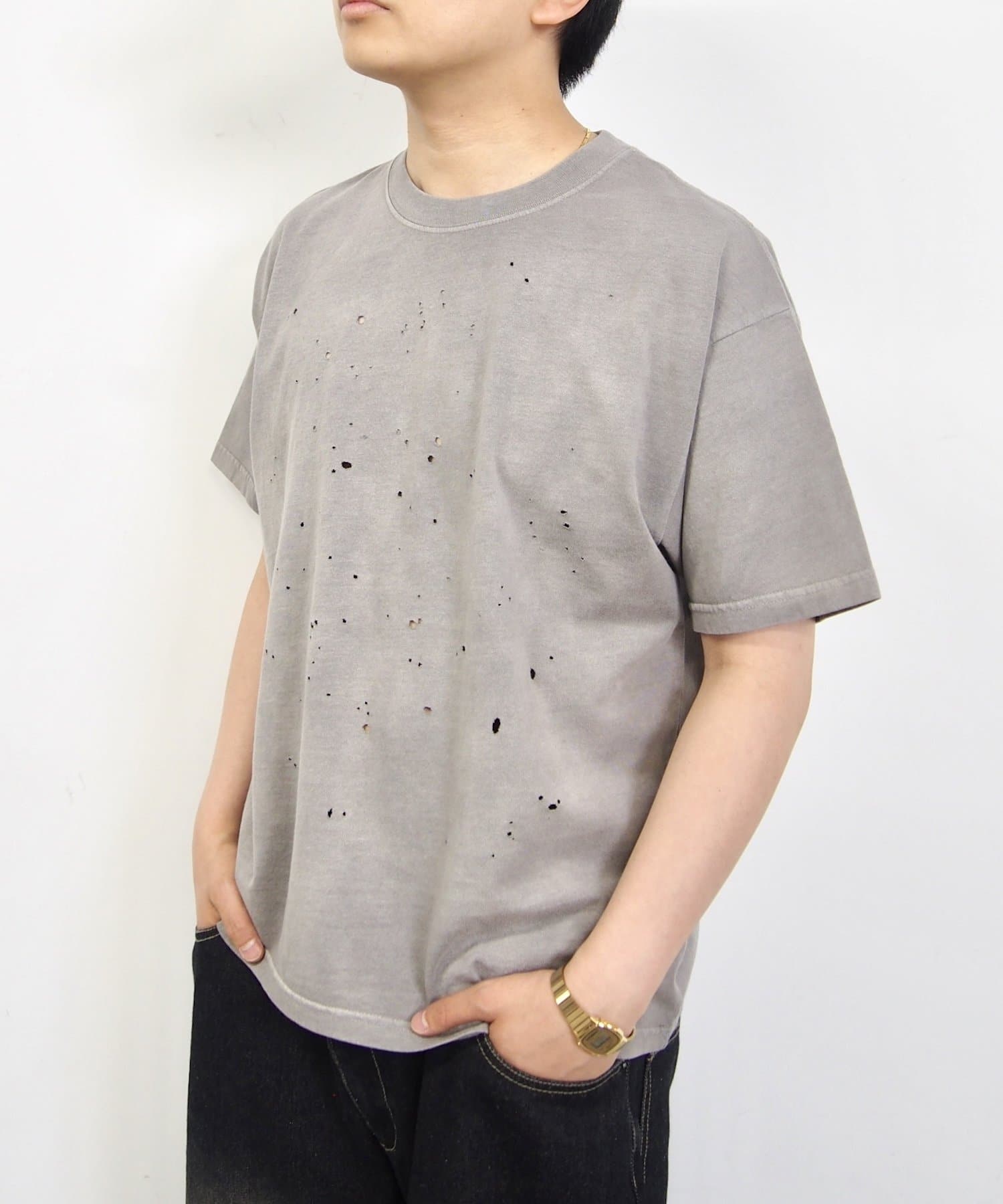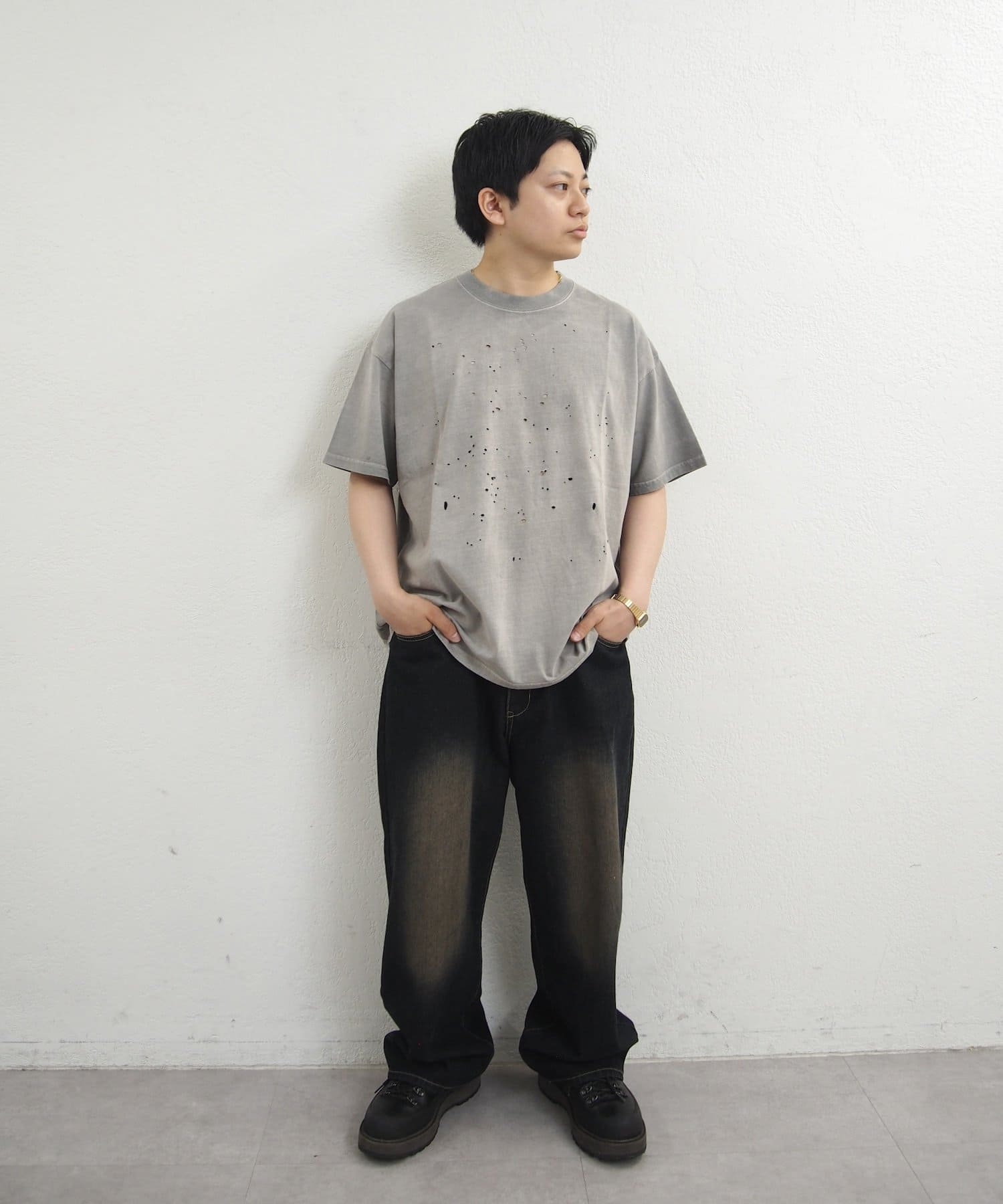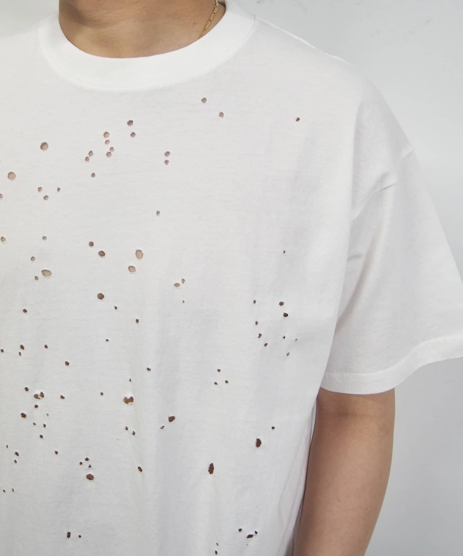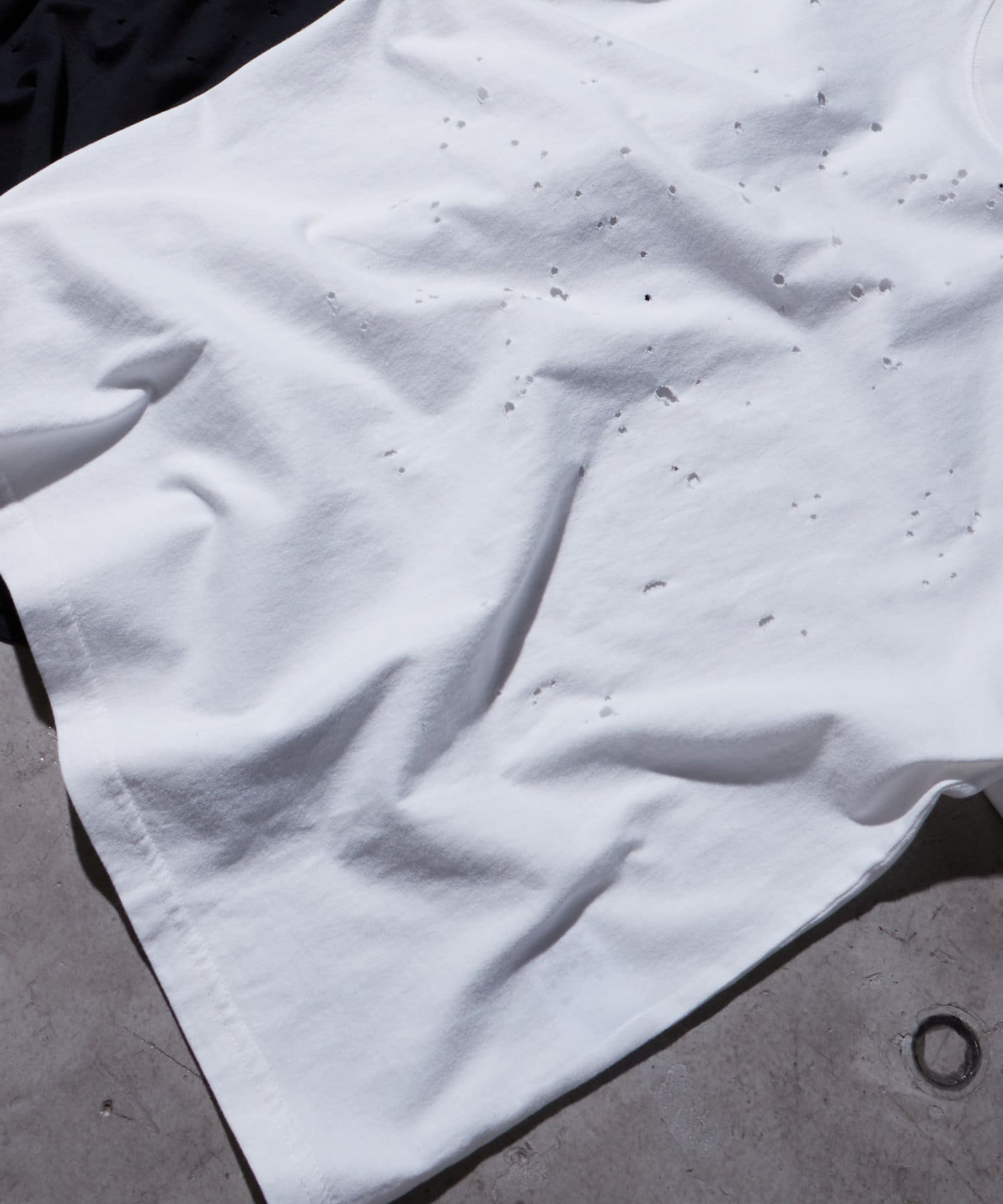 施し,ダメージ加工を重ね1枚でも主役になれるデザインTEEに昇華。