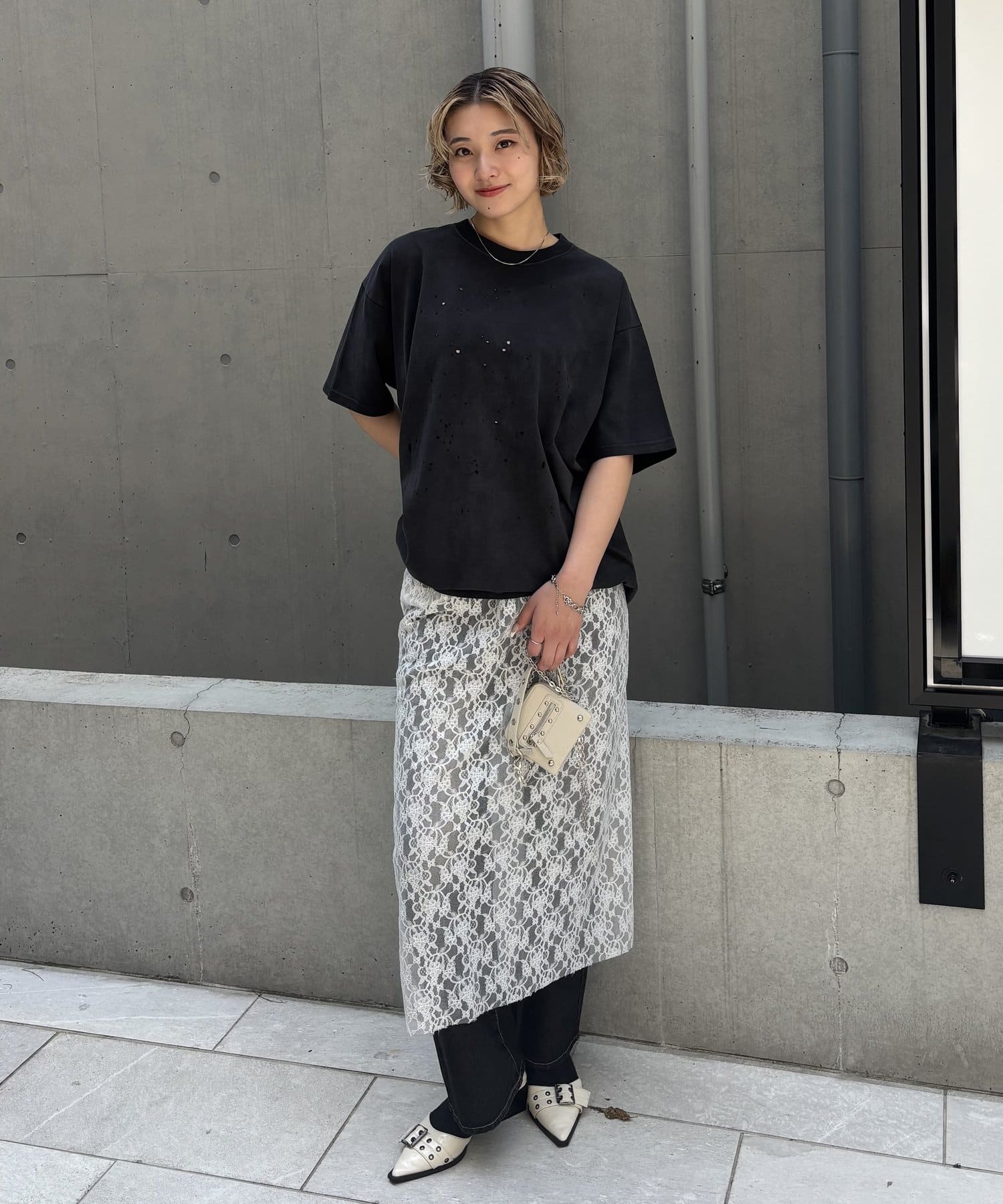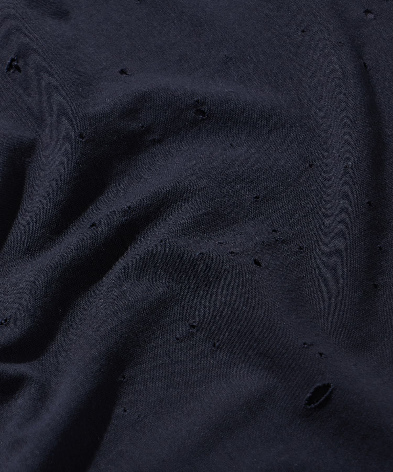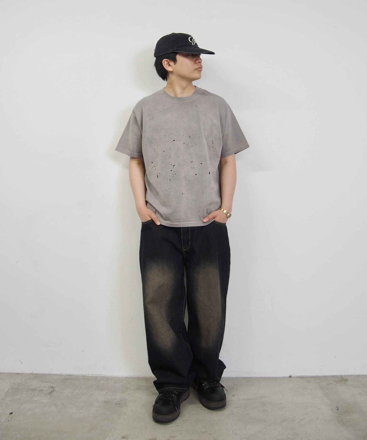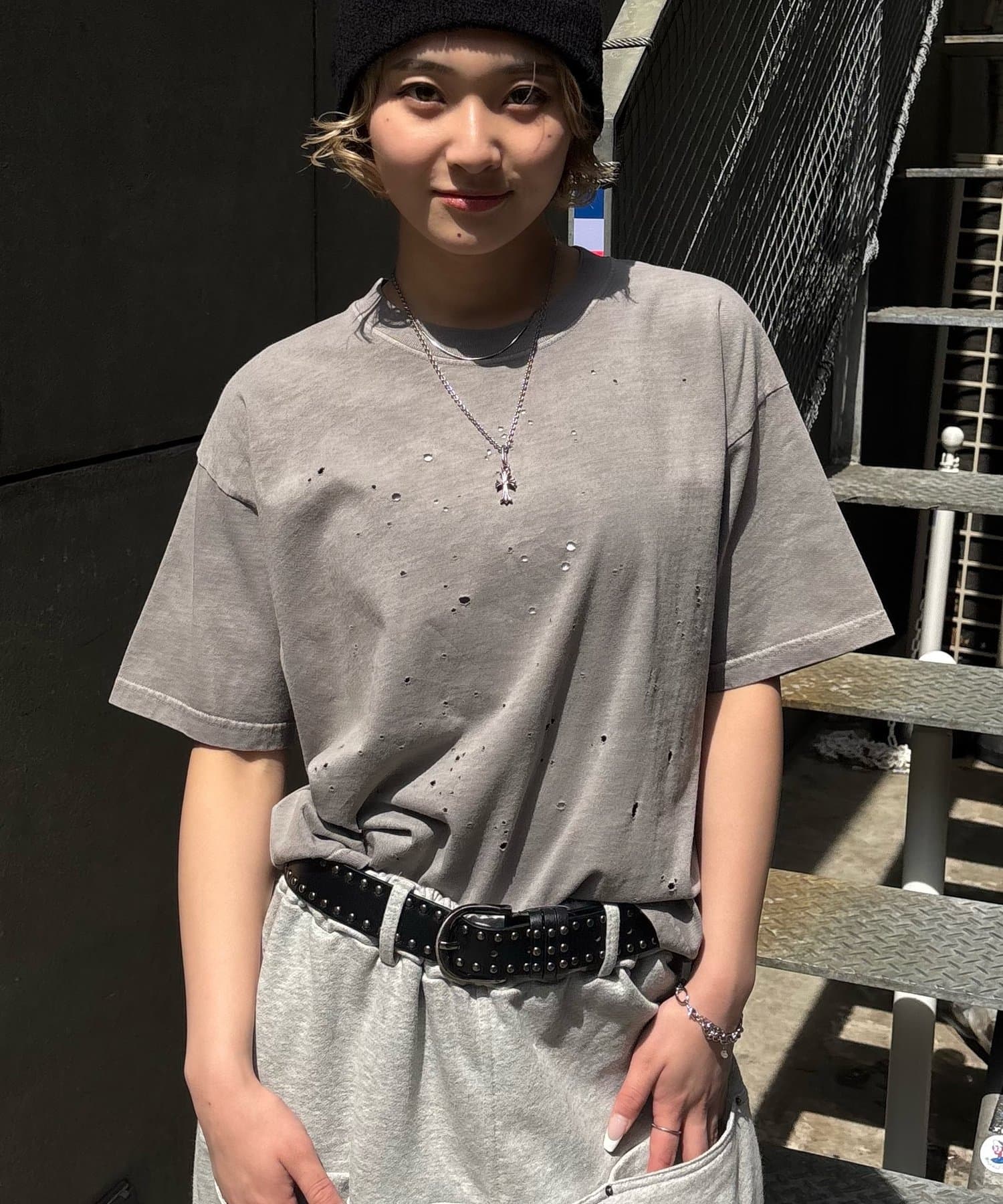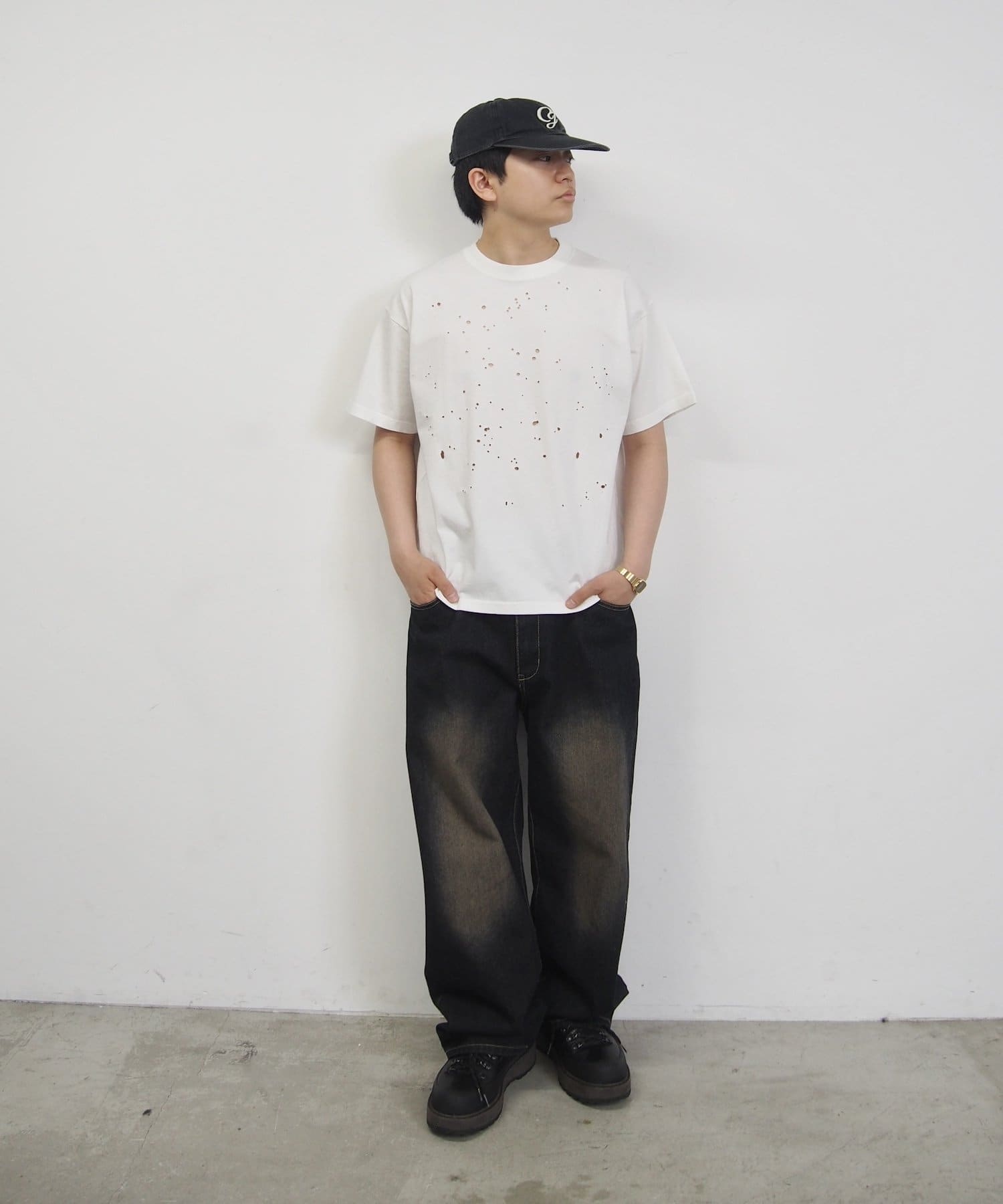 施し,ダメージ加工を重ね1枚でも主役になれるデザインTEEに昇華。
