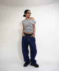 Lサイズはゆとりが出るシルエット。ワイドシルエットで履くのがおすすめです。