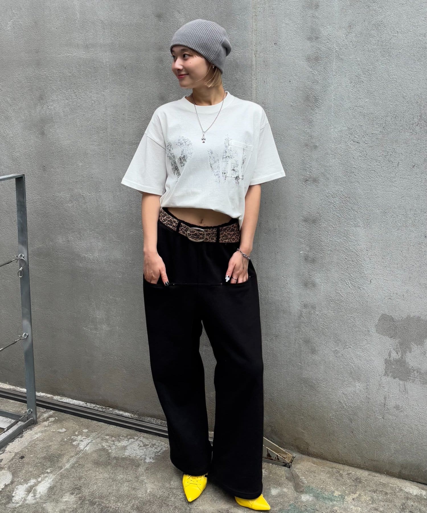 ・トレンドになりつつあるスウェットパンツと合わせて、ラフにオシャレなコーデに。