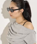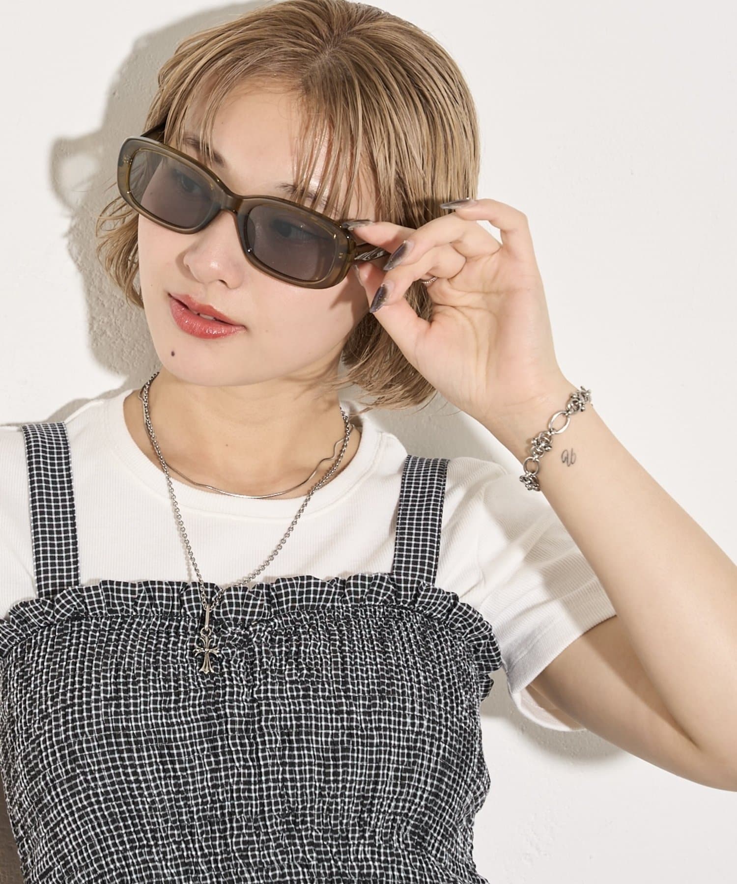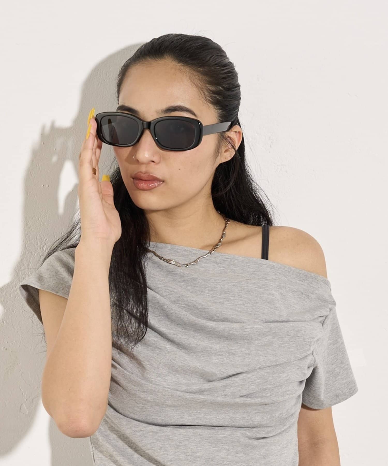・丸みのあるスクエア型で柔らかい印象ながらもサングラスなのでクールなイメージに。
