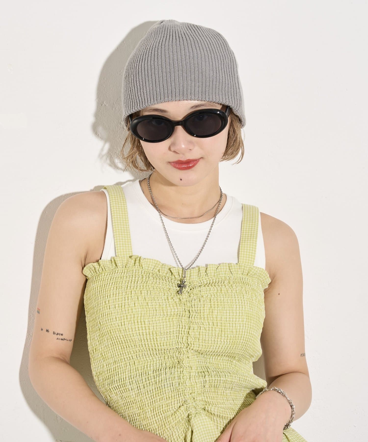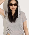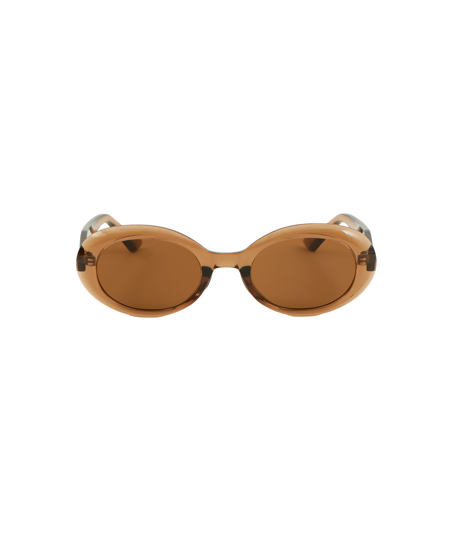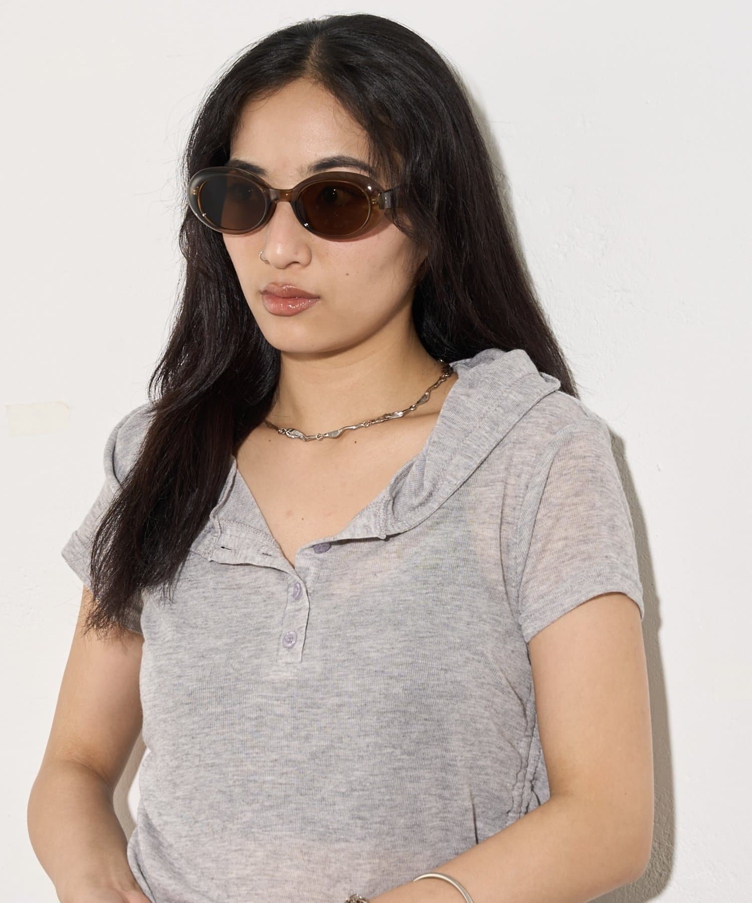 ・丸みのあるオーバル型で柔らかい印象ながらもサングラスなのでクールなイメージに。