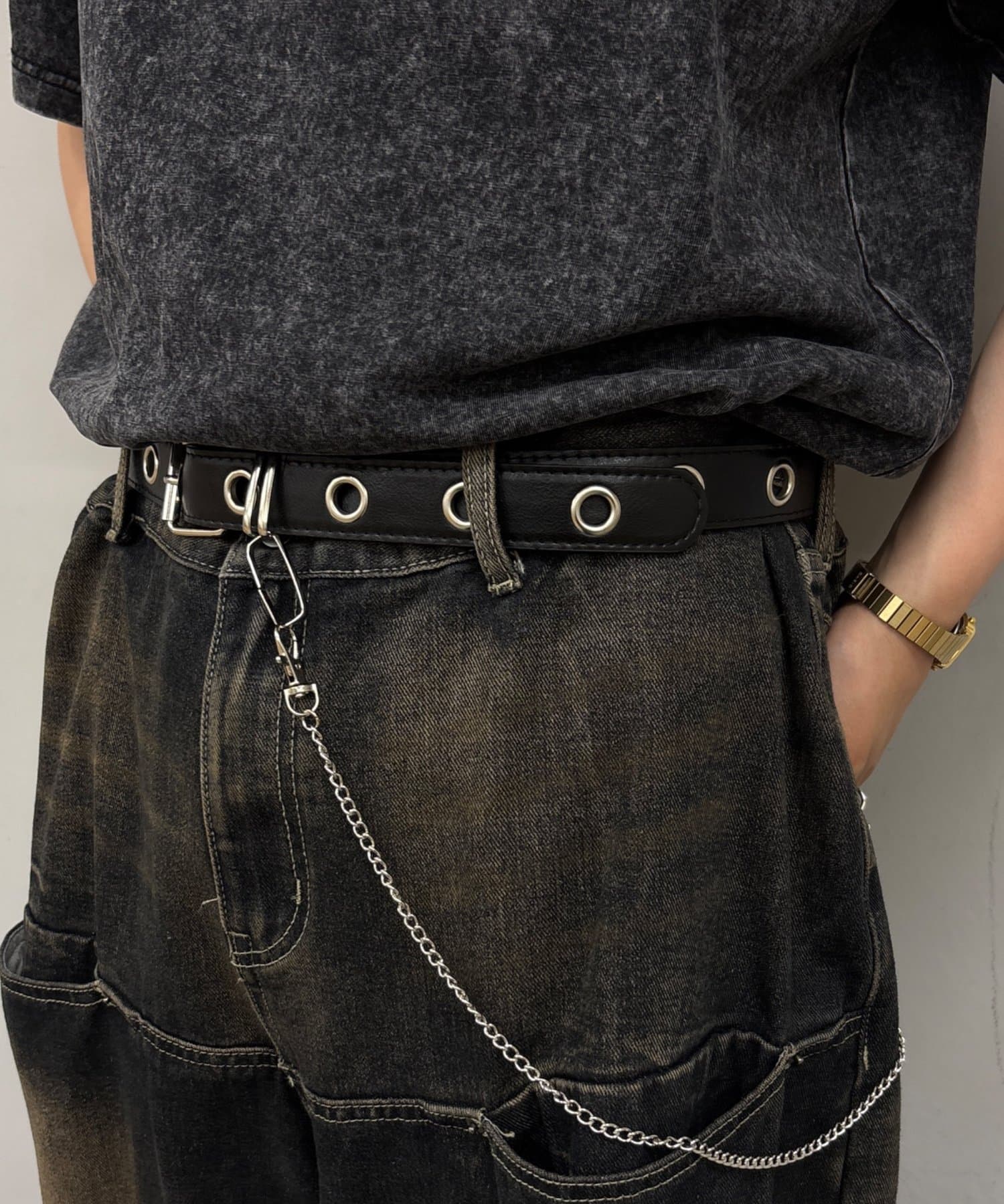 ・ウォレットチェーン付きのデザインベルト。