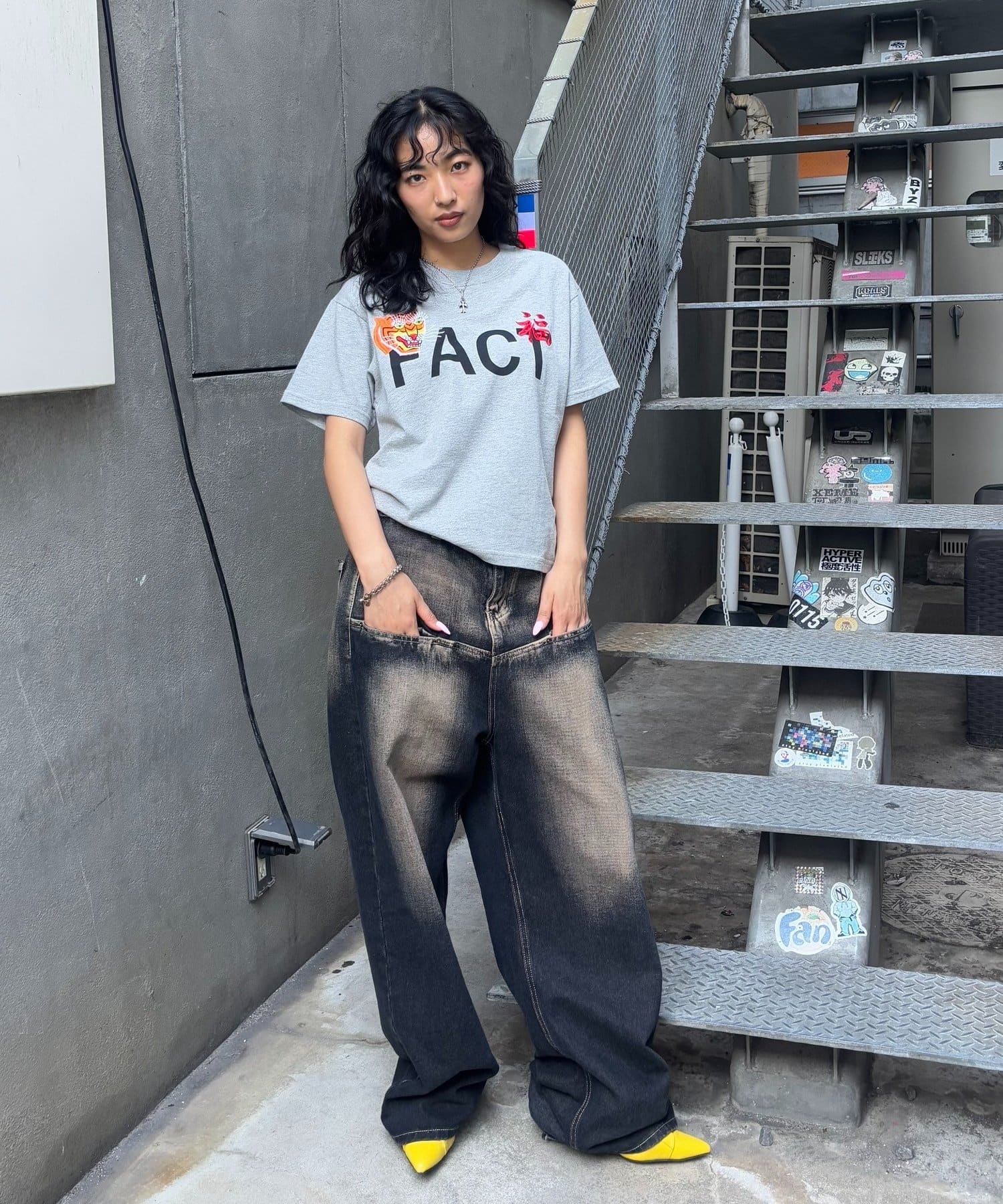 • 165cm/骨格ウェーブ/Mサイズ着用PN/スラッシュポケットブラストワイドデニム