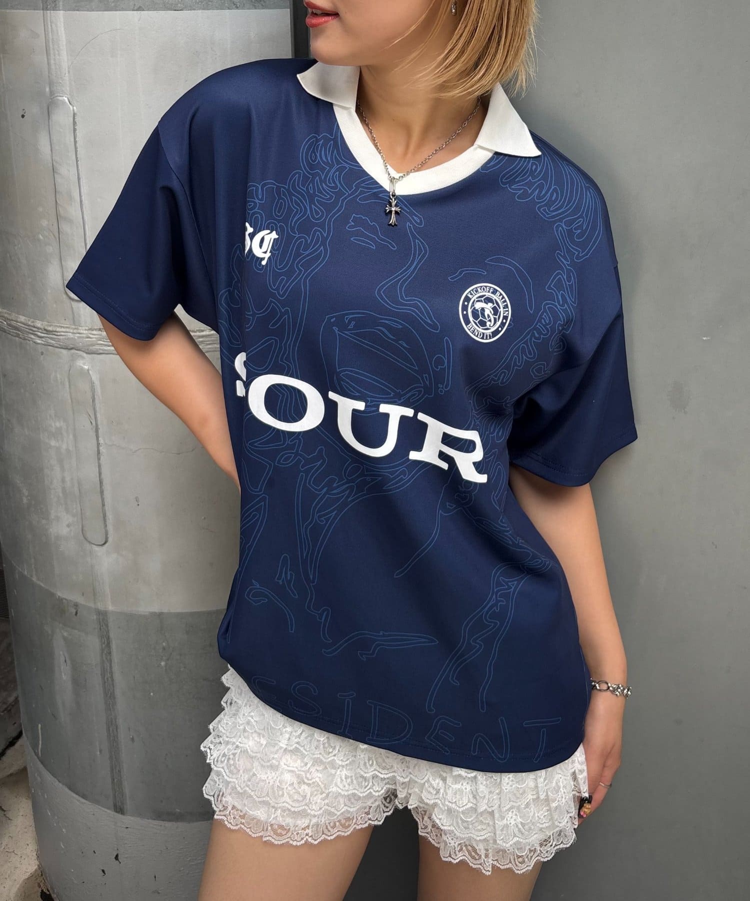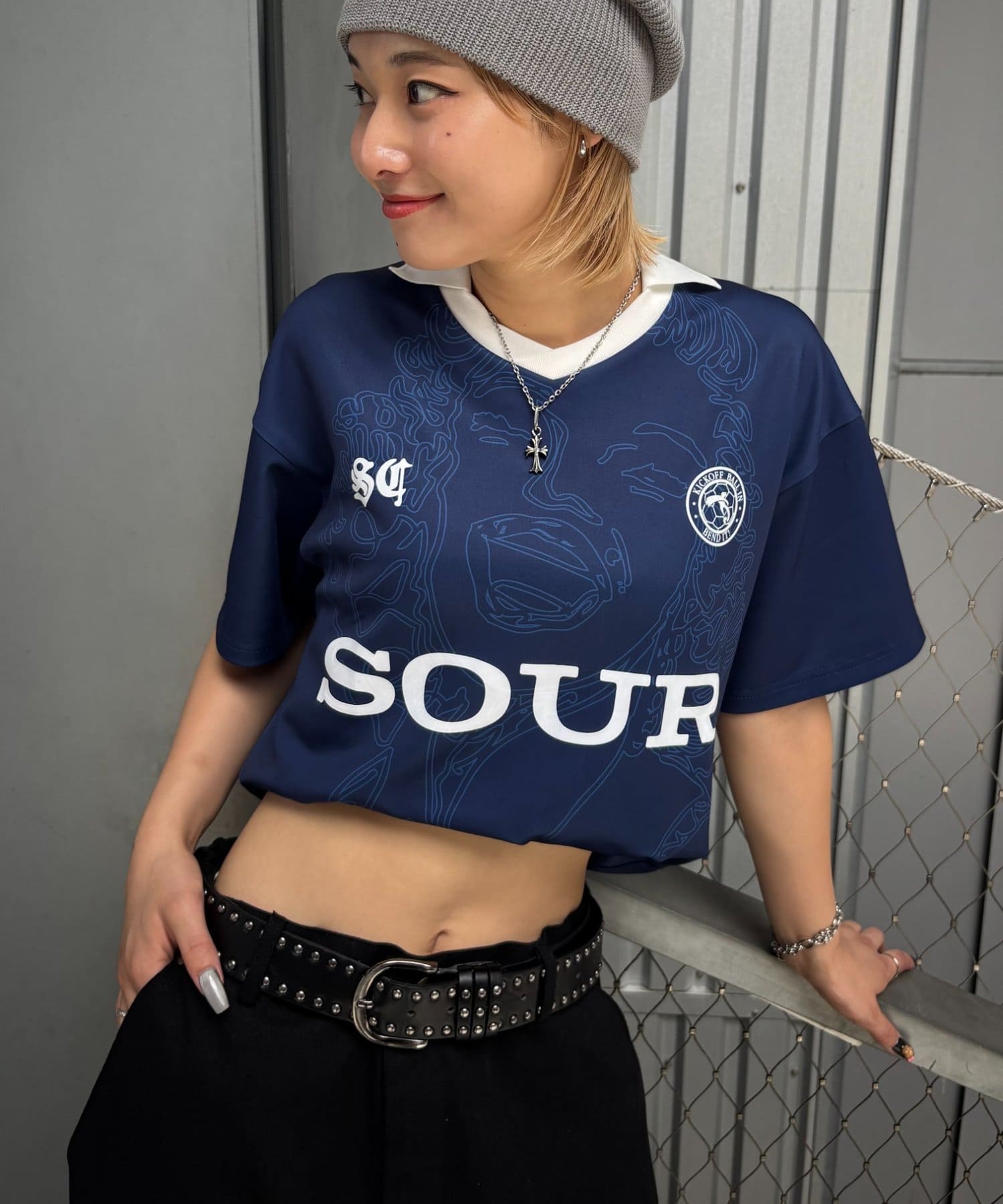 ・フロントの【SOUR CREAM】ロゴと、ユニフォーム風のデザインが個性的