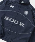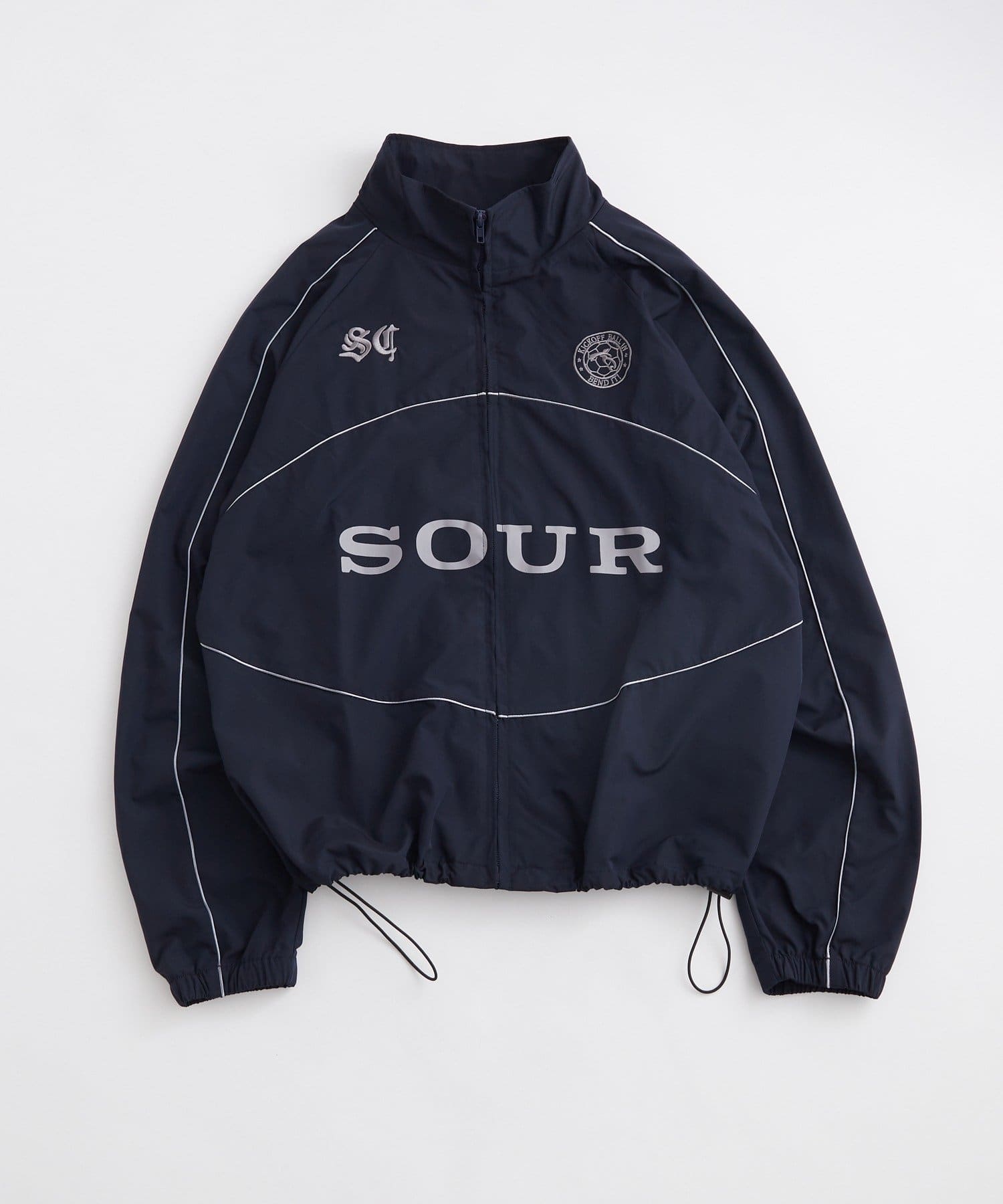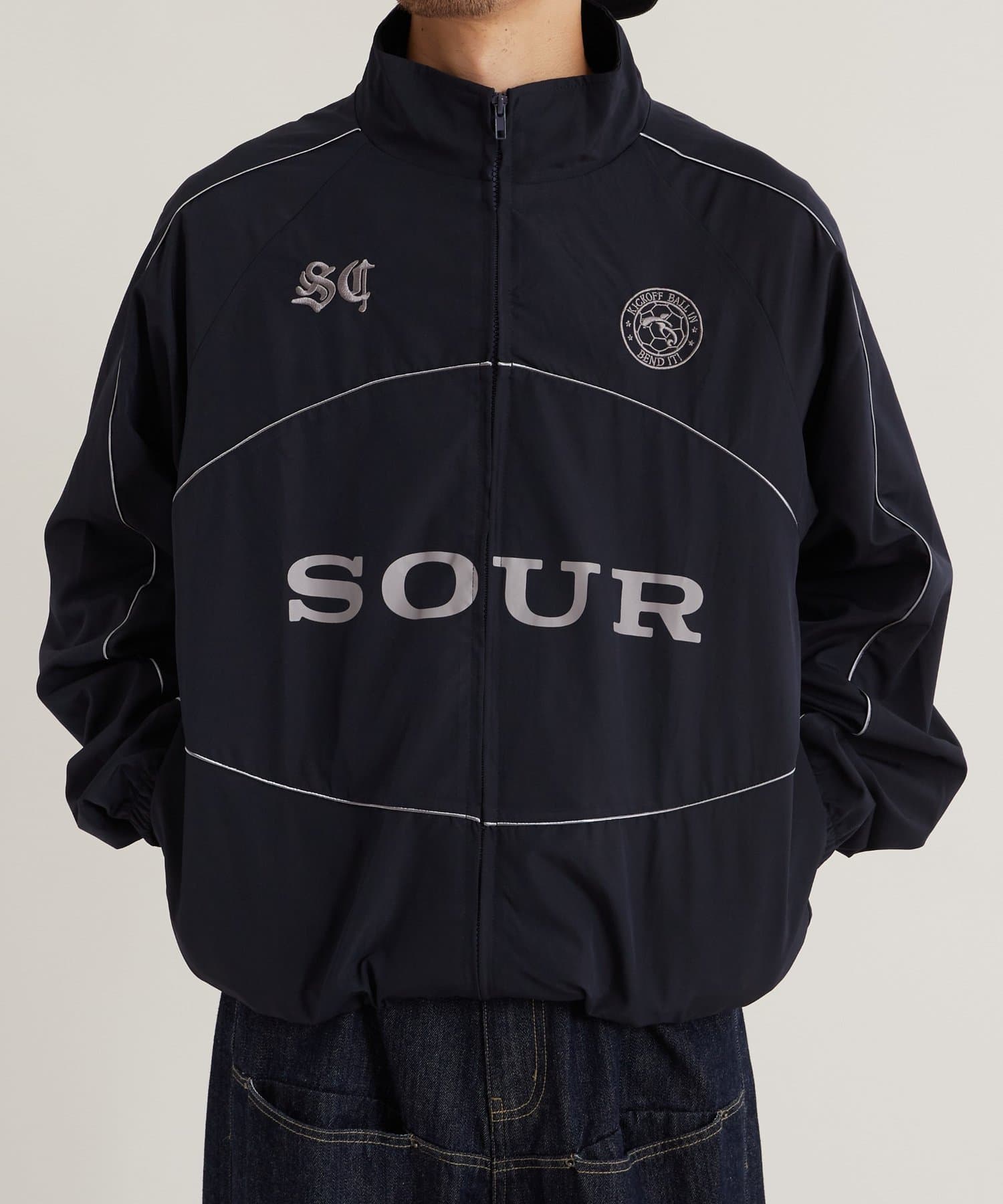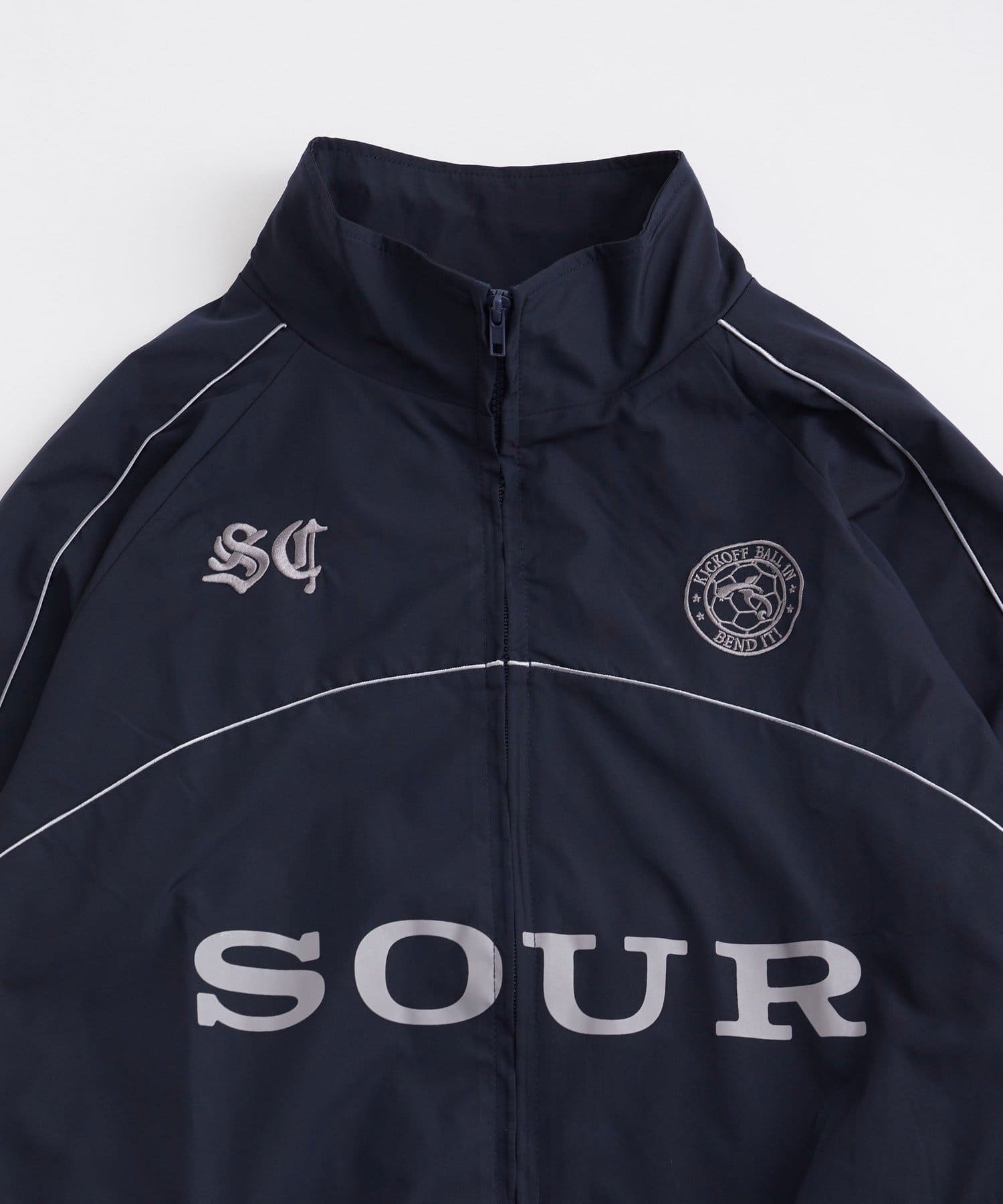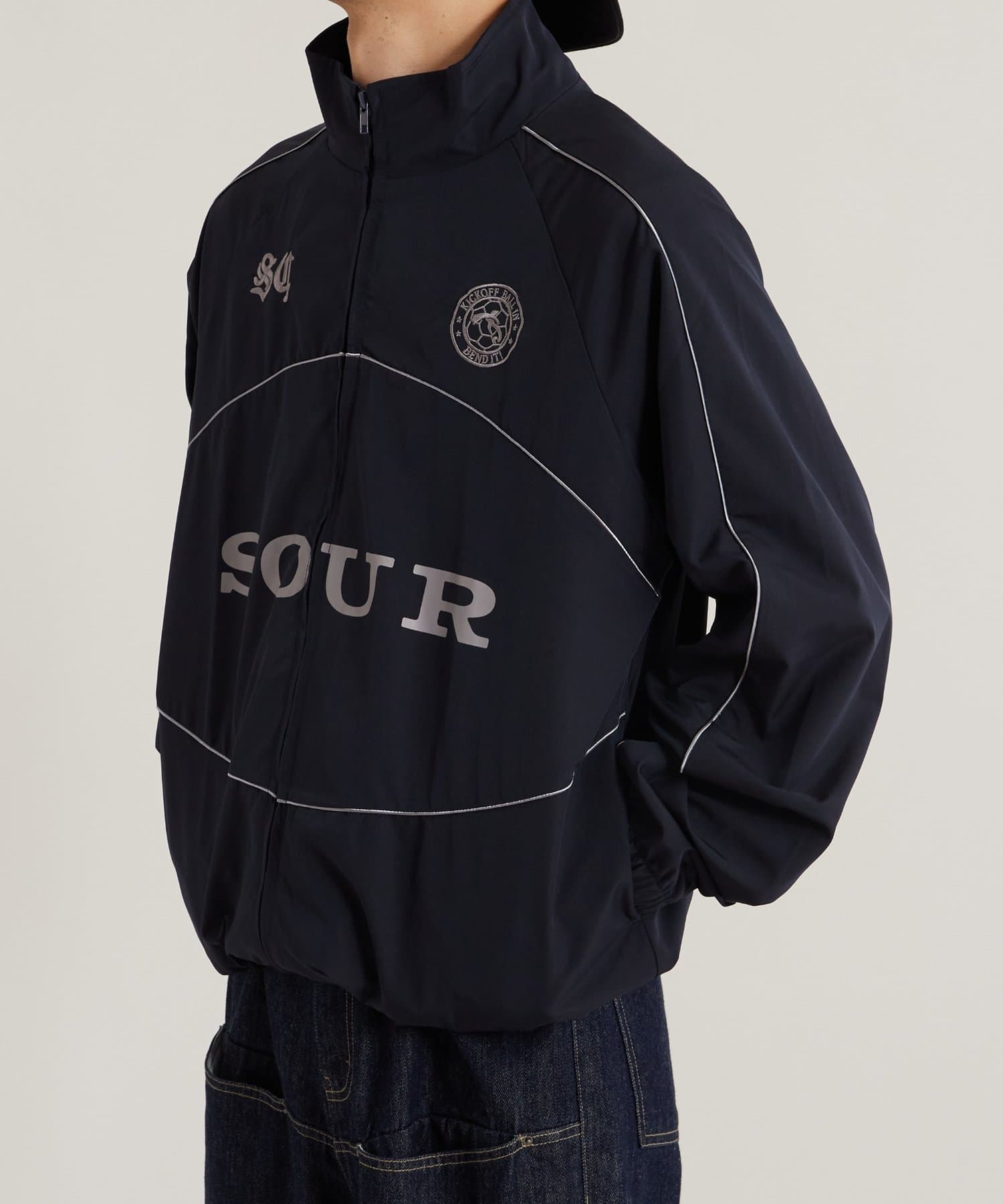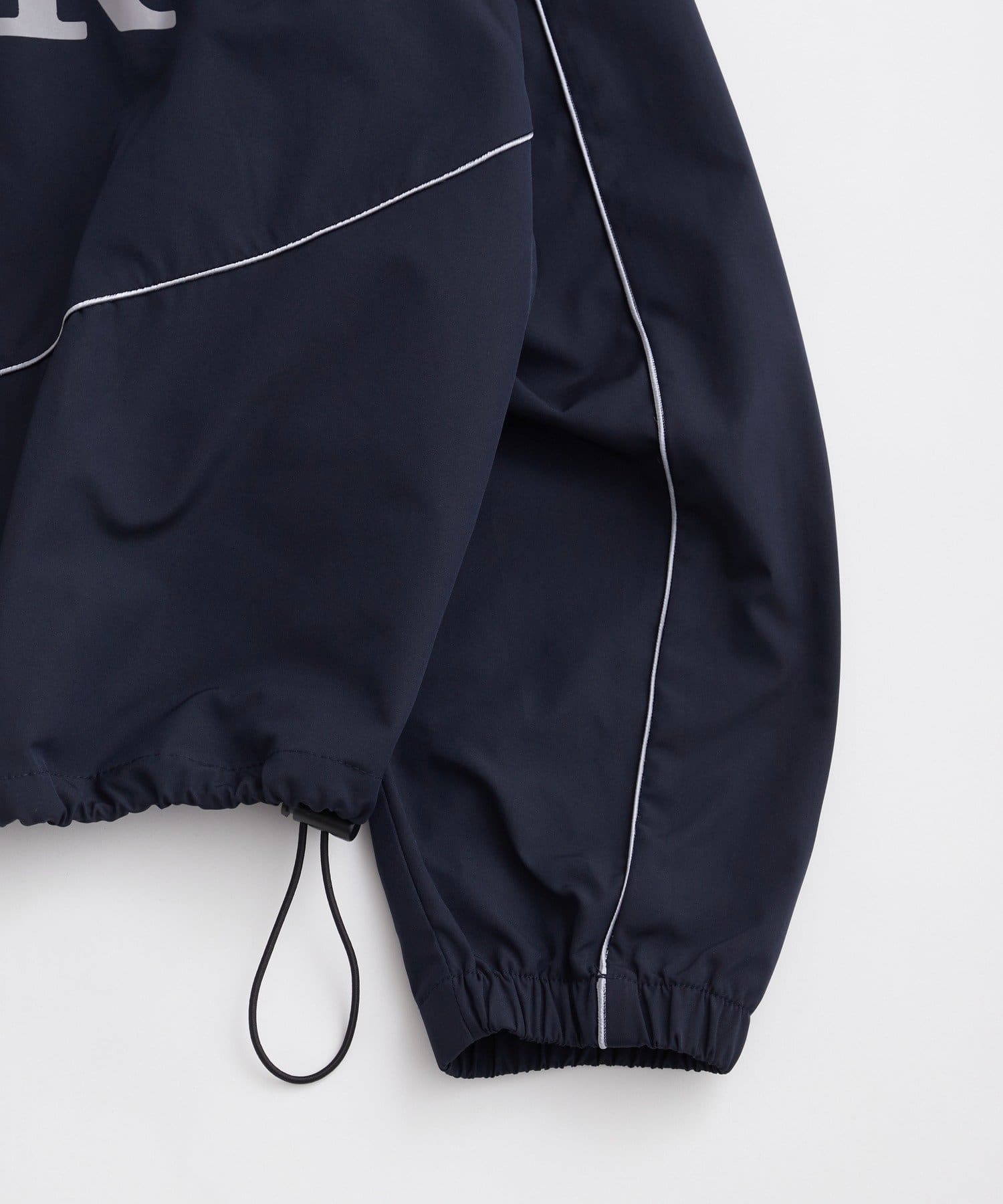 ・胸元の刺繍ロゴが目を引くデザインのナイロンジップブルゾン。