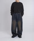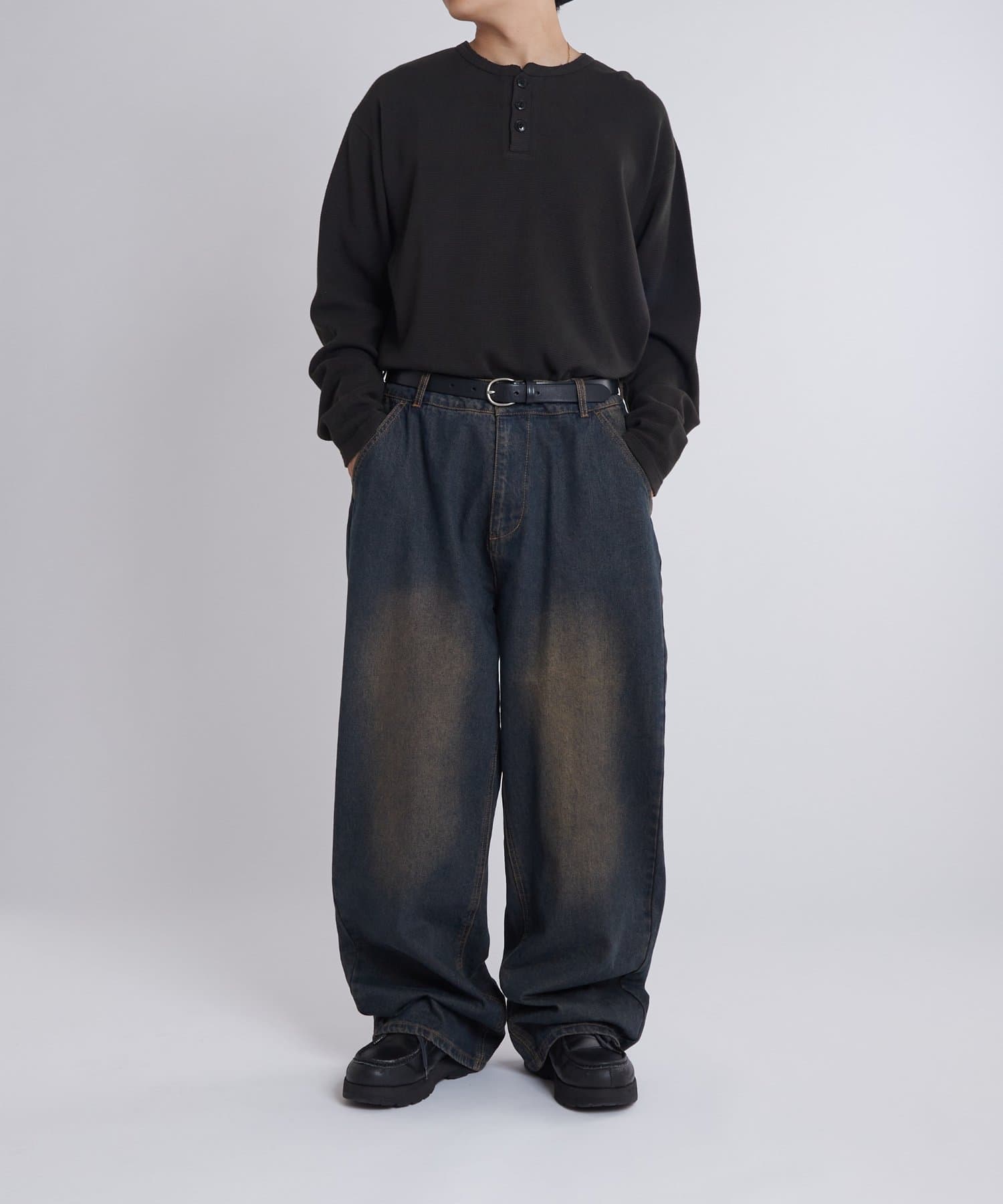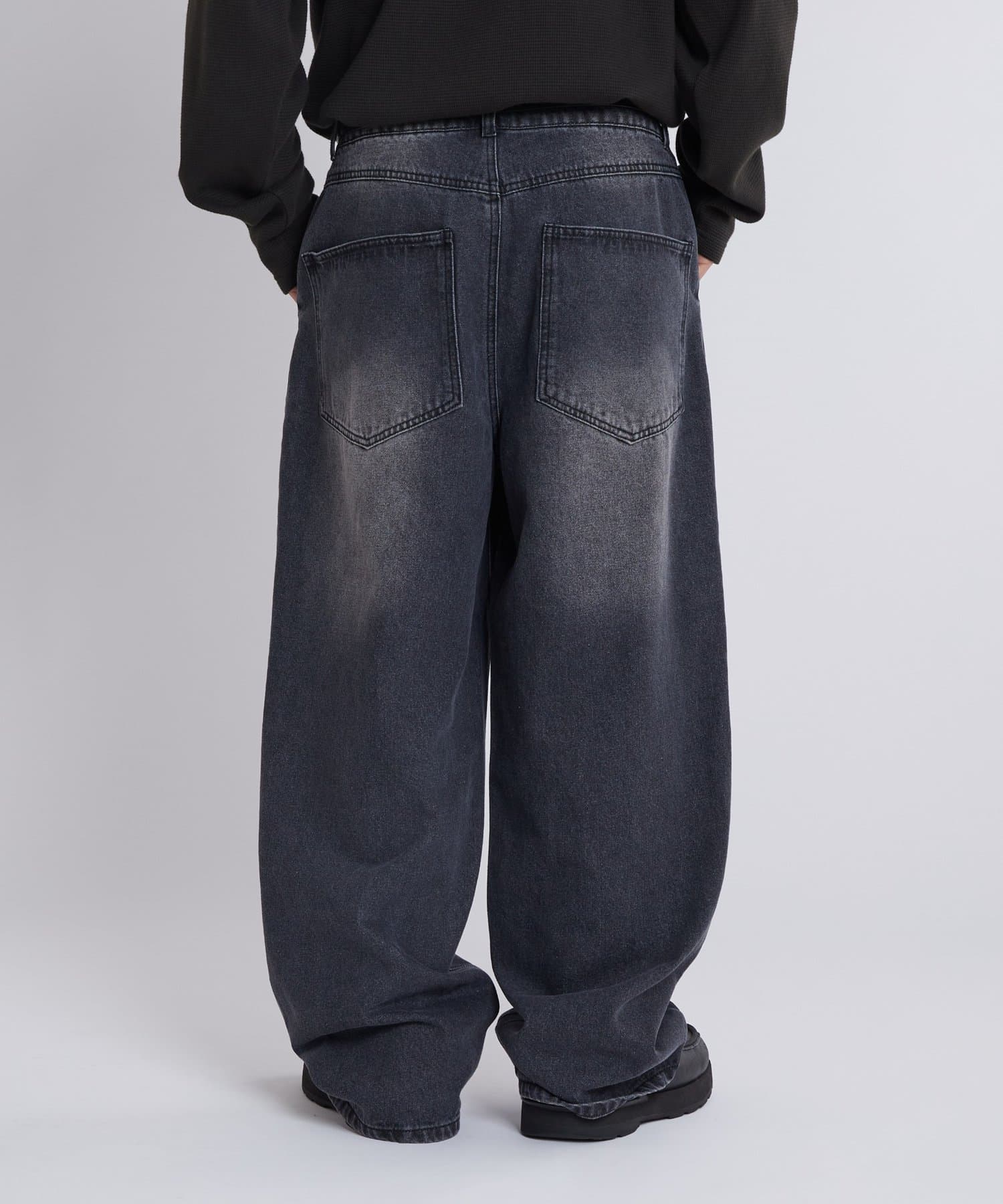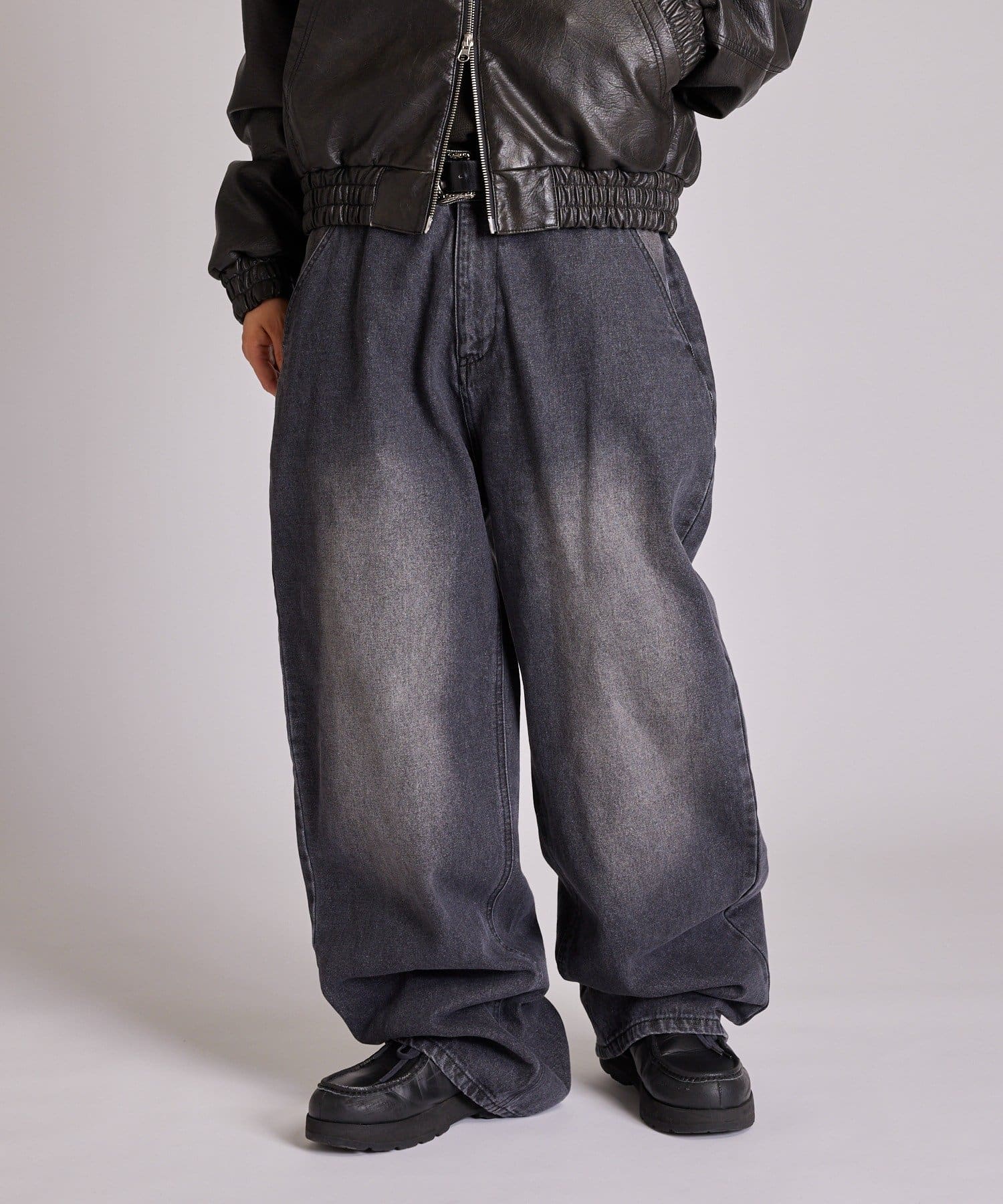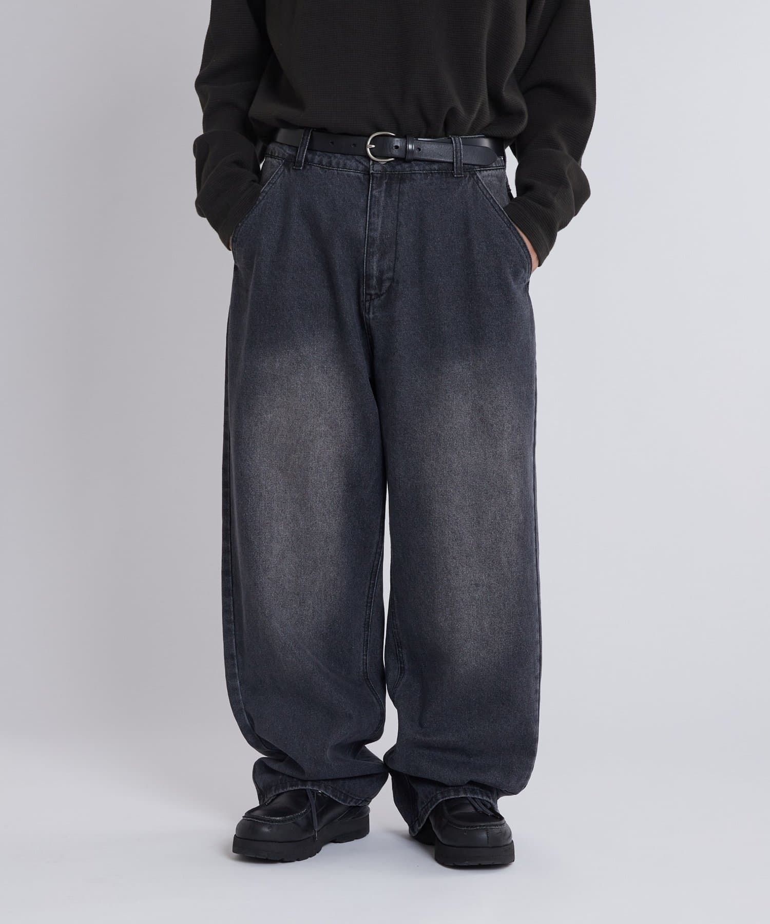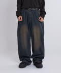 ・トレンド感のある独特なブラスト加工が特徴のワイドバギーデニム。