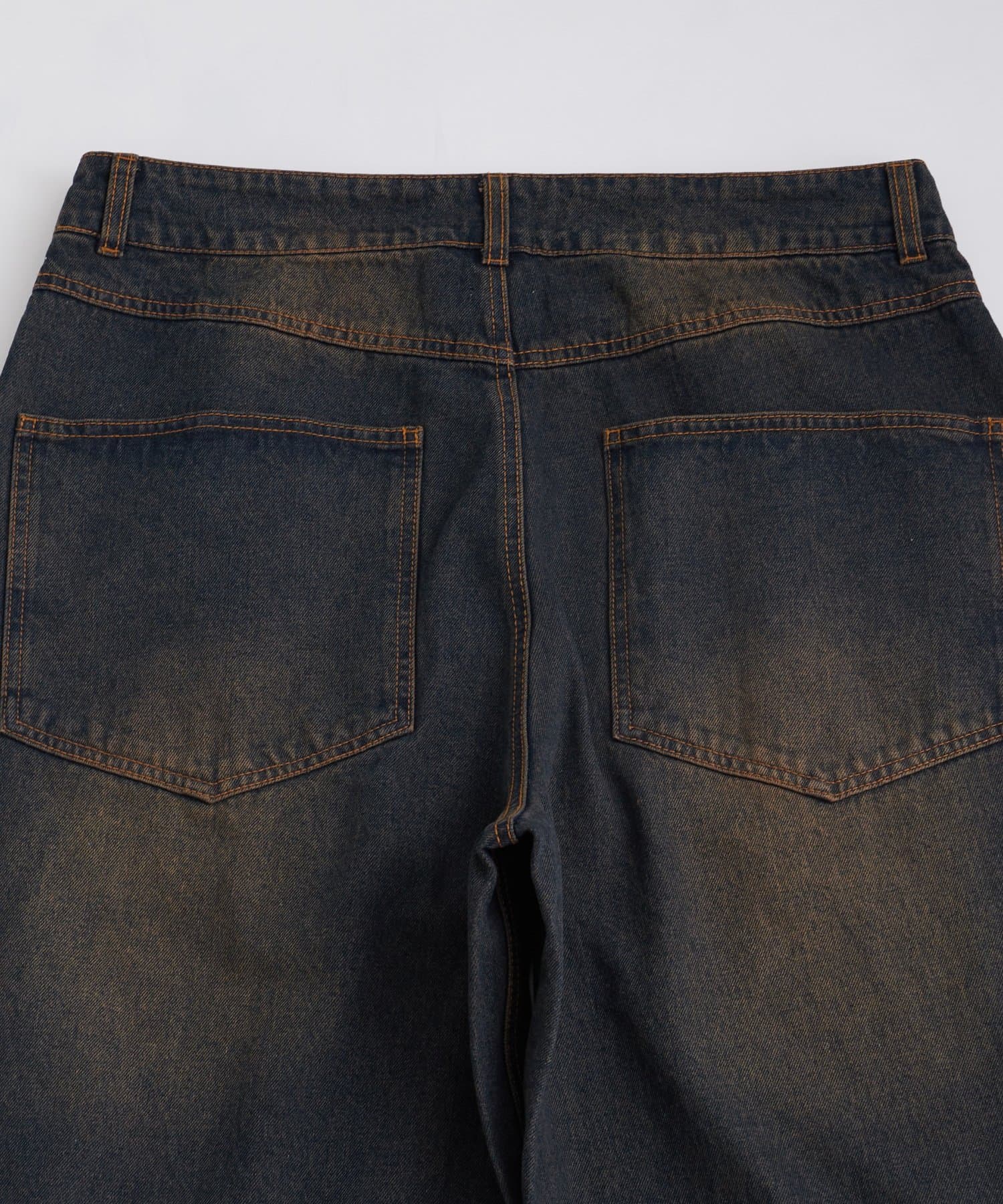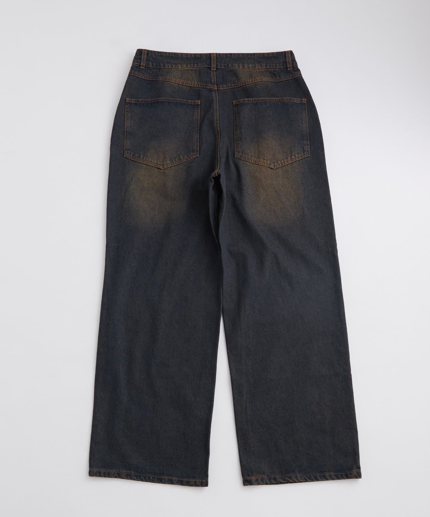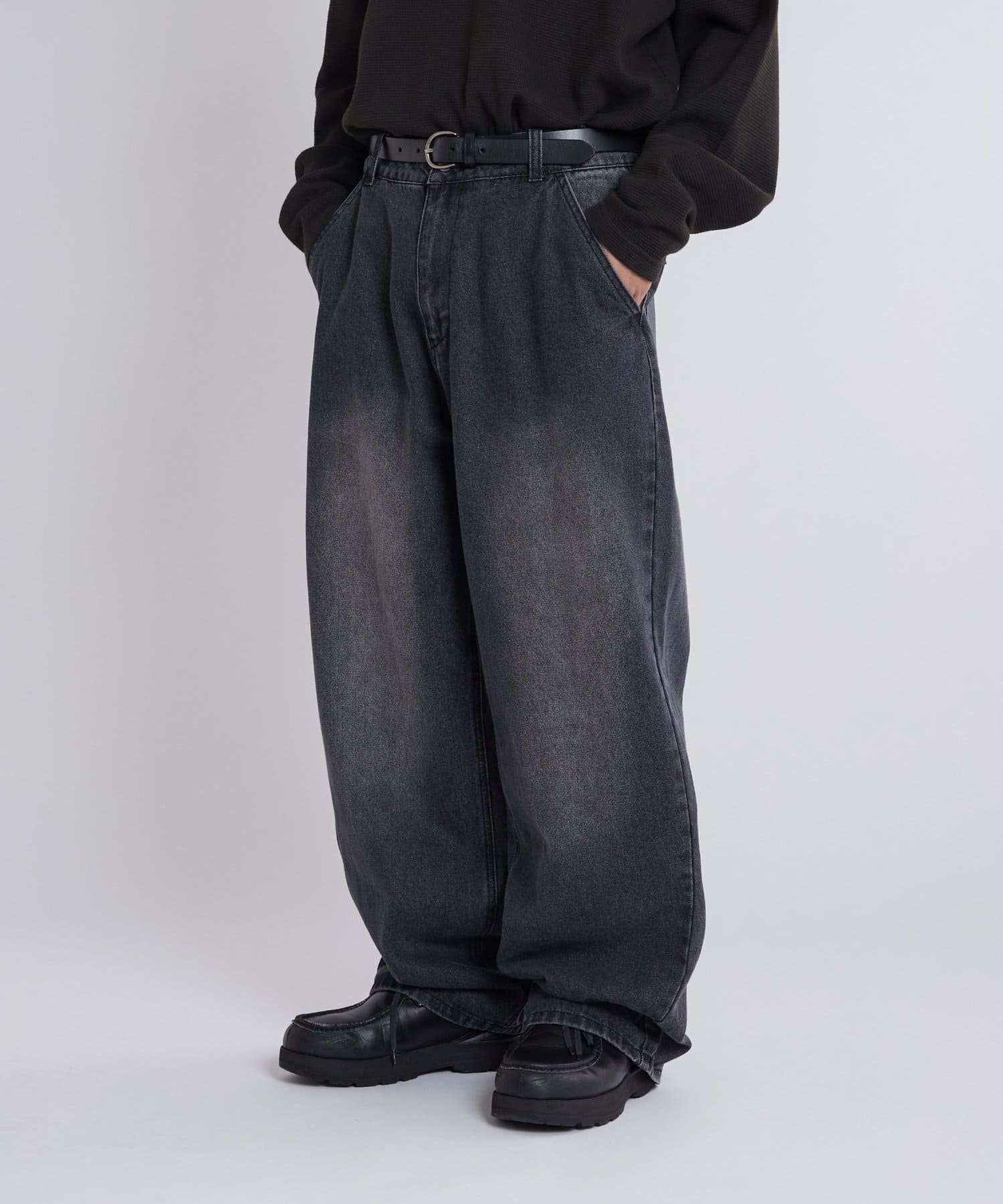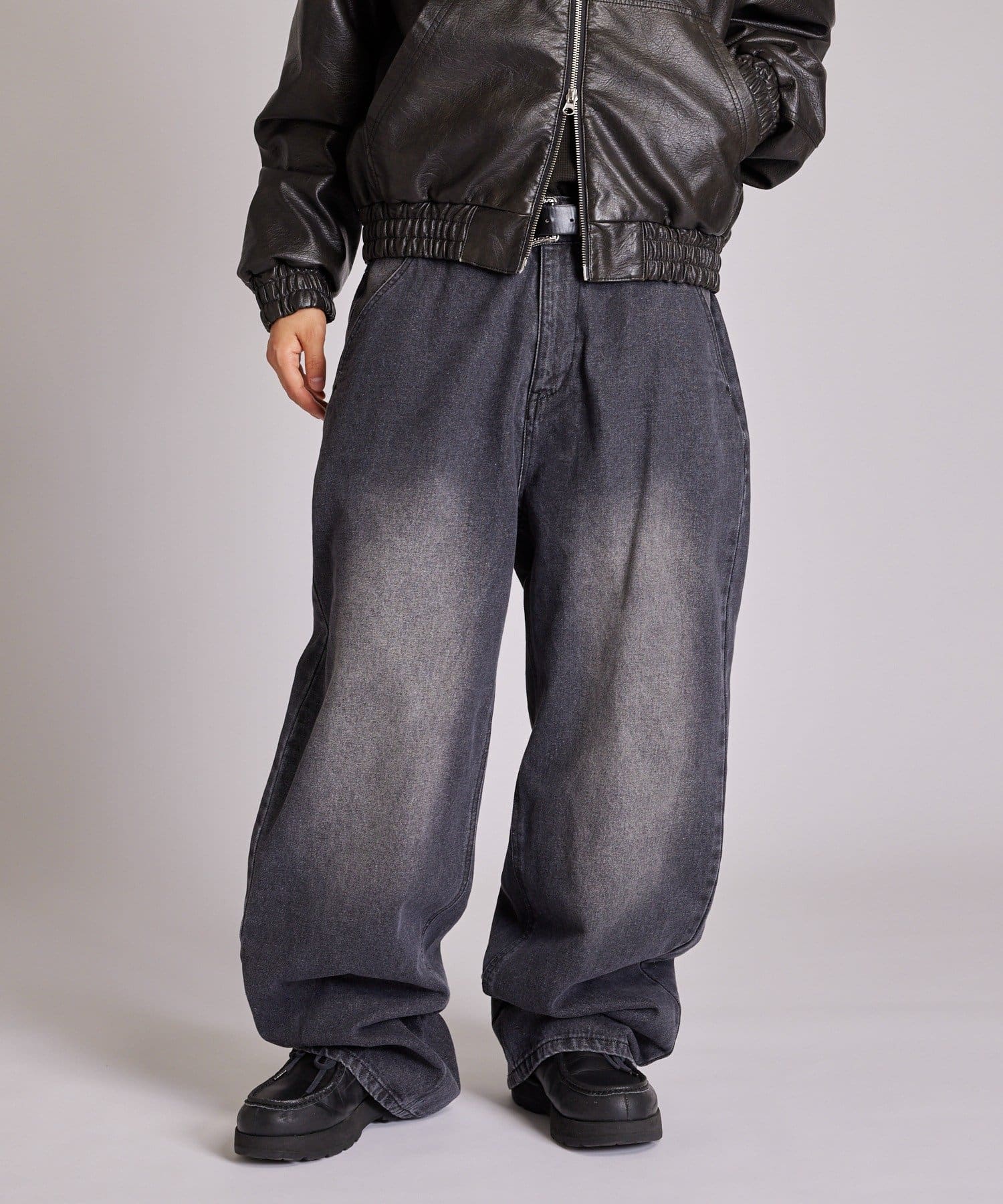 ・トレンド感のある独特なブラスト加工が特徴のワイドバギーデニム。
