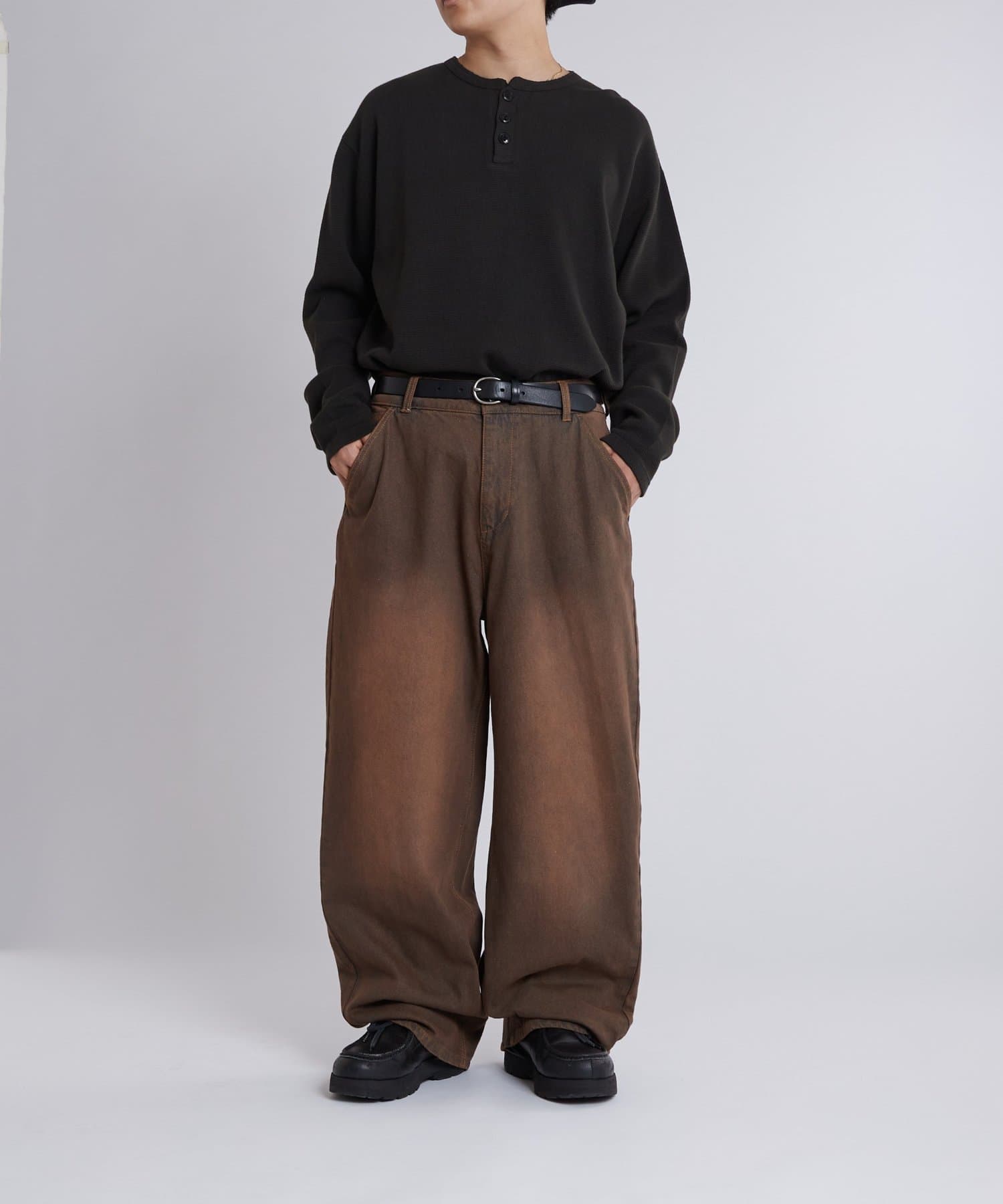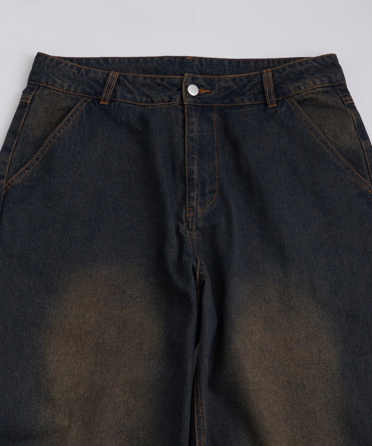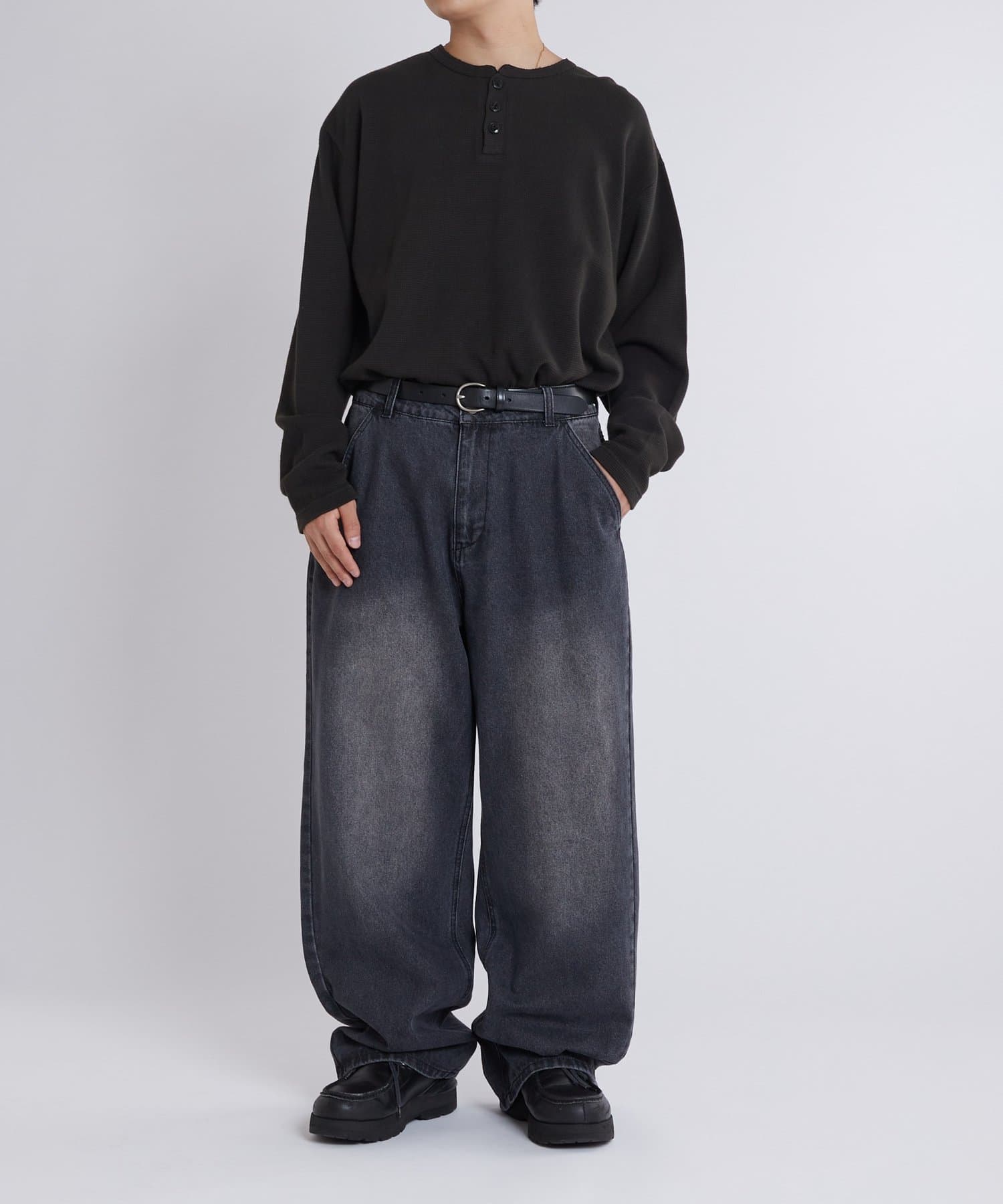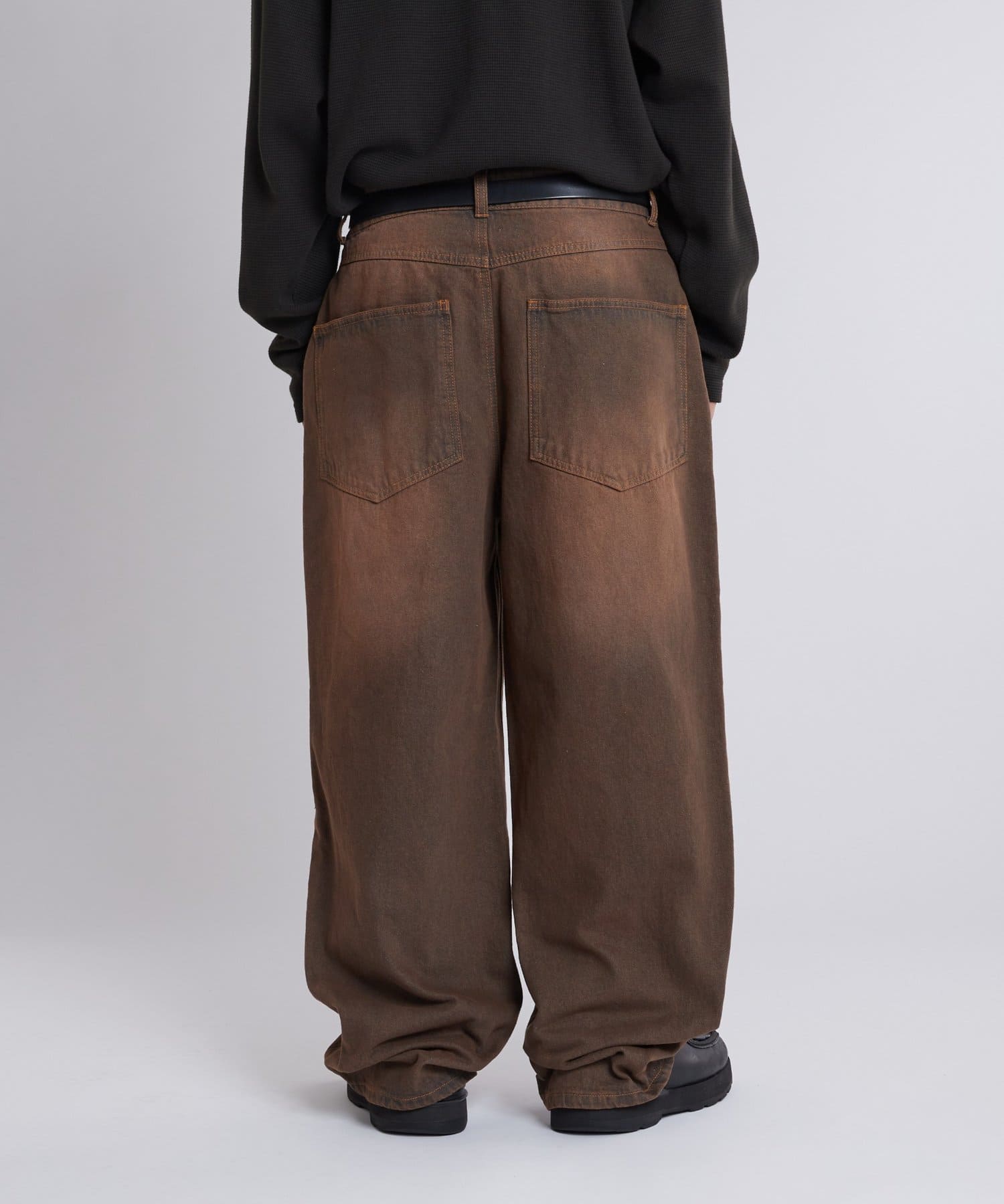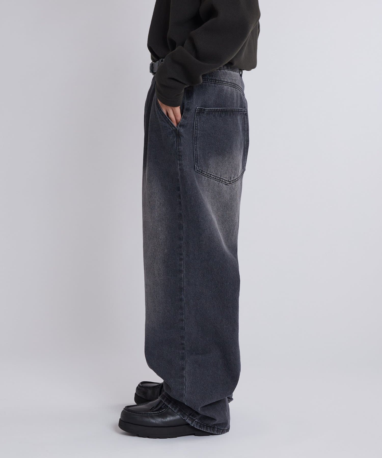 ・トレンド感のある独特なブラスト加工が特徴のワイドバギーデニム。