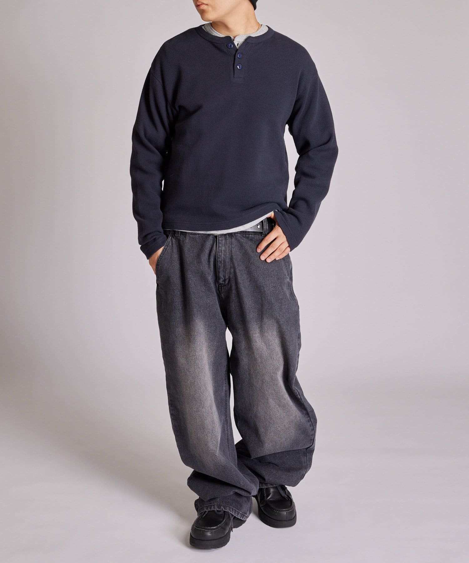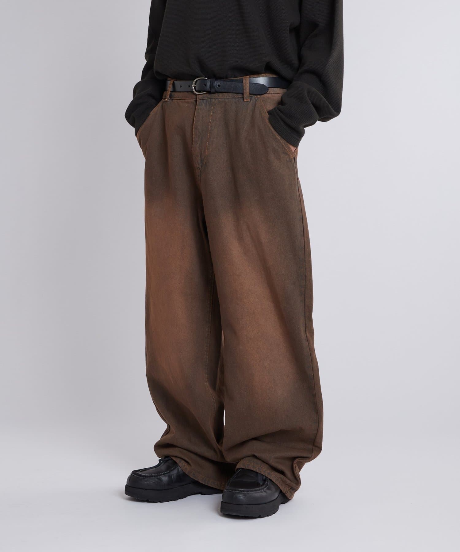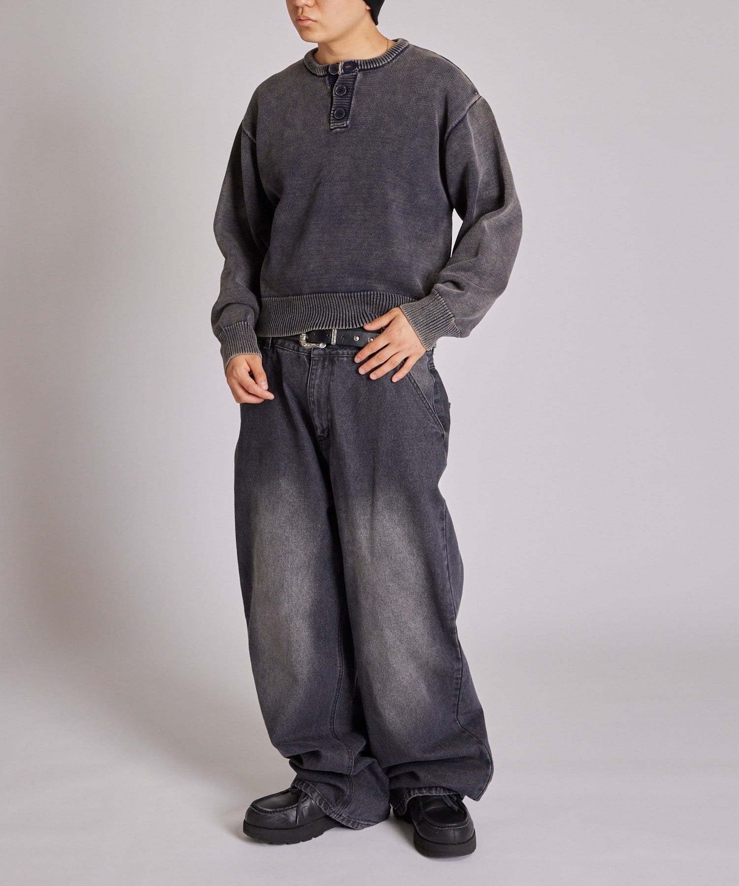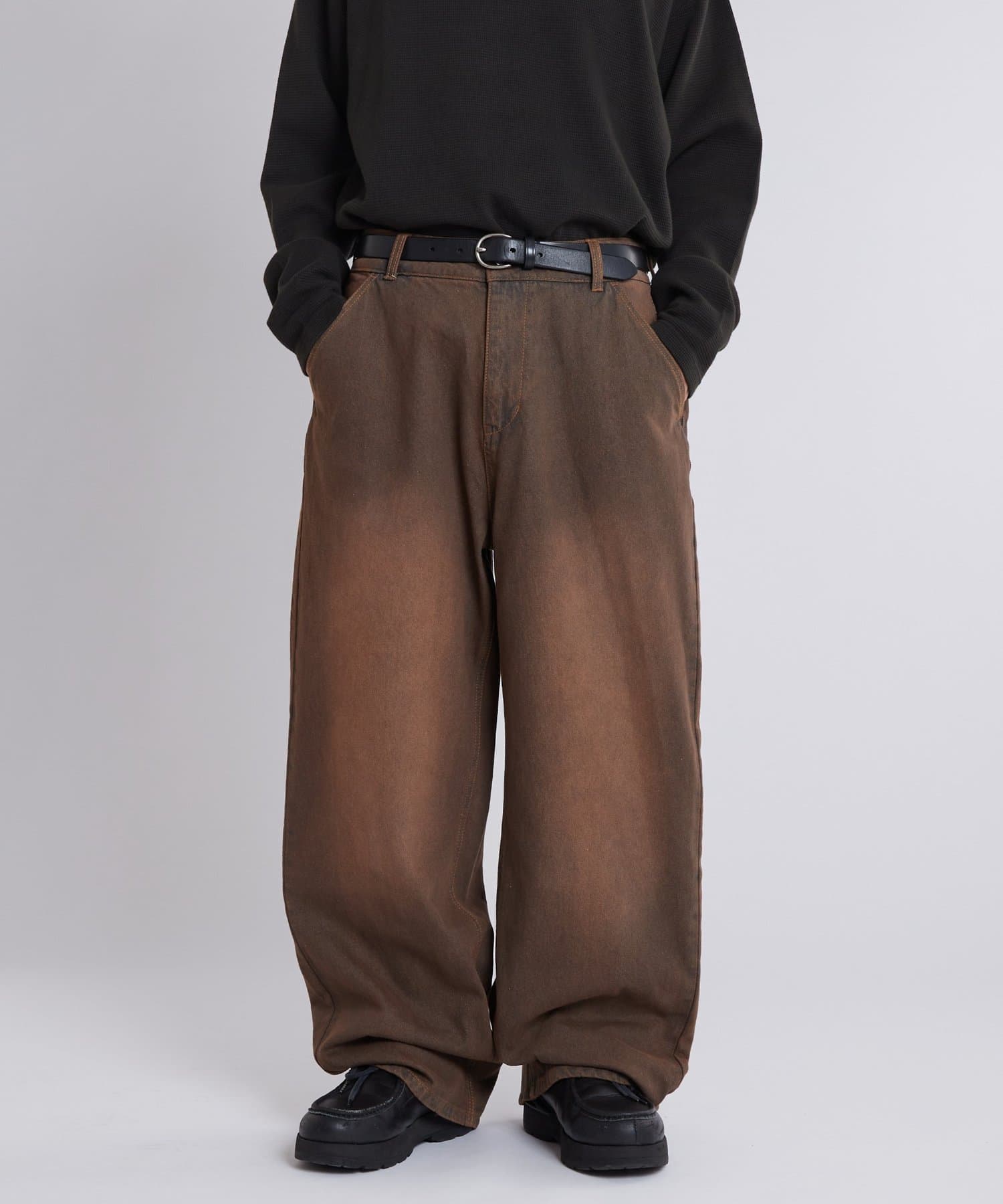 ・トレンド感のある独特なブラスト加工が特徴のワイドバギーデニム。