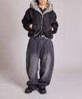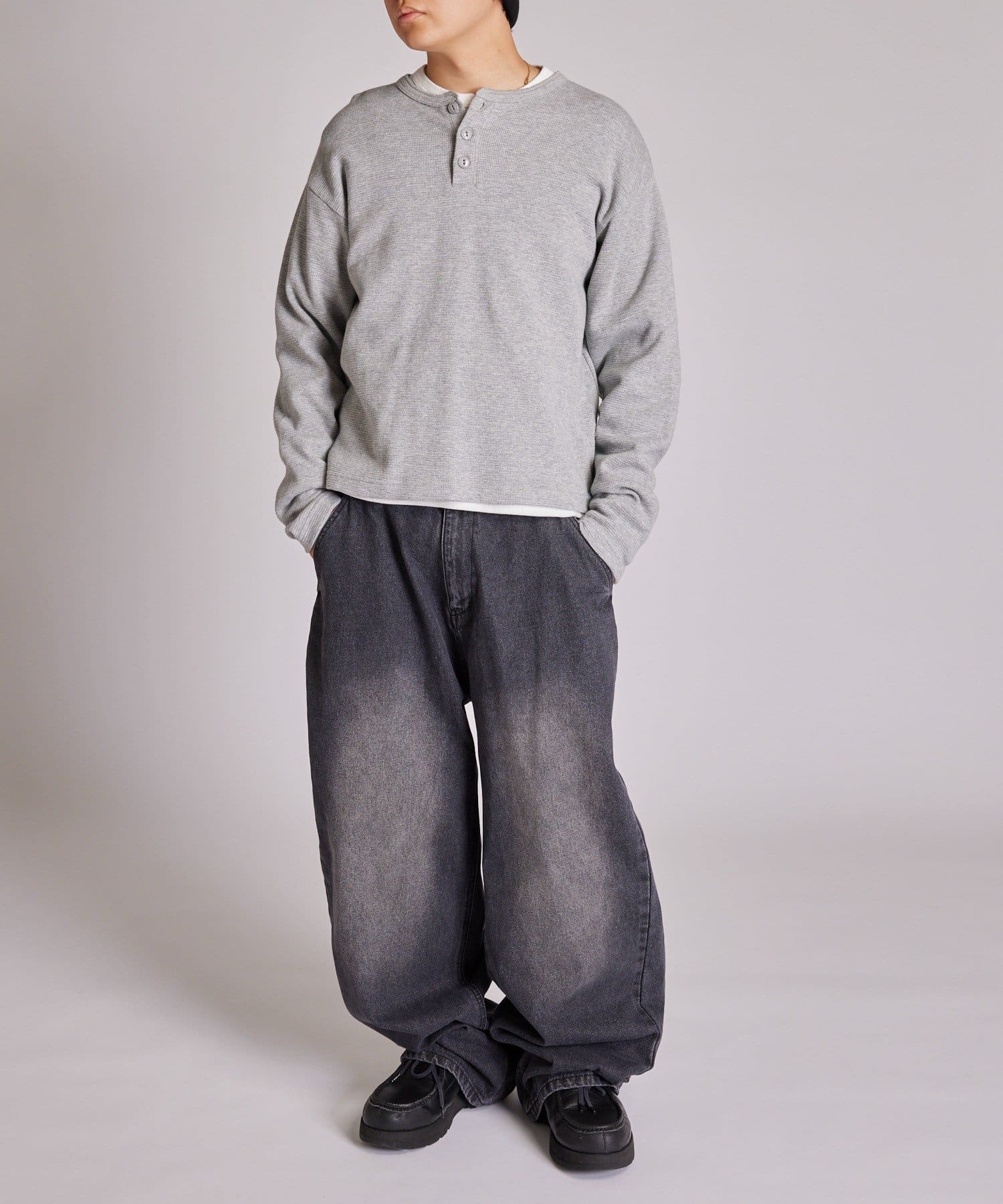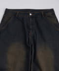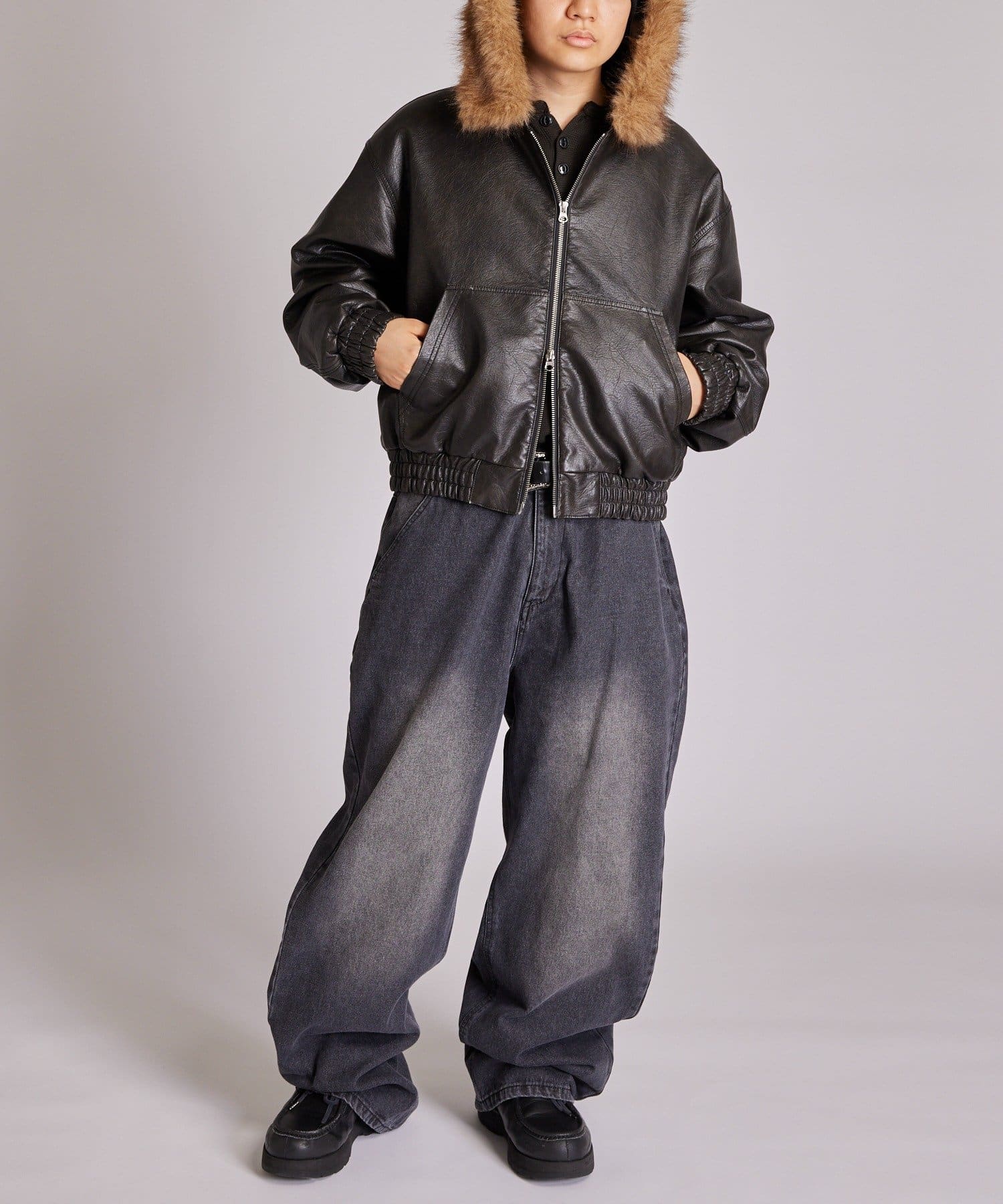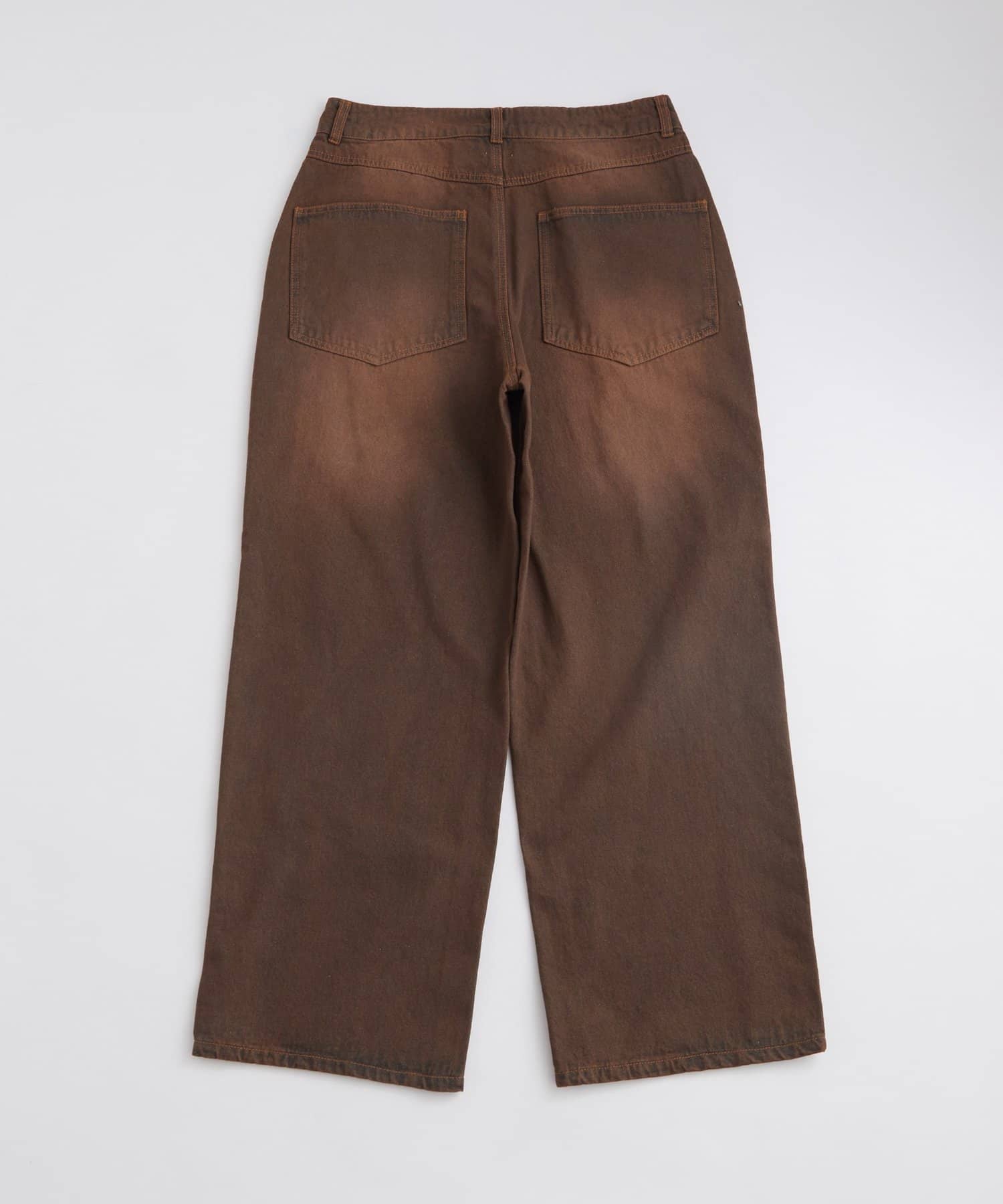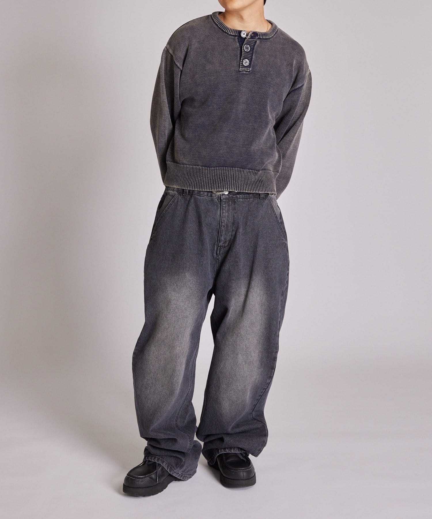 ・トレンド感のある独特なブラスト加工が特徴のワイドバギーデニム。