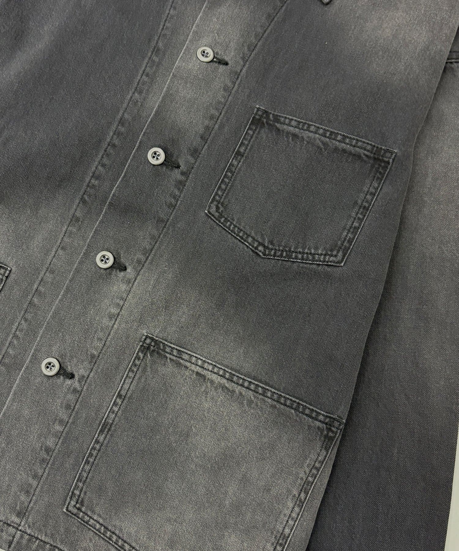 ・フロントのボタンがアクセントのカバーオールジャケット。