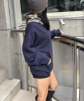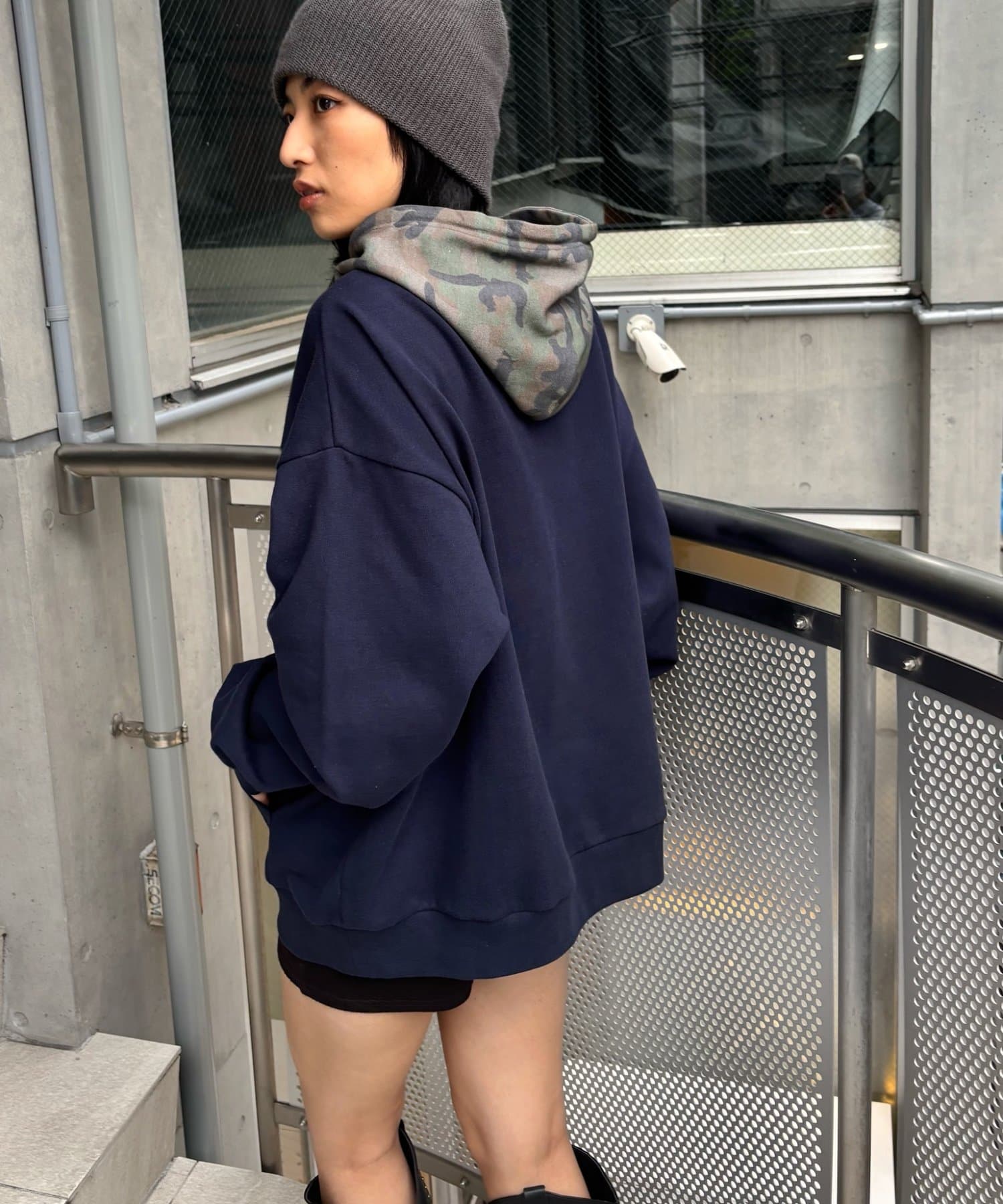 ・ユニセックスで着用可能!ミニのボトムス合わせで甘辛ミックスコーデ。