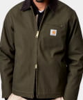 デトロイトジャケットは、カーハートWIPの定番アイテムであり、耐久性に優れたヘビーウェイトの12オンスのディアボーンキャンバスで仕立てられています。コーデュロイの襟と、フロントおよび胸ポケットに配されたゴールドトーンのジップクロージャーが特徴。胸にはカーハートWIPのスクエアラベルがあしらわれています。カーハートWIPのもつワークスタイルに忠実な定番アイテムです