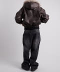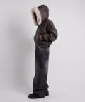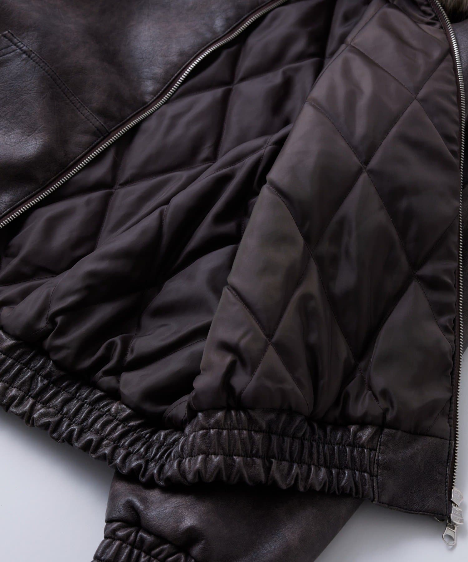 ・ヴィンテージライクな風合いが魅力のレザーファーフードブルゾン。