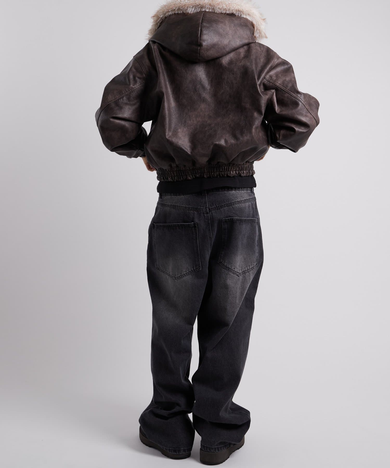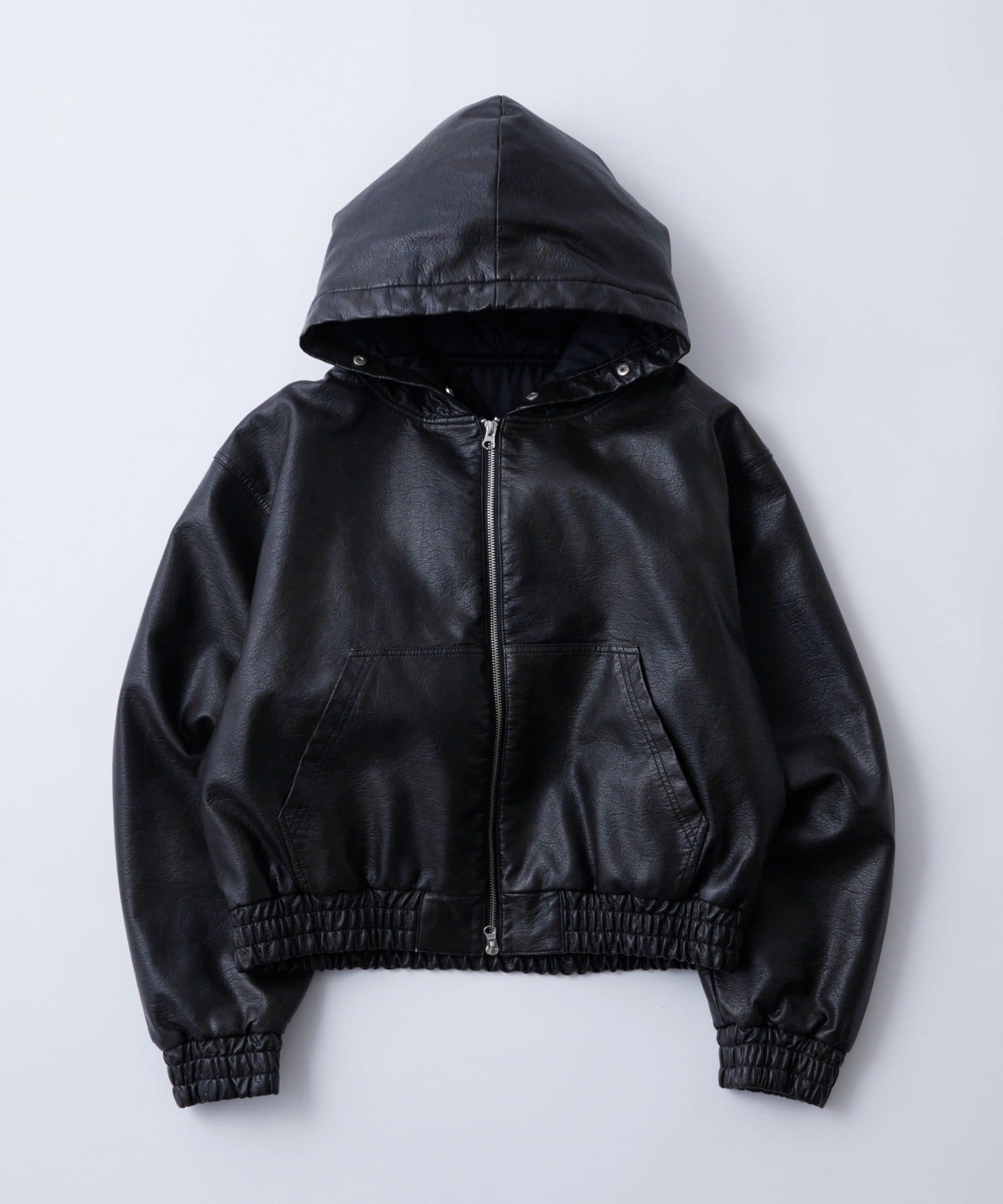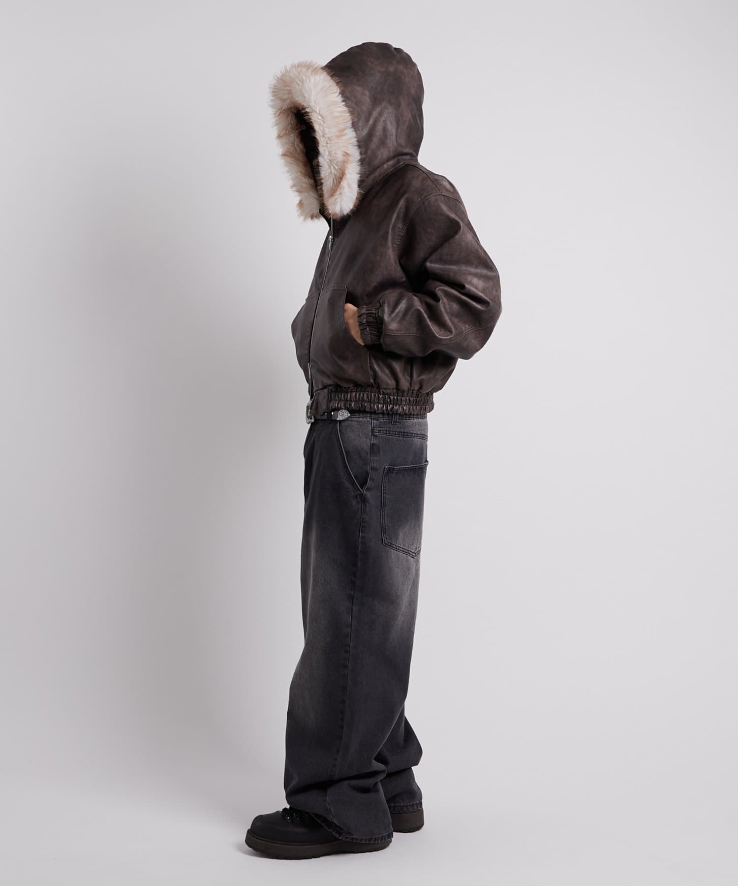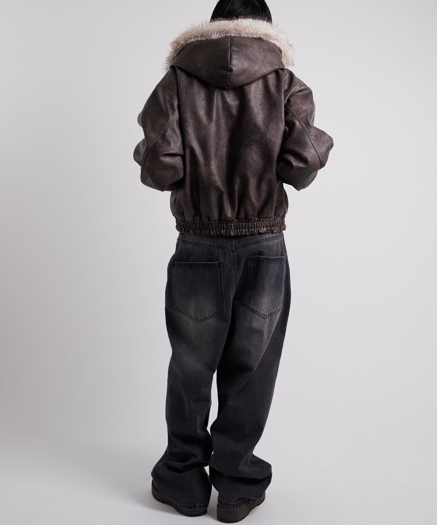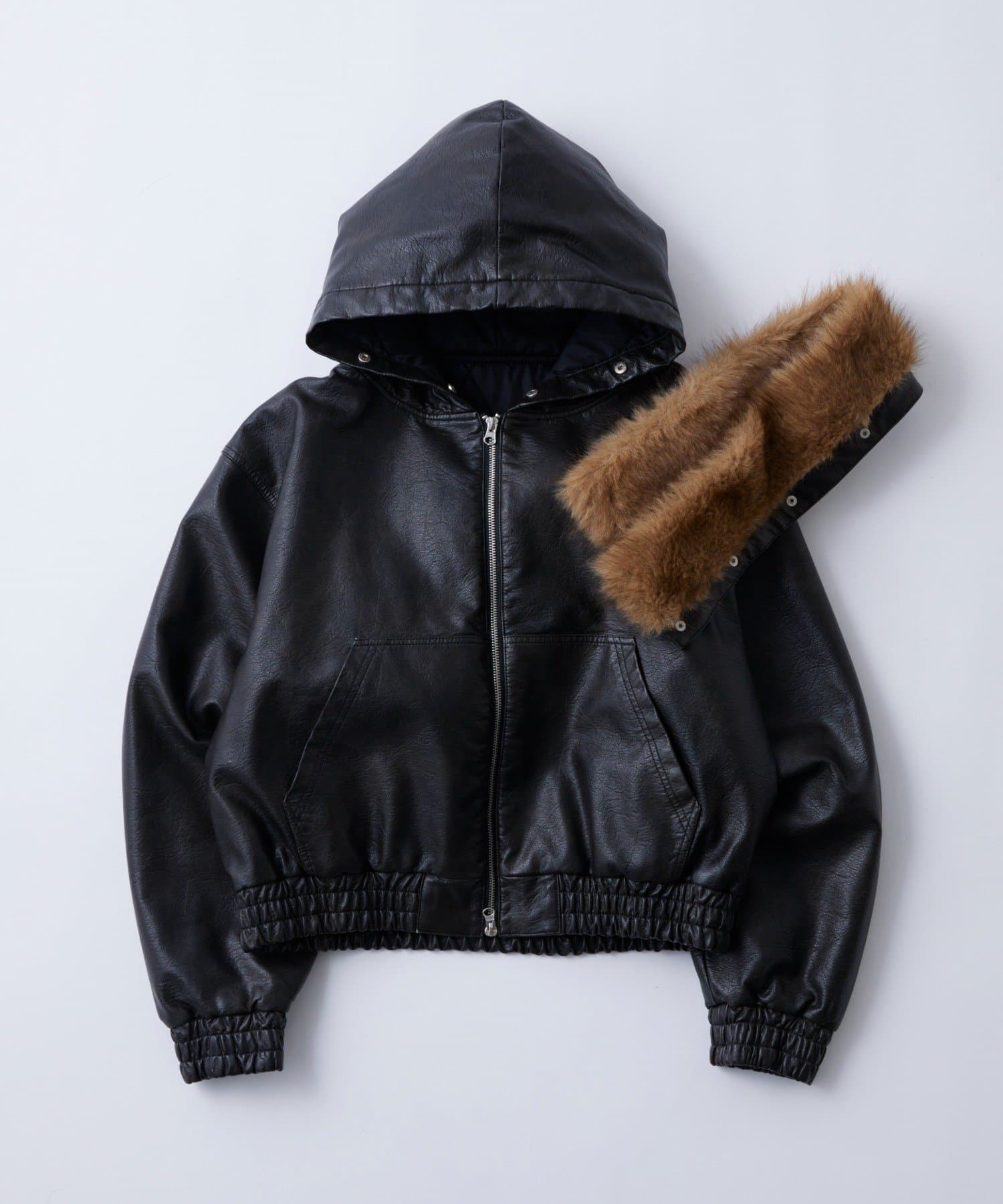 【2way/ファー取り外し可能】ヴィンテージライクレザーファーフードブルゾン