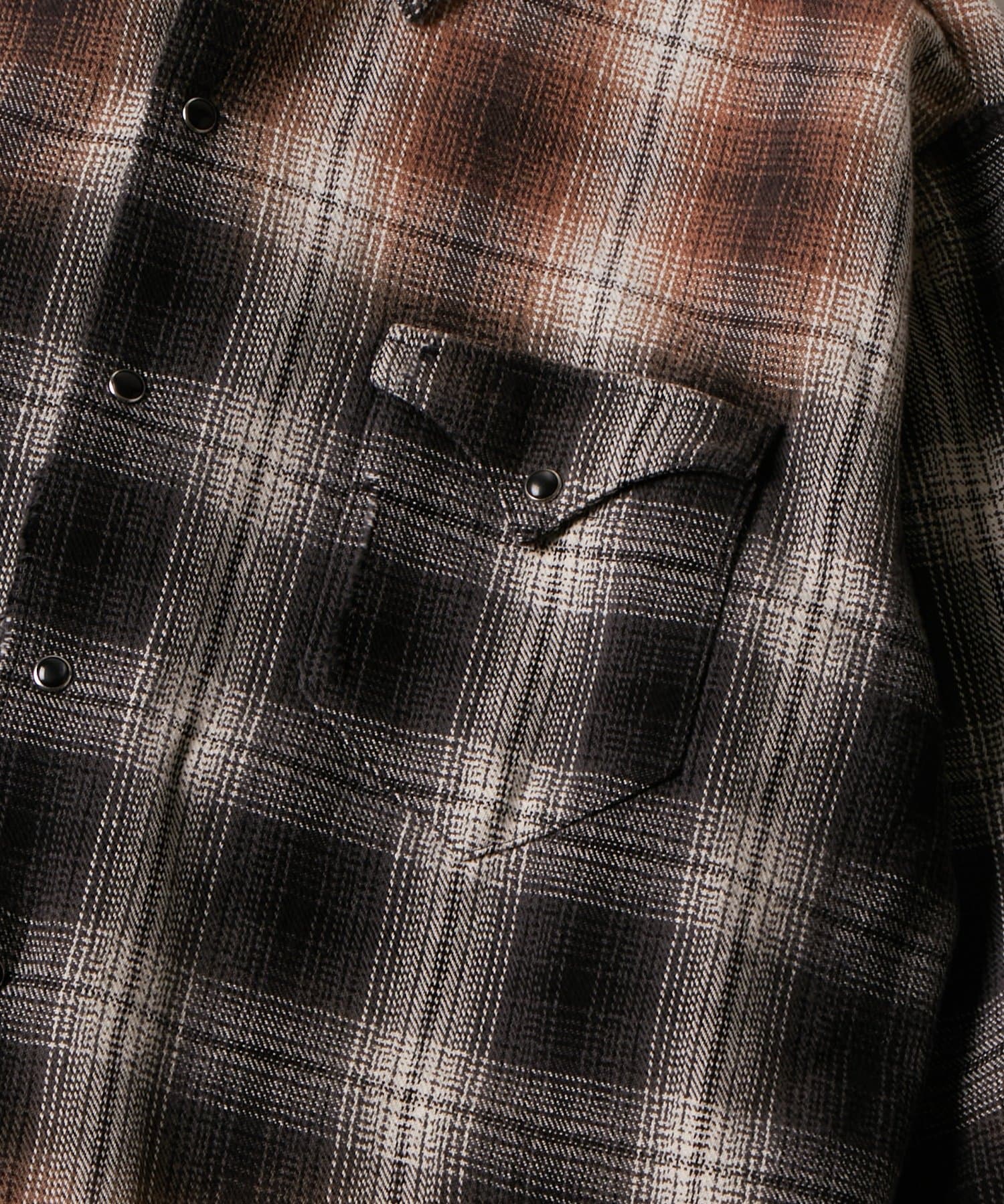 ヴィンテージ感のあるダメージ加工がポイントのチェックシャツ。
