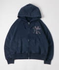・胸元の「KY」ロゴが目を引く、ケミカルウォッシュ加工を施したジップパーカー。