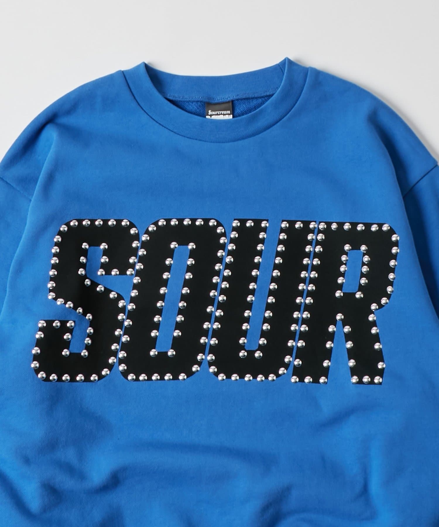 ・胸元に「SOUR」の文字がスタッズでデザインされた、クールなスウェット。