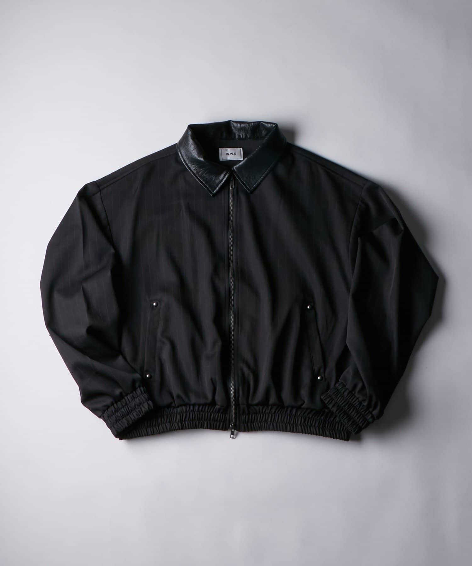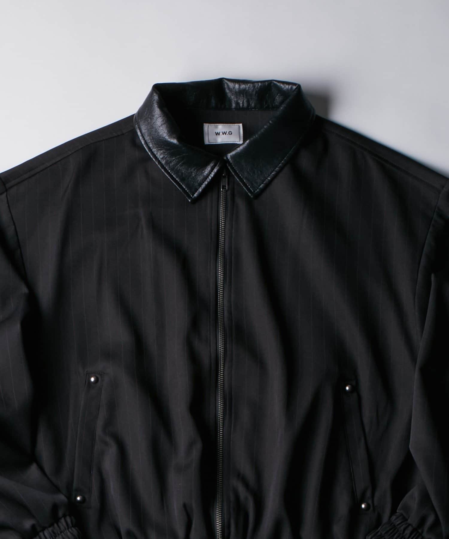 ・襟のレザー切り替えがアクセントになったジップブルゾン。