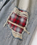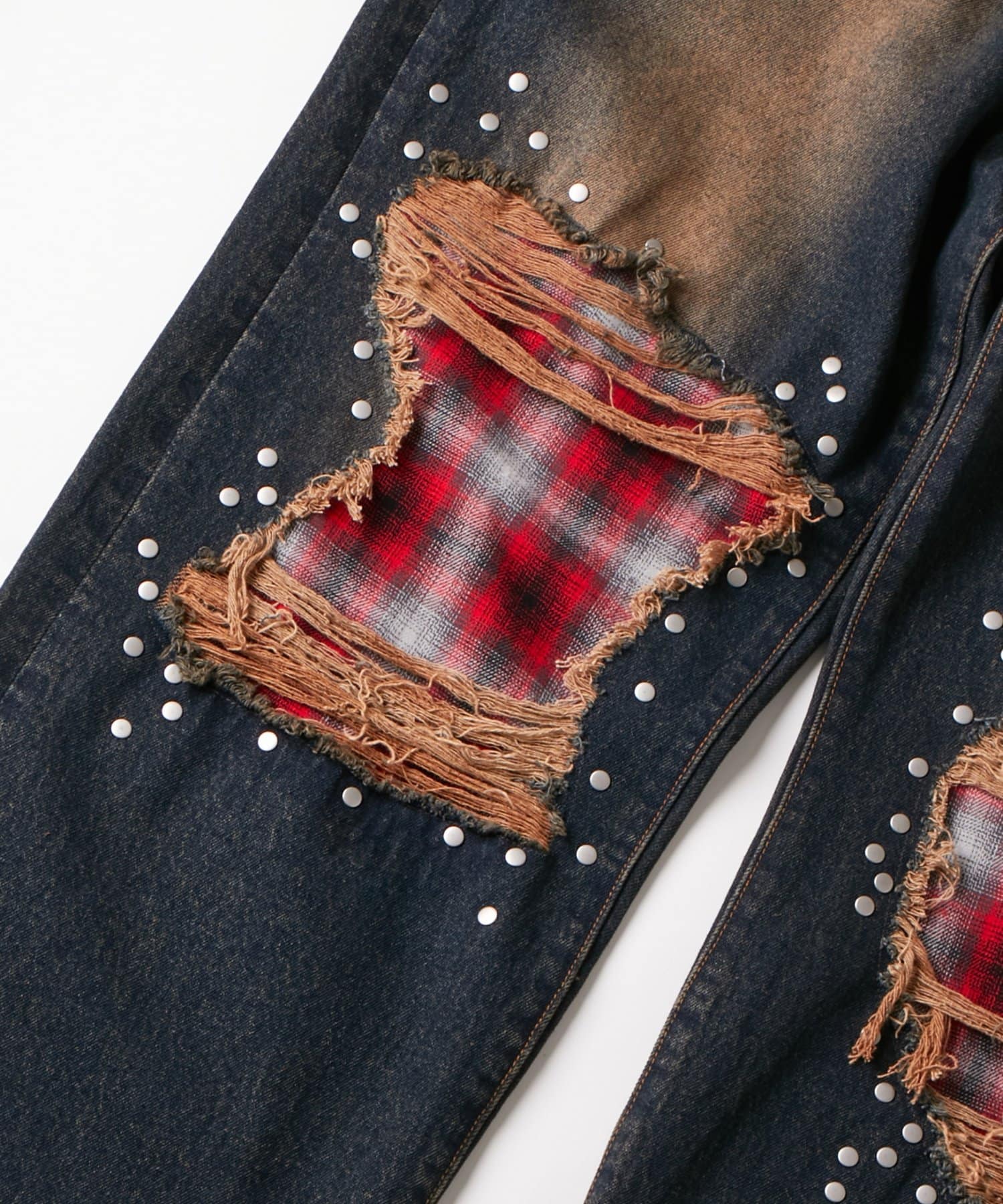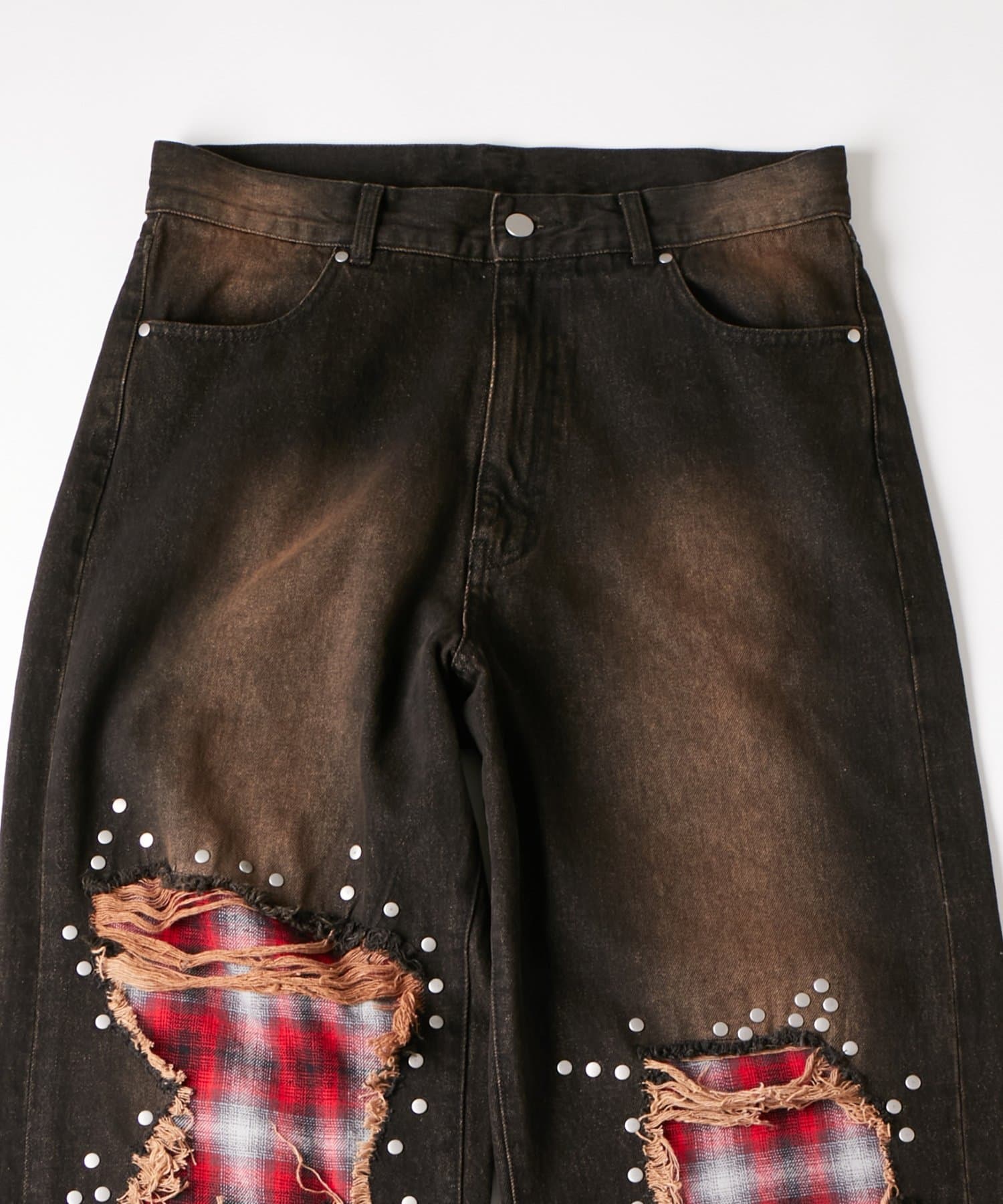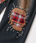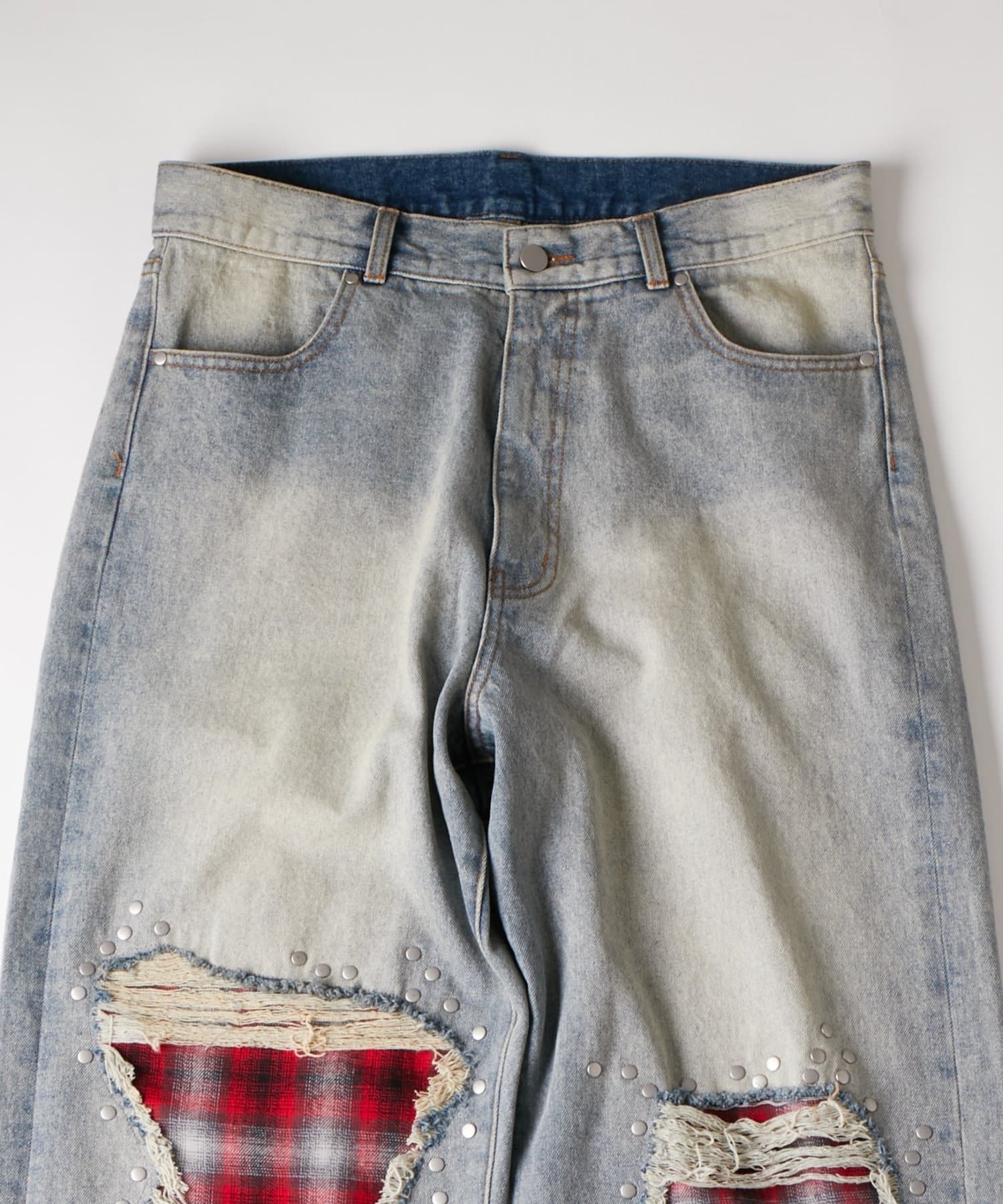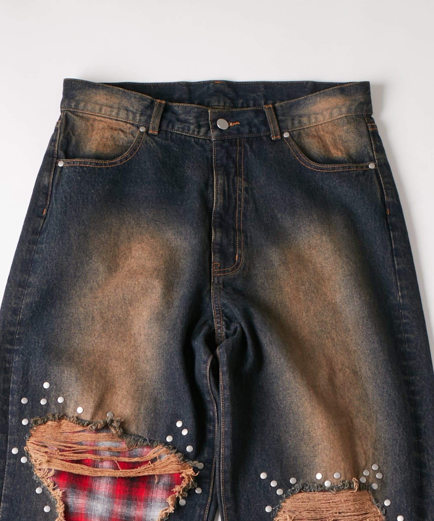 チェックダメージスタッズデニム