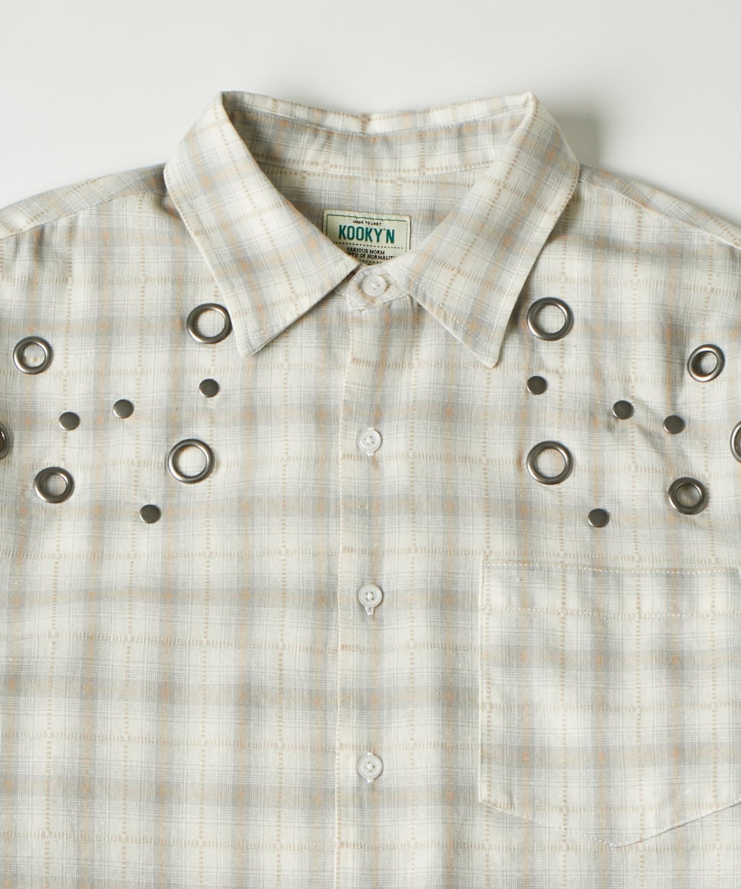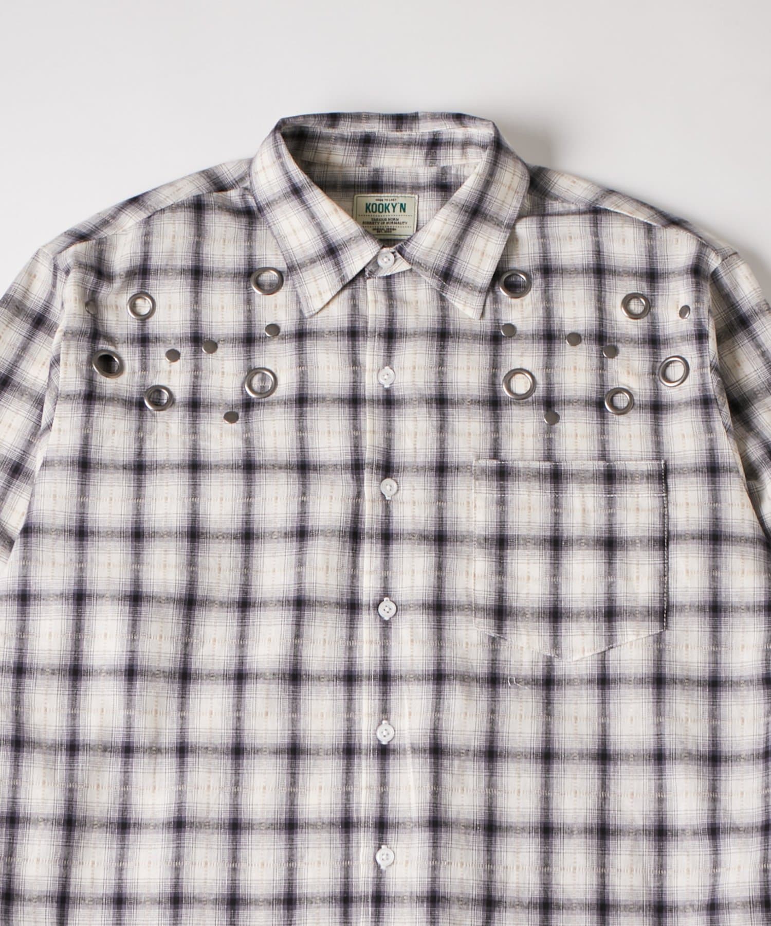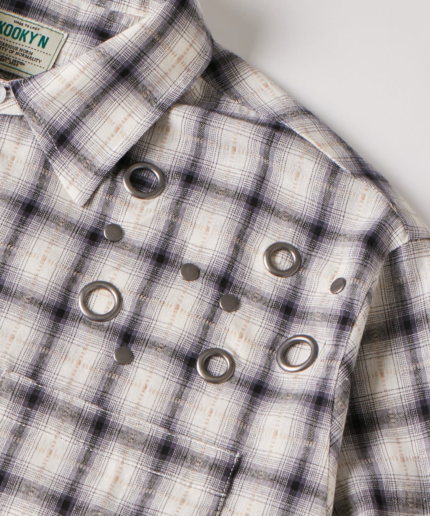・KOOKY'Nから、定番のチェックシャツをアップデートしたハトメチェックシャツが登場。