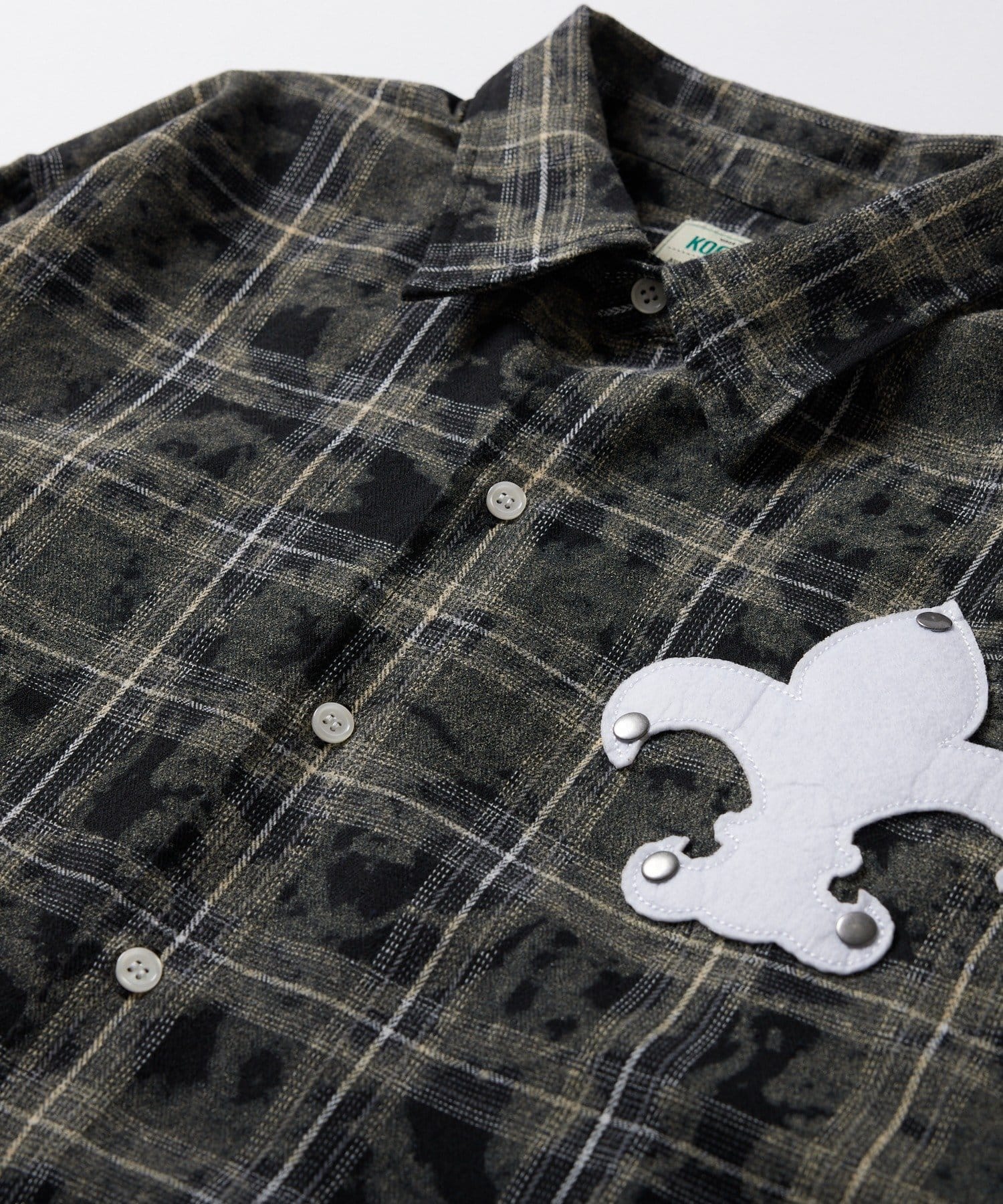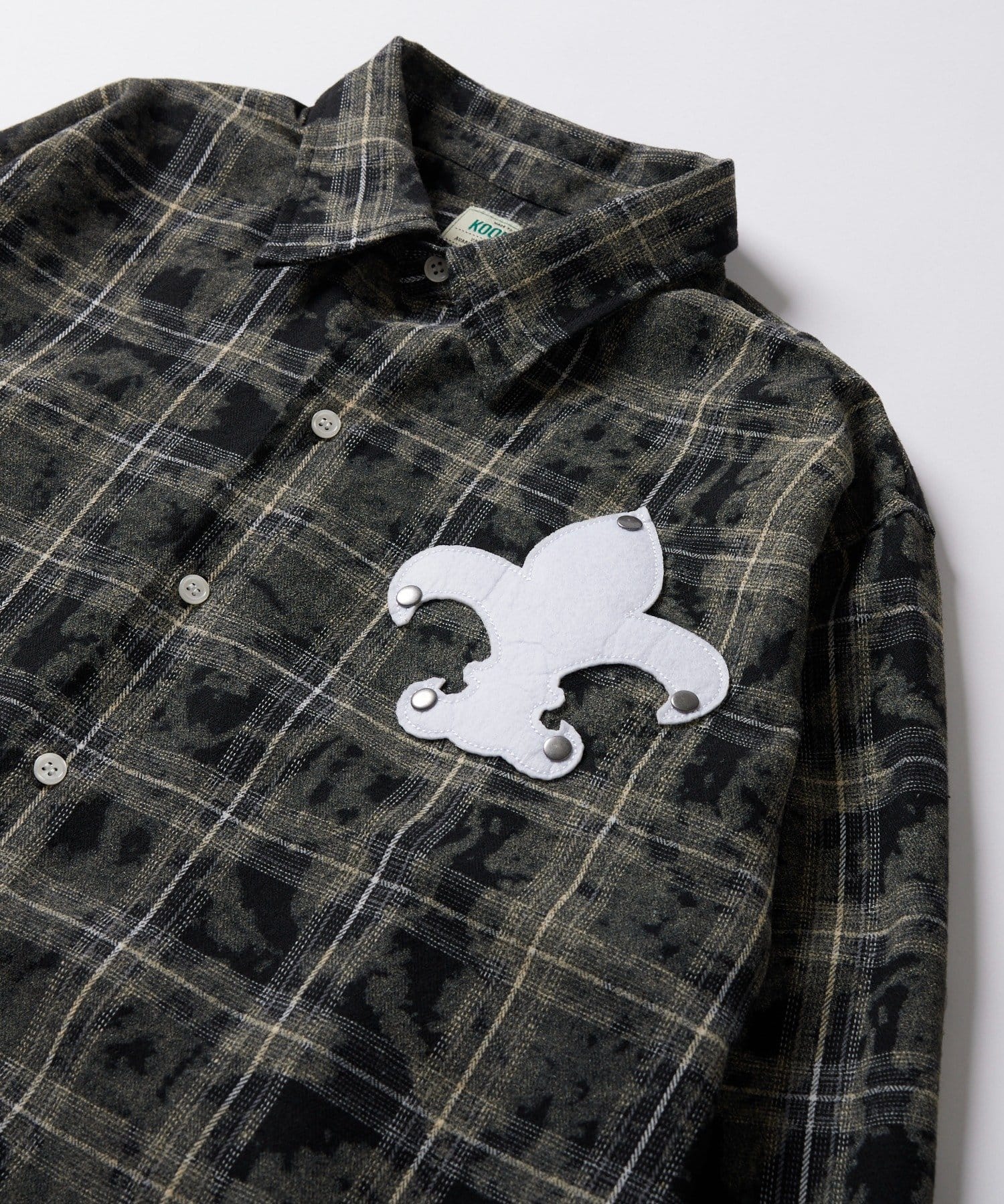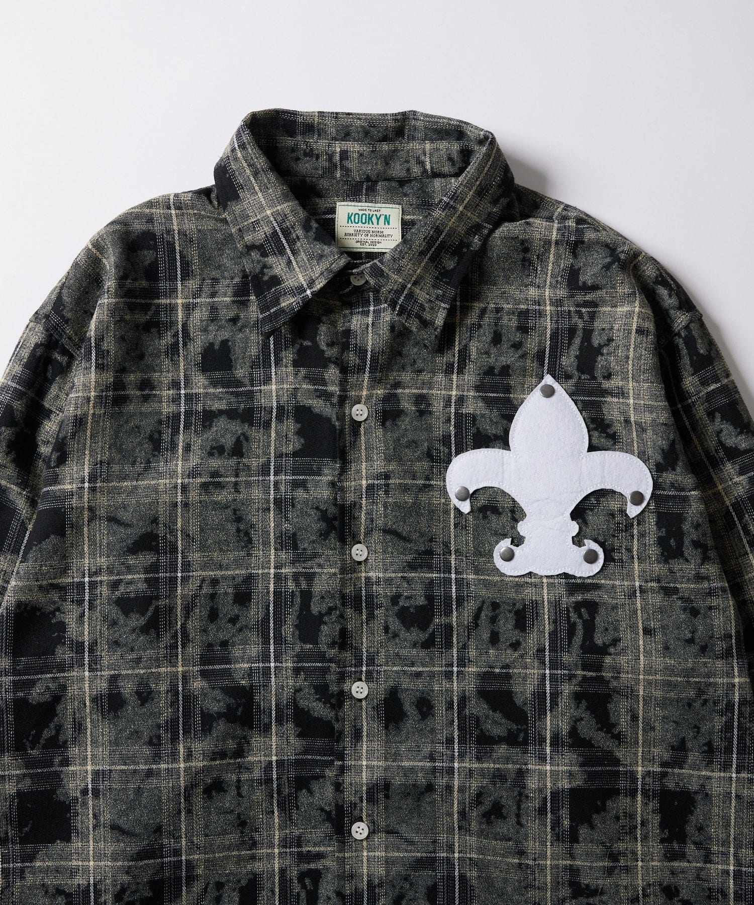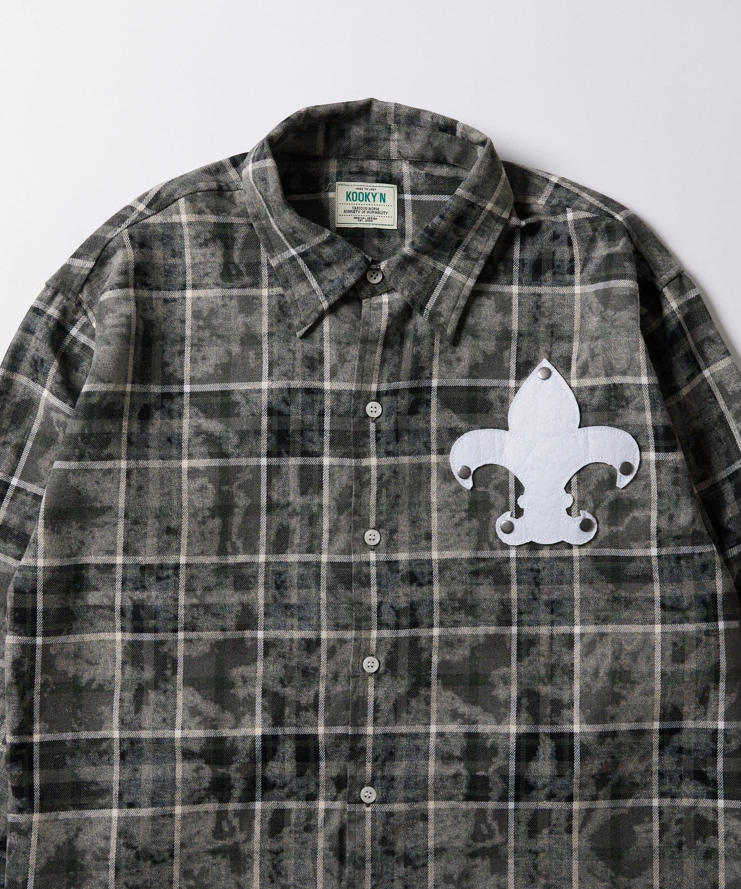 KOOKY'Nユリ紋章スタッズ加工チェックシャツ