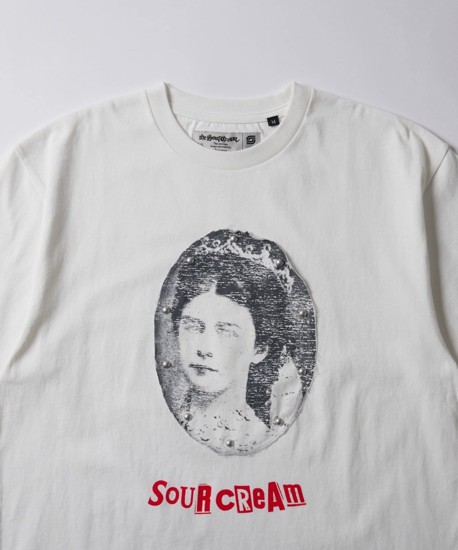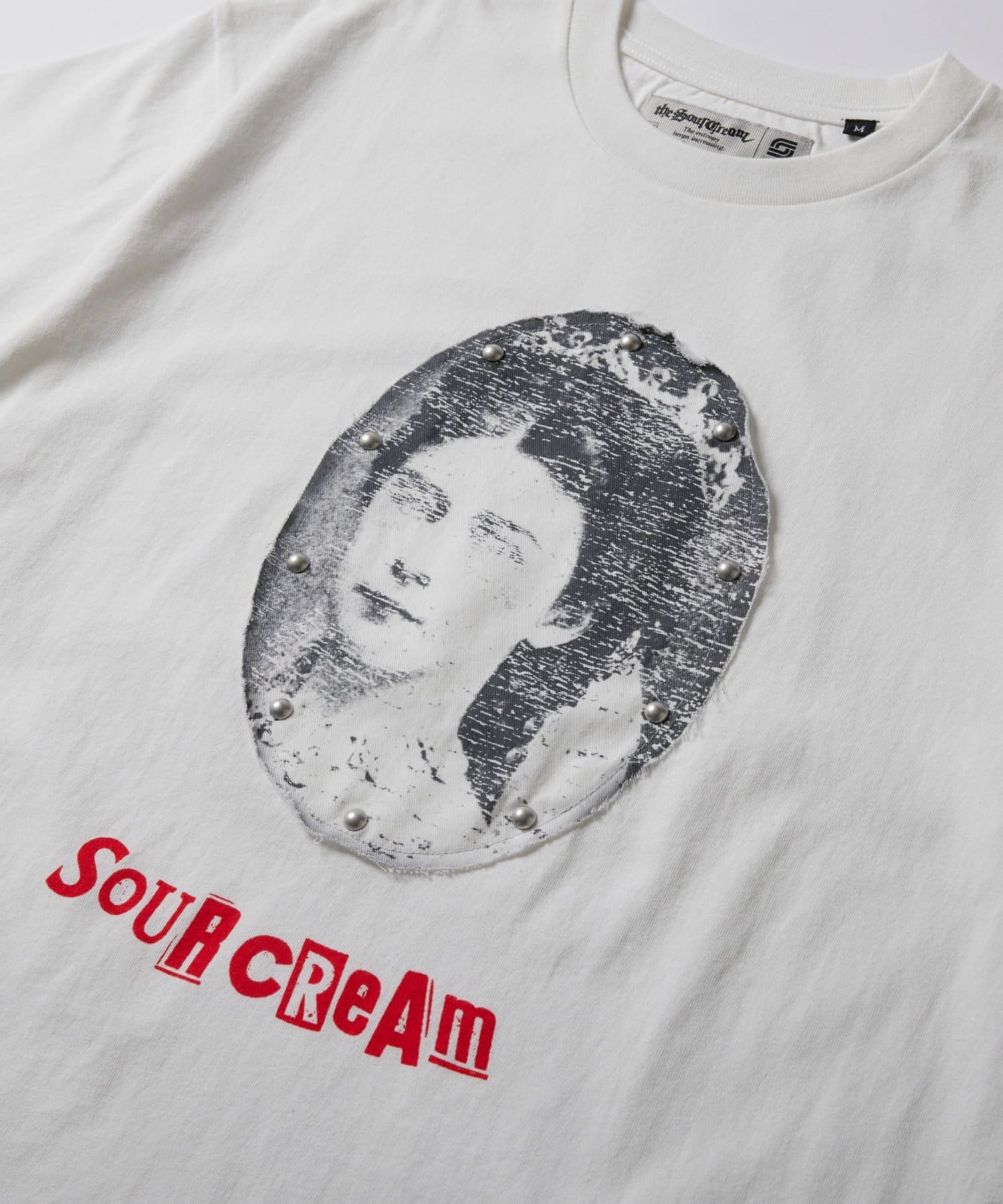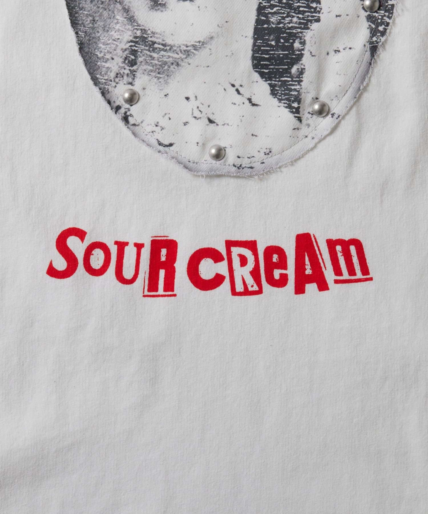 ・目を引くデザインで個性を演出!SourcreamリメイクスタッズTシャツ。