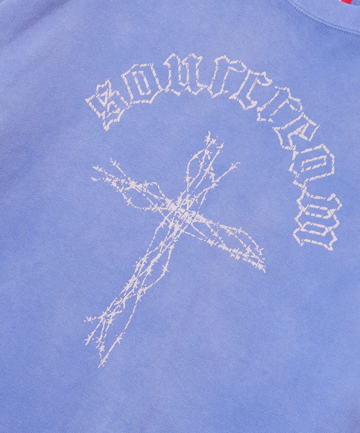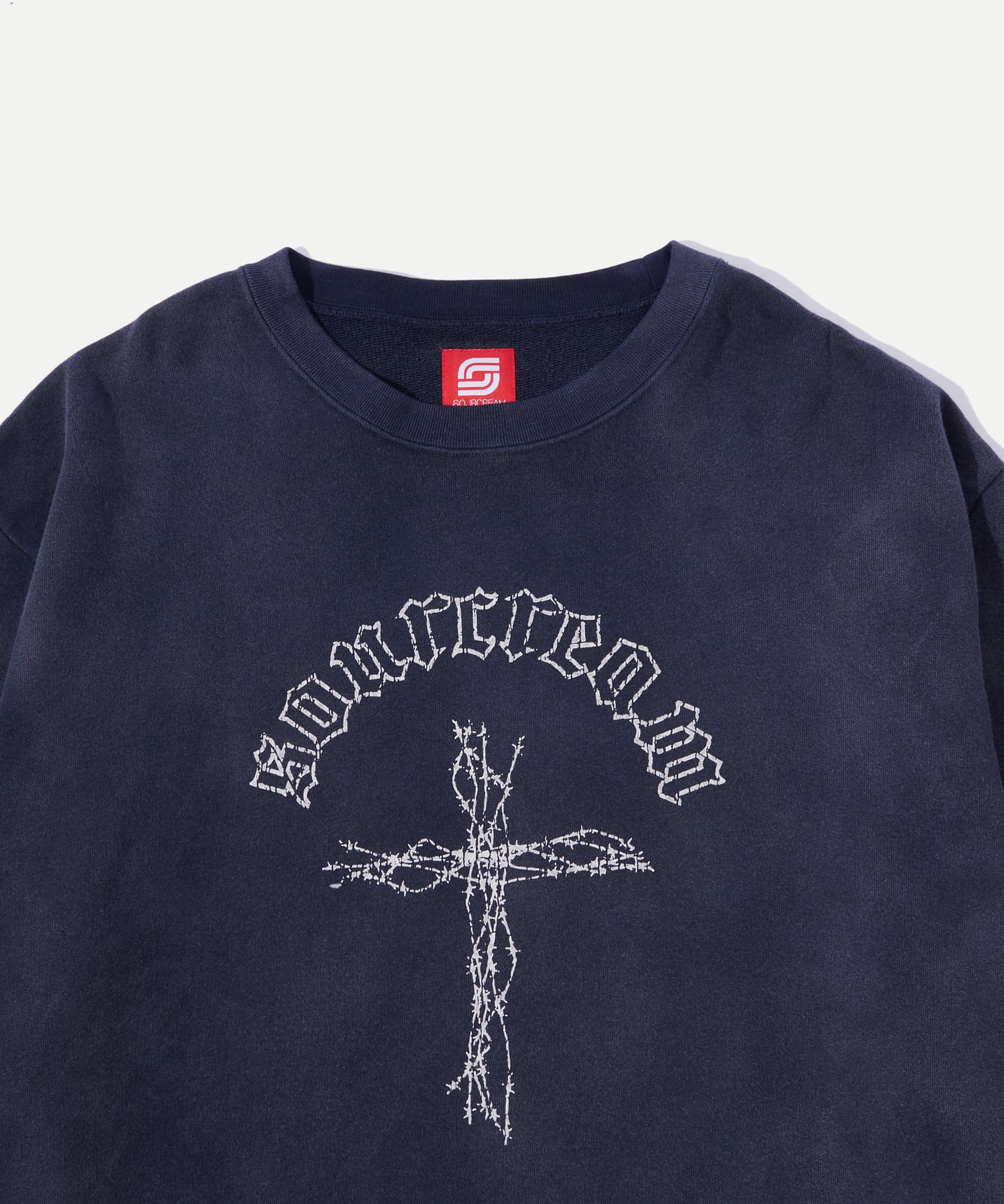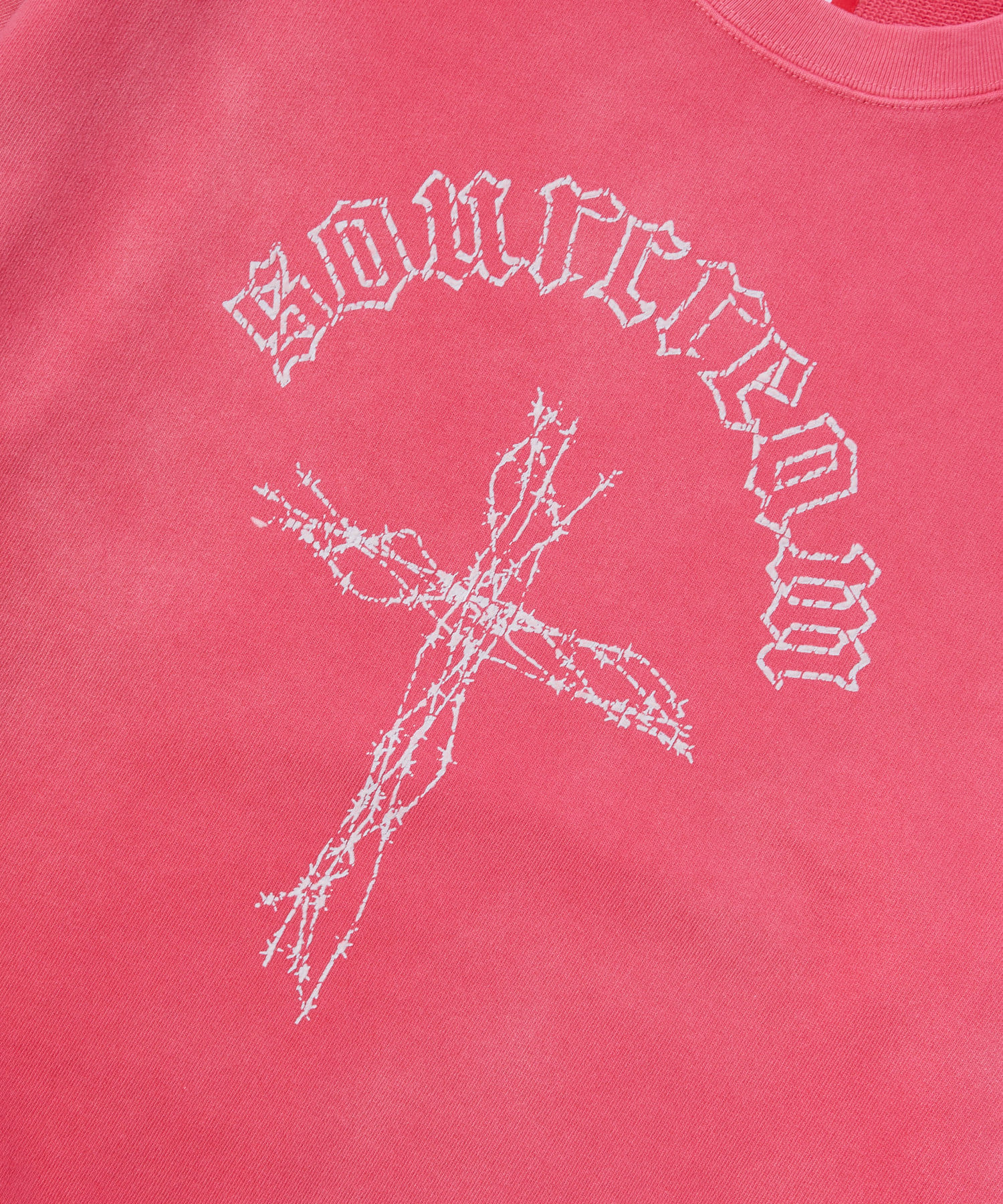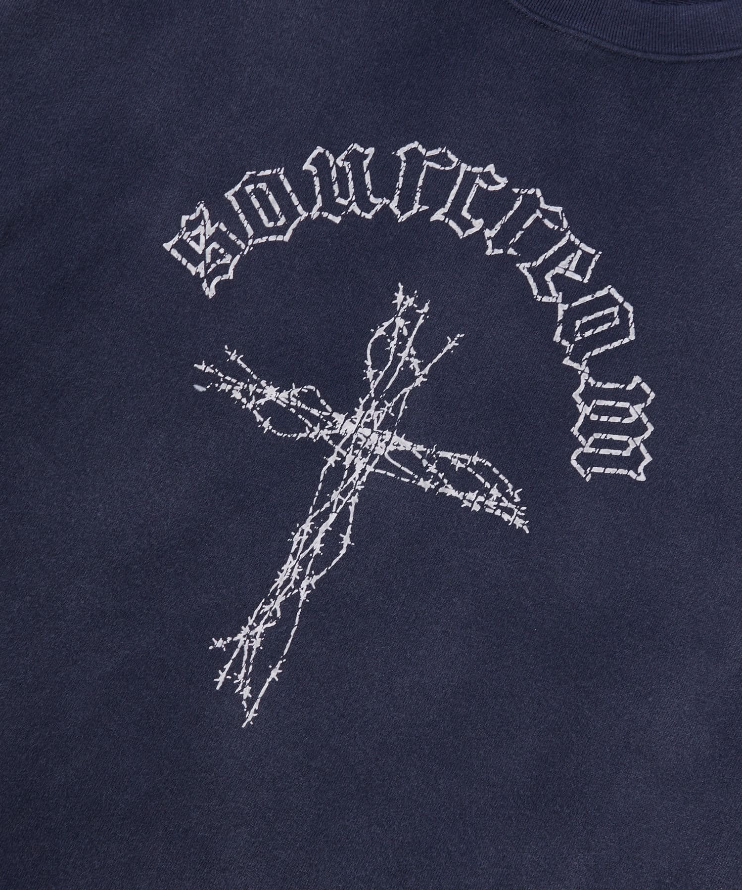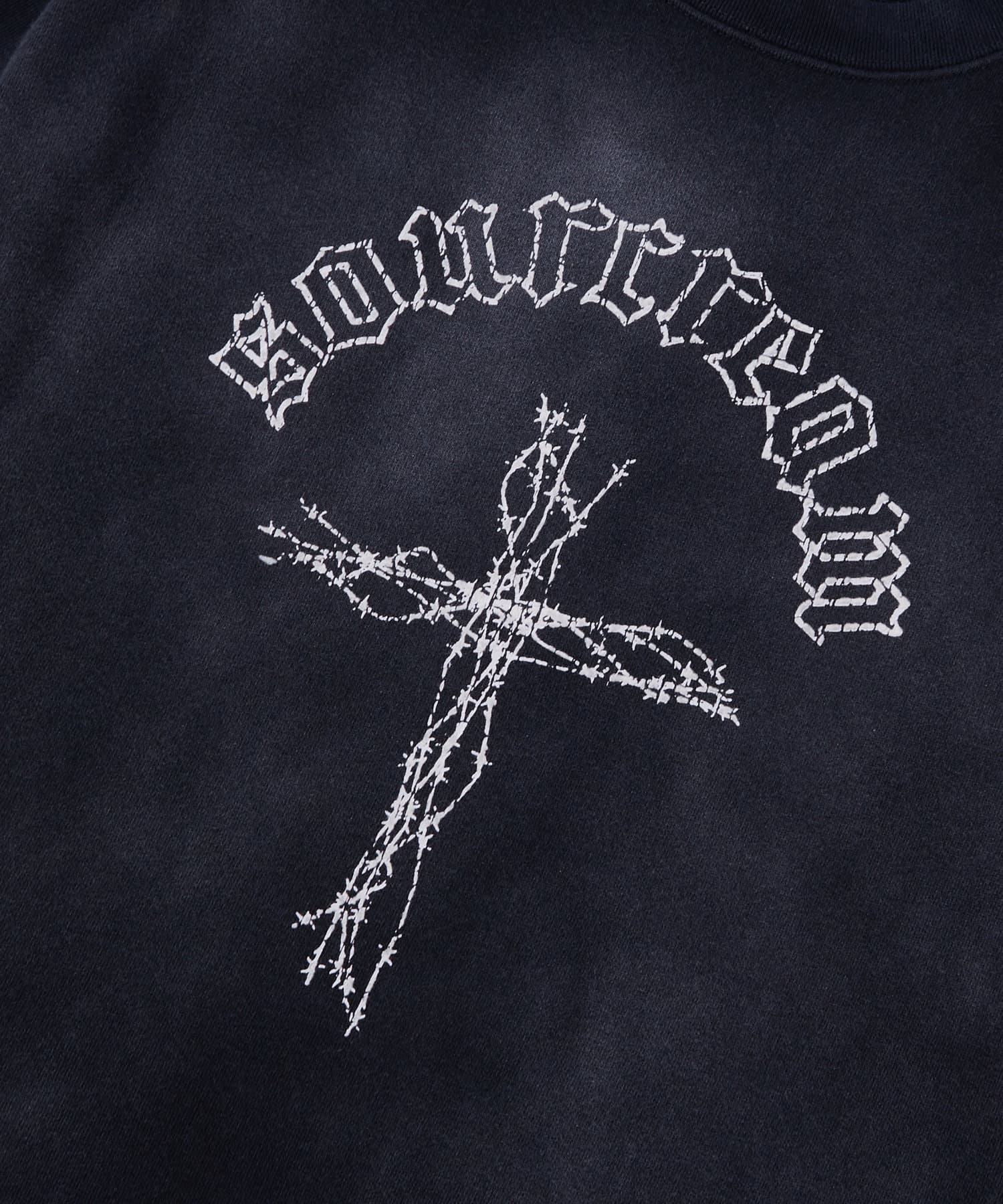 ・古着のムードが出るひび割れプリント。ボディは日焼け加工を施しヴィンテージライクな仕上がりです。