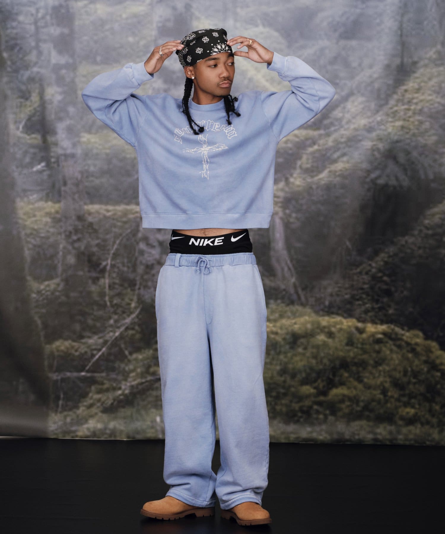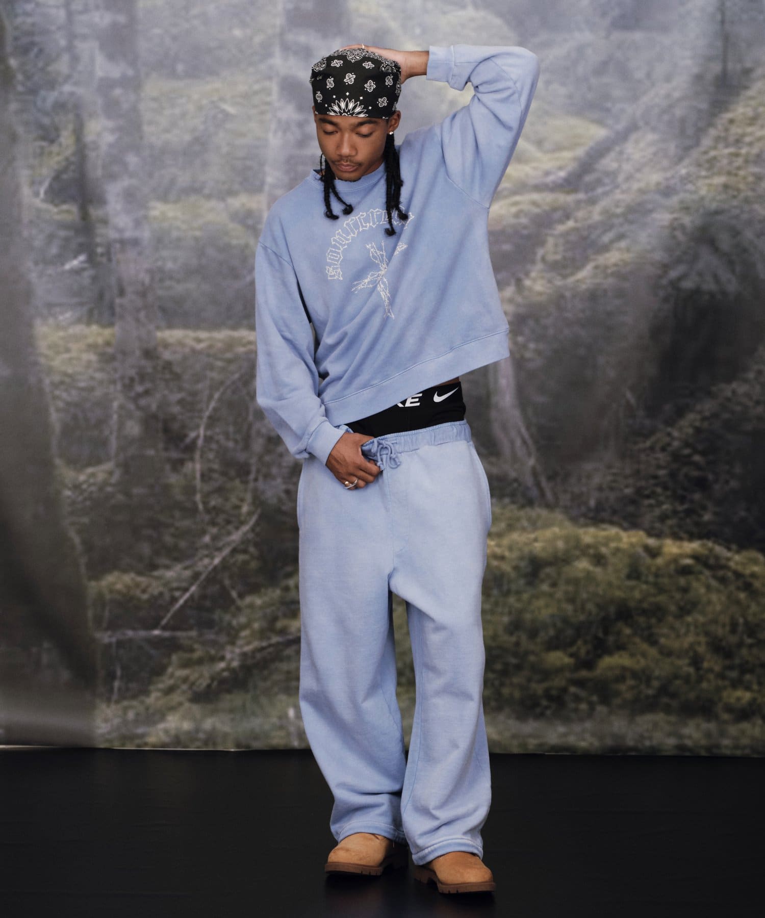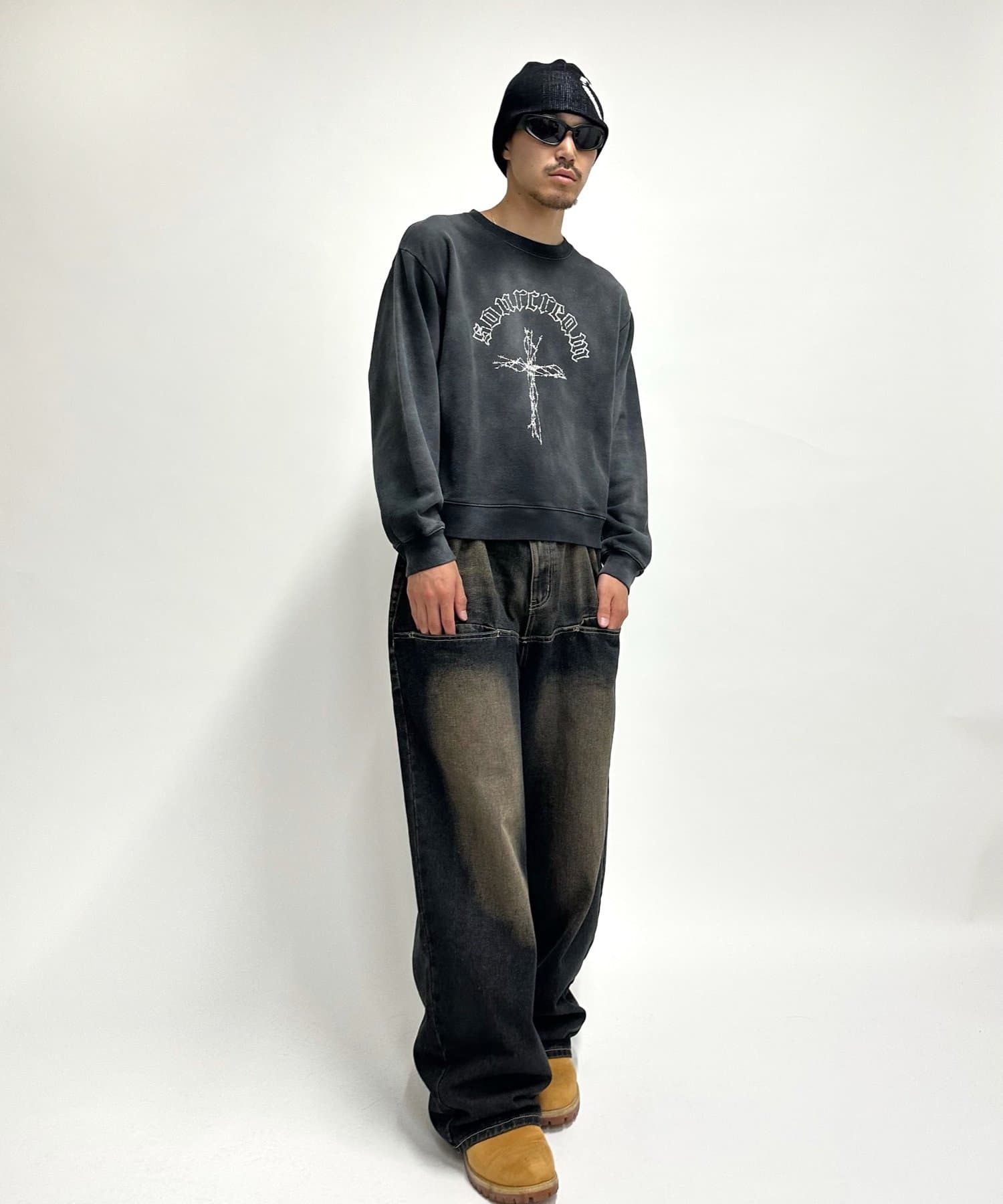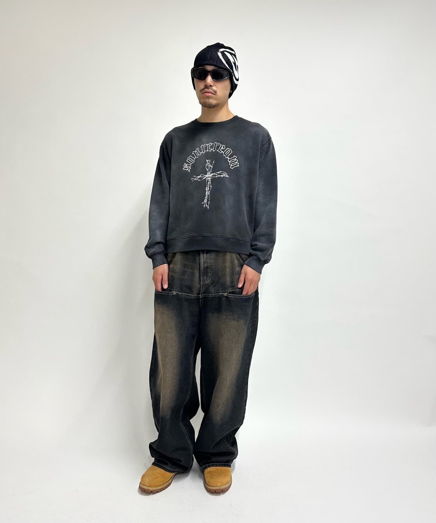 ・ボトムは加工感のあるデニムで合わせる強めのストリートスタイル、