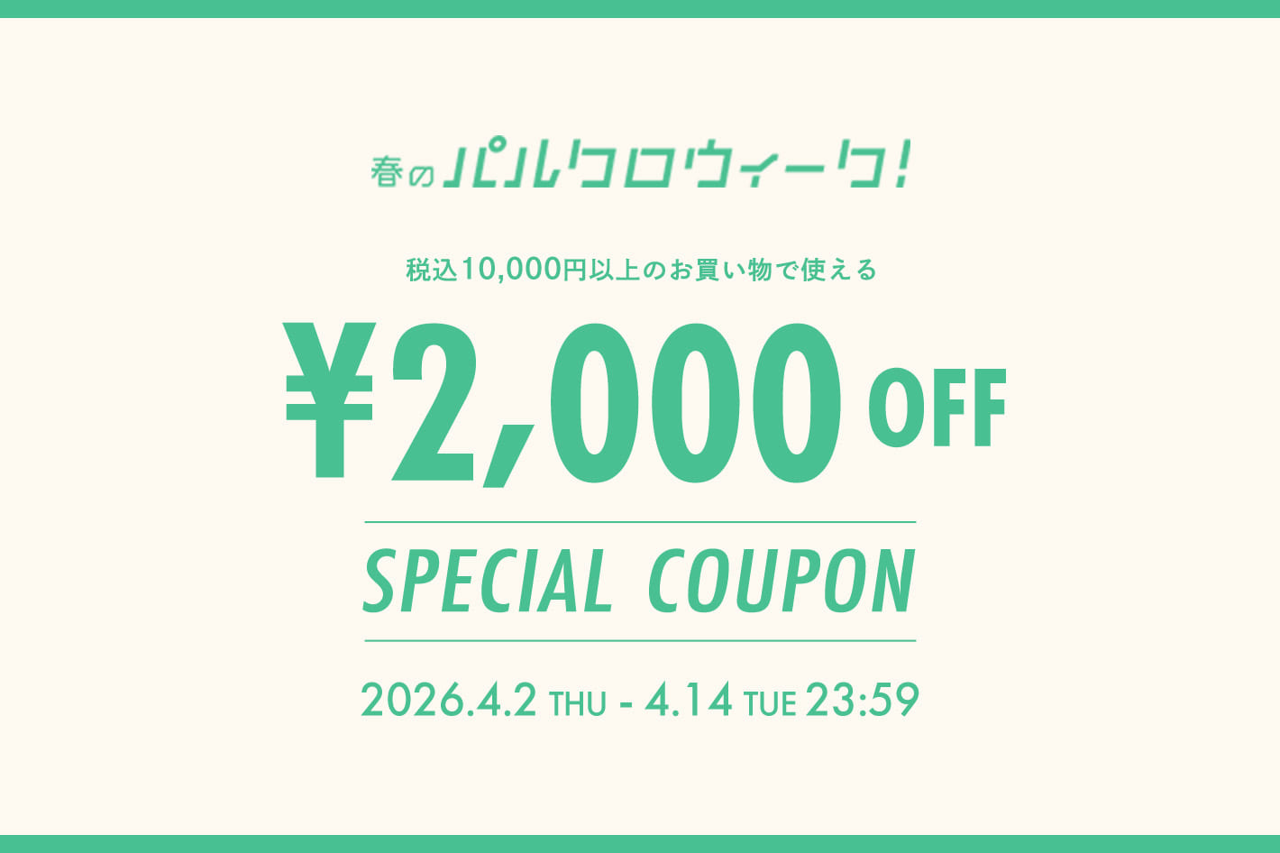 2026.04.02 店舗とオンラインそれぞれで使える!2,000円OFFクーポン配布!