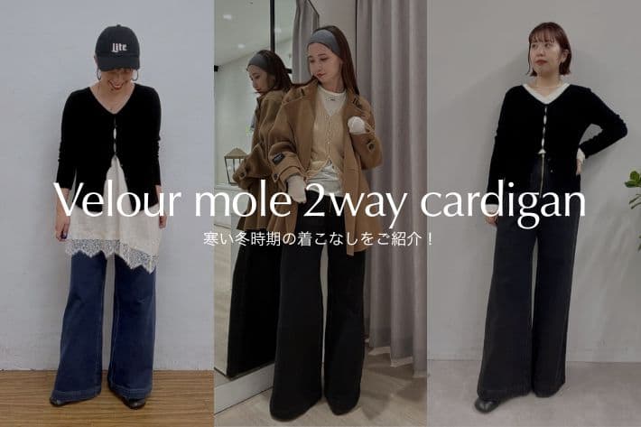 柔らかな着心地+細見え効果抜群!ベロアモール2WAYカーディガン
