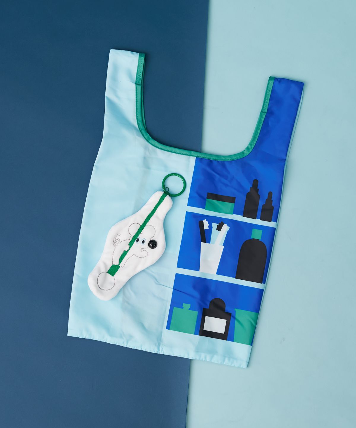 エコバッグはコンパクトにたたむとポーチにぴったり収まり、持ち歩きにとても便利。ポーチもとても可愛いデザインで、マスコットのようにバッグに付けてチャームとしても◎