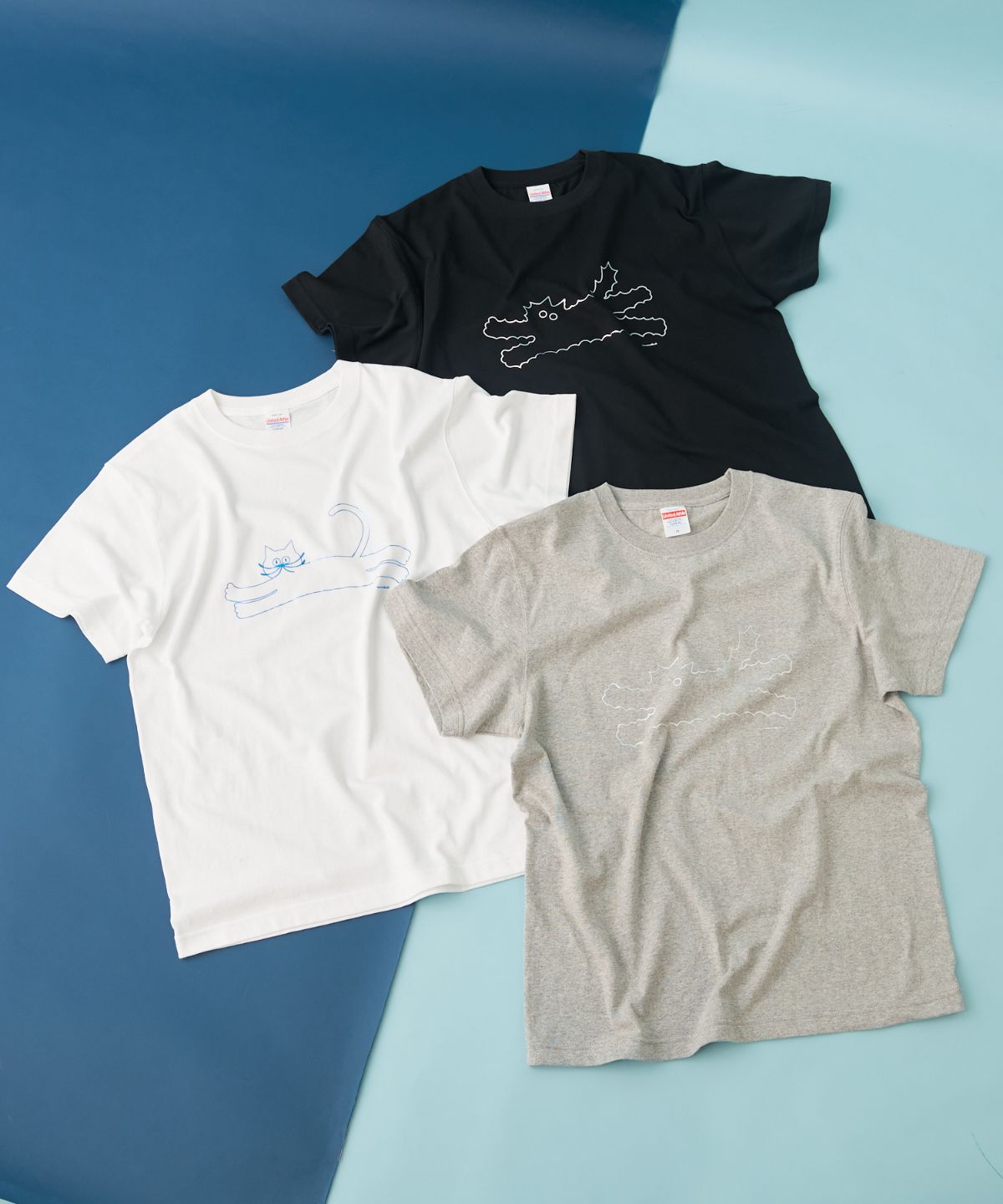 きらっとした箔が目を惹くねこのプリントTシャツ。シンプルなカラー展開でどんな服装にも合わせやすくコーディネートしやすいです。
