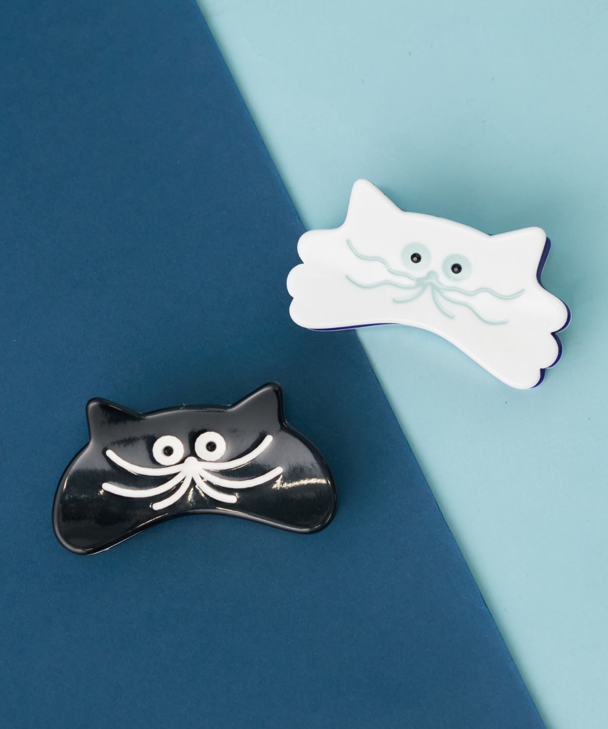 umaoの描くユニークな表情のねこがポイントのヘアバンスクリップ。小ぶりなのでハーフアップスタイルにおすすめ。カジュアルスタイルによく合うので1つは持っておきたいアイテムです。
