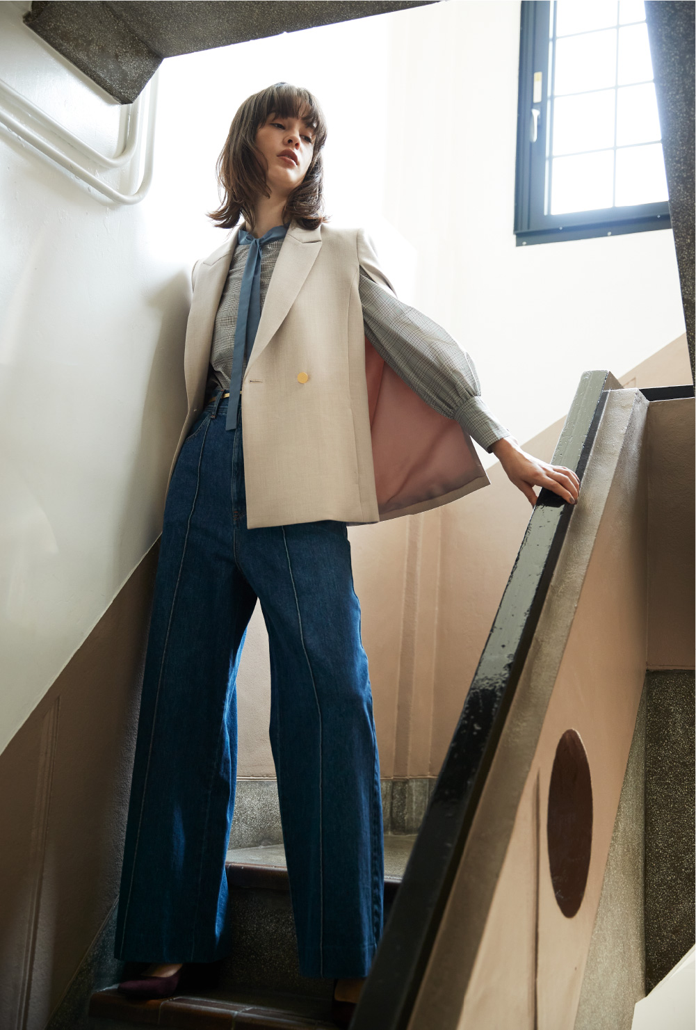 jacket ¥34,000+tax blouse ¥17,000+tax denim ¥25,000+tax (CURRENTAGE) belt ¥7,500+tax (MAISON BOINET) shoes ¥21,000+tax (STATUS)