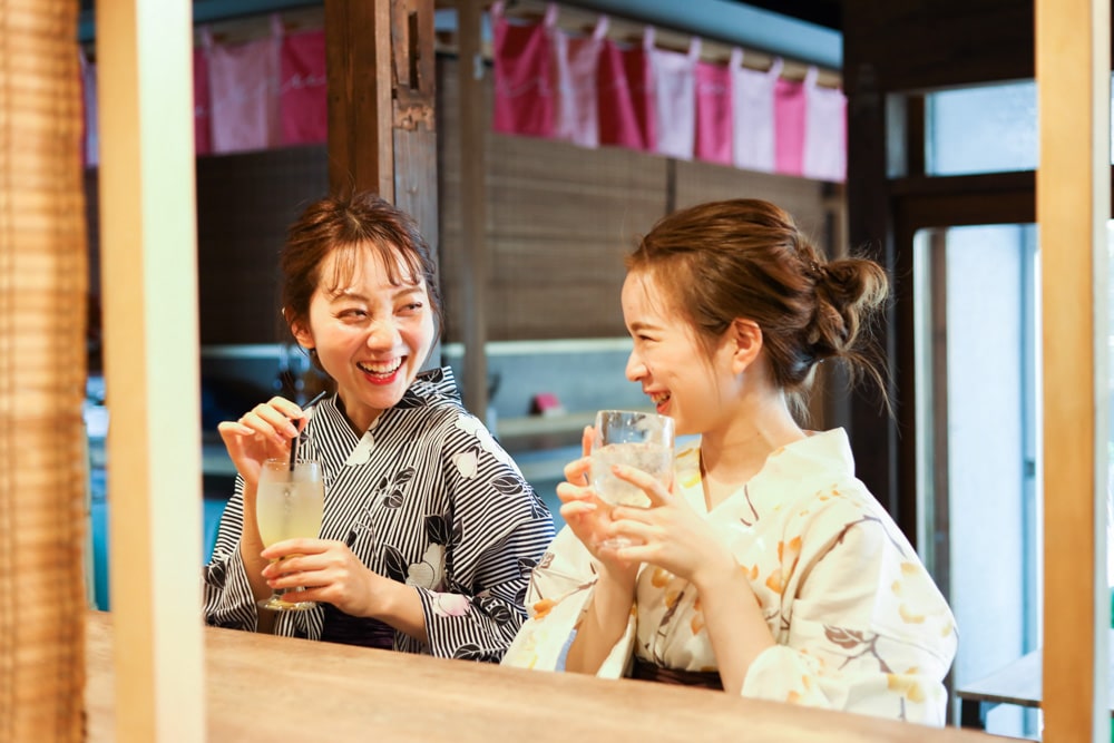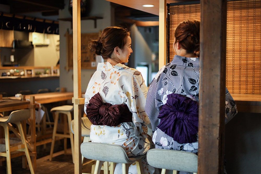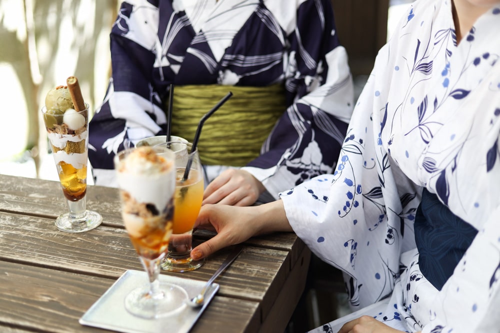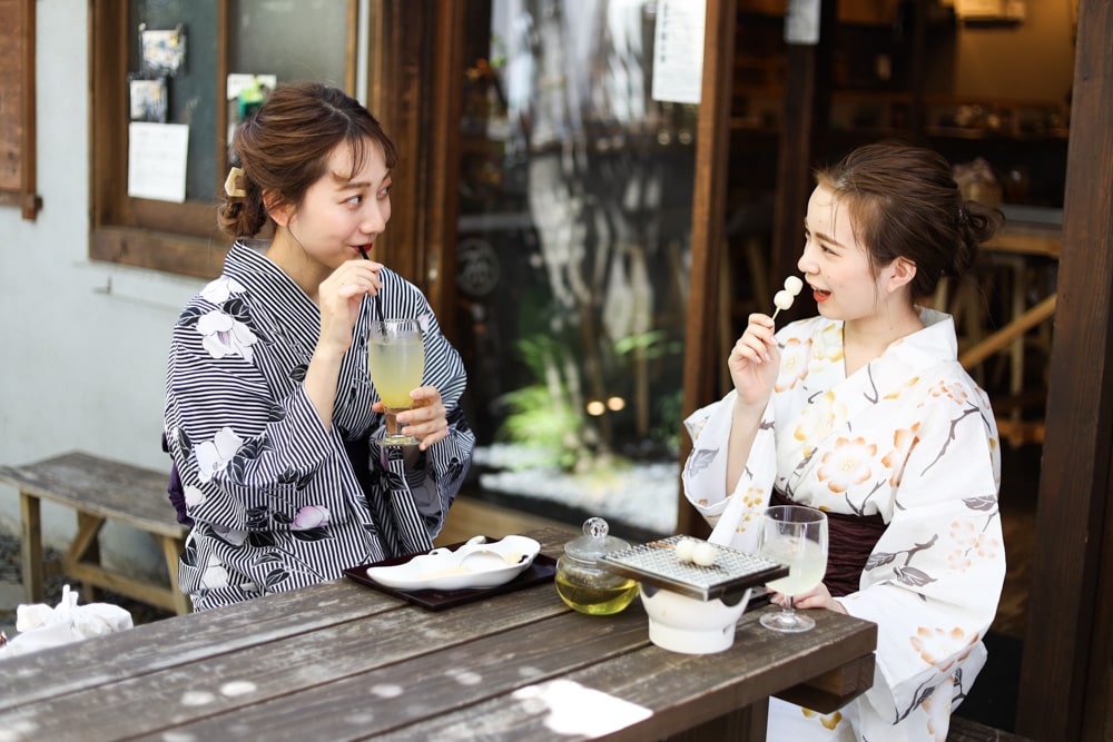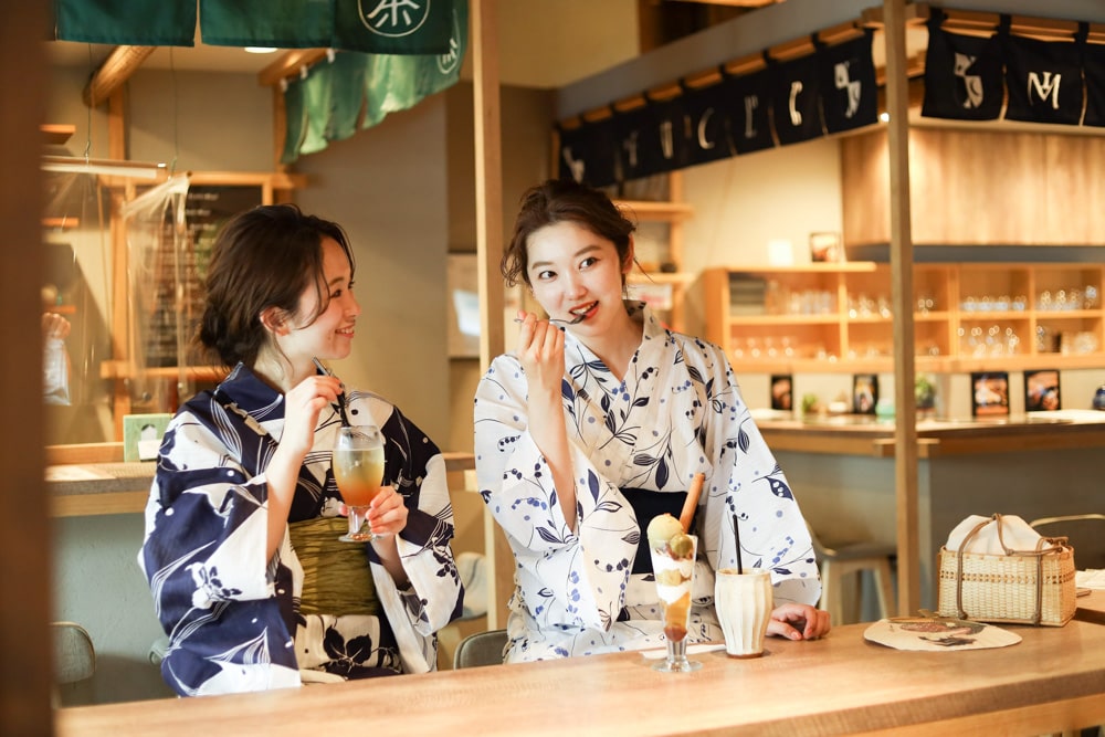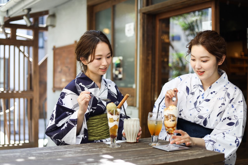 浴衣を着てカフェや散策で