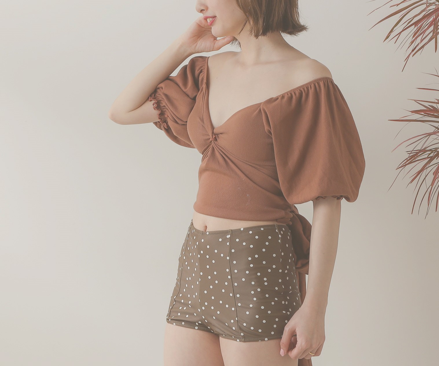 - リブBACKリボンパフ袖トップス¥5,900BUY