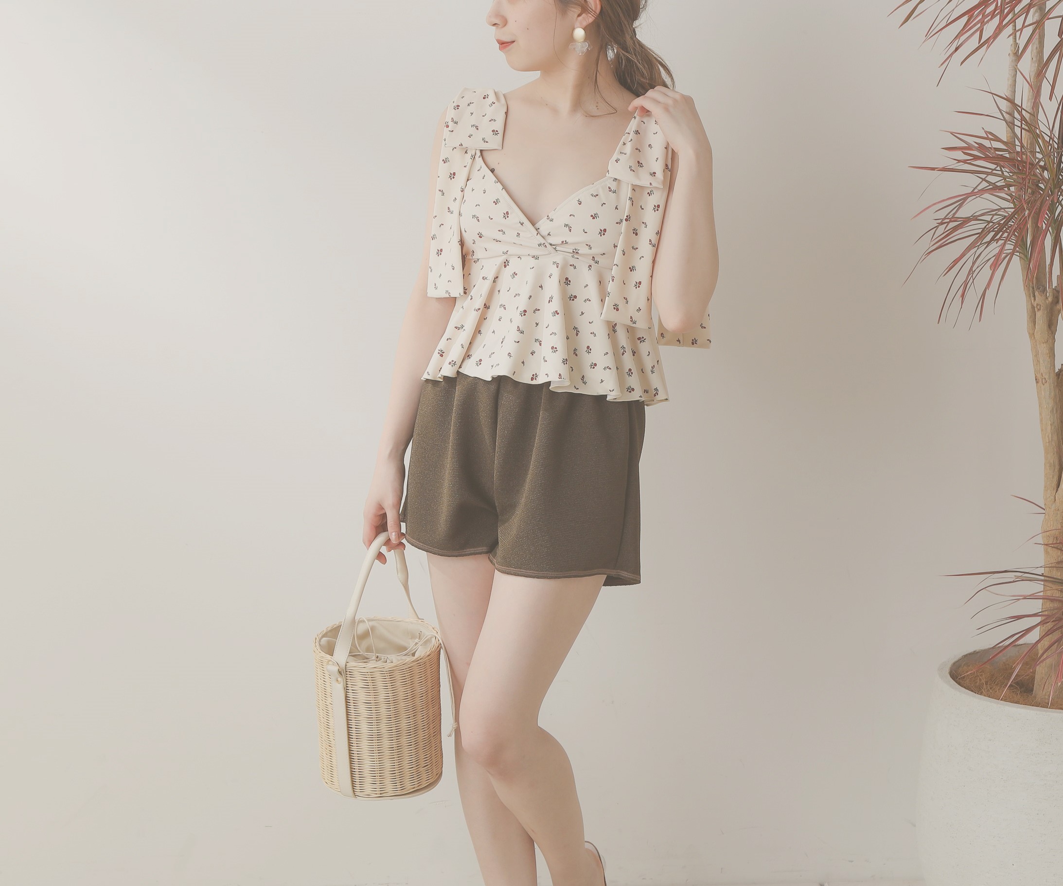 - 花柄フリルカシュクールリボントップス¥4,900BUY