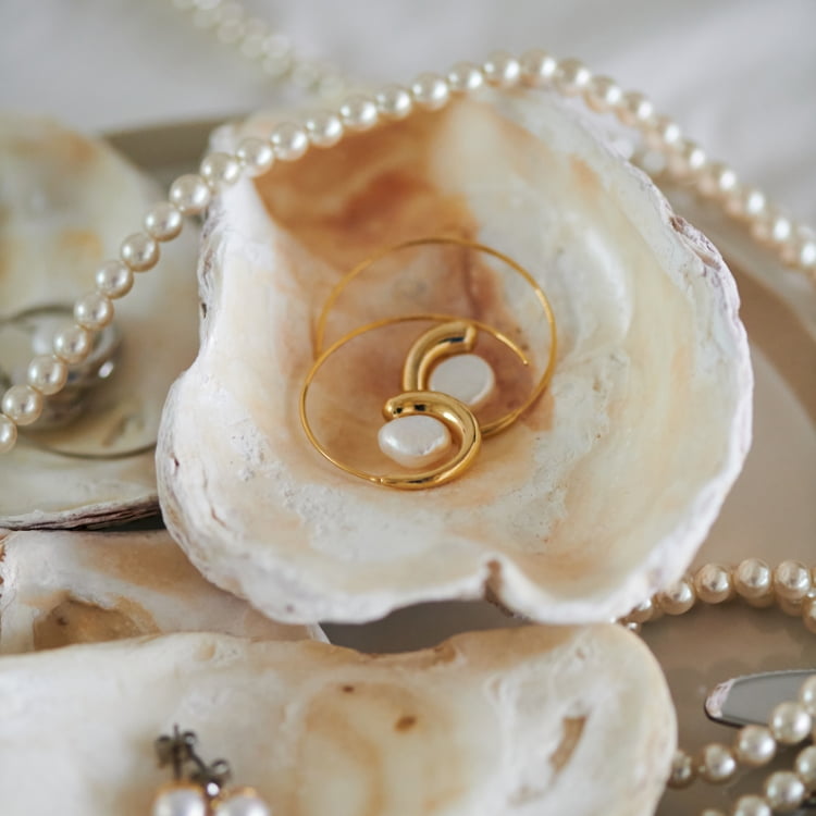 Pearl Crystal Long Pierced Earrings Presence, Elegant shine, Rocking motion