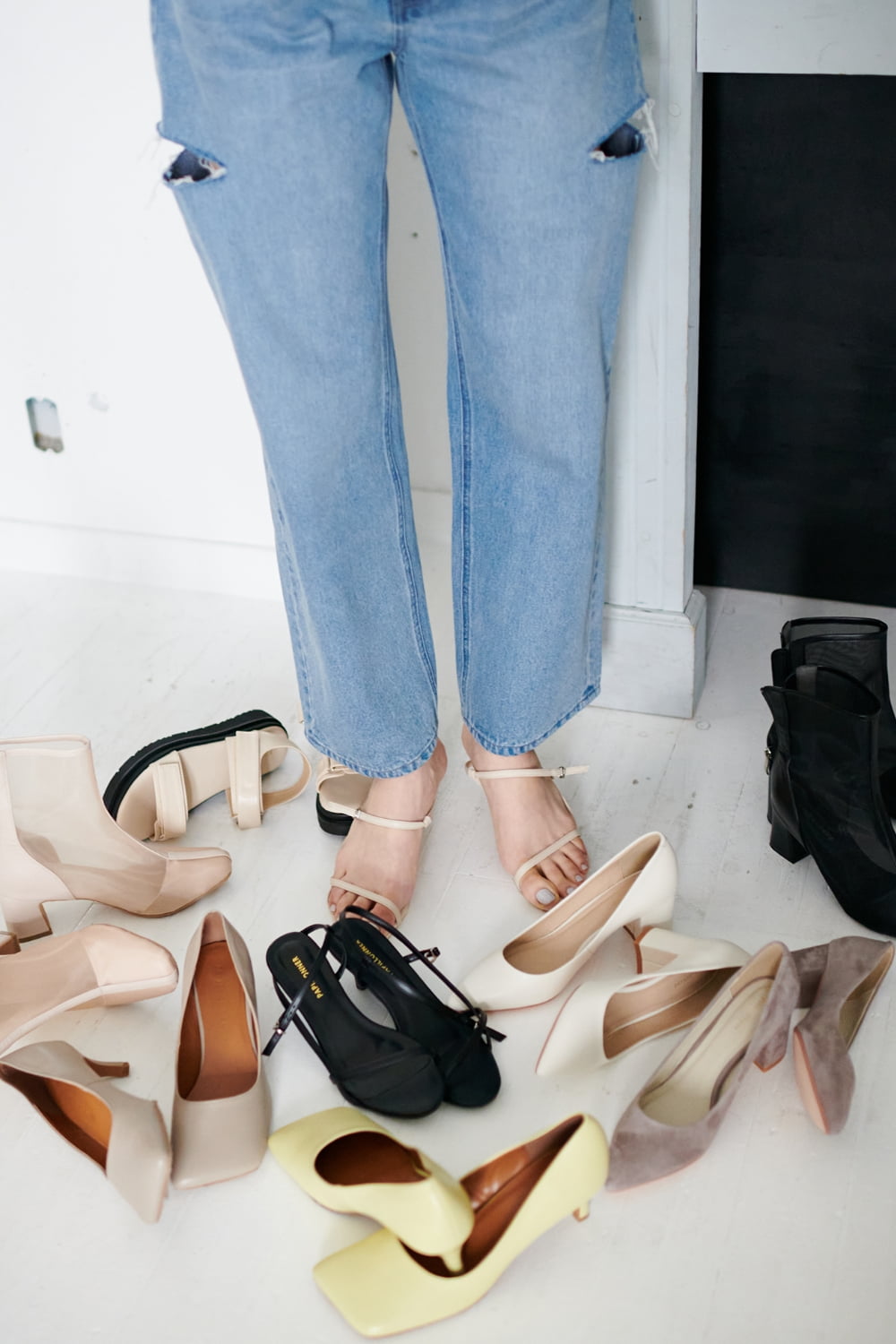 Strap Heel Sandal Slender, Synthetic leather