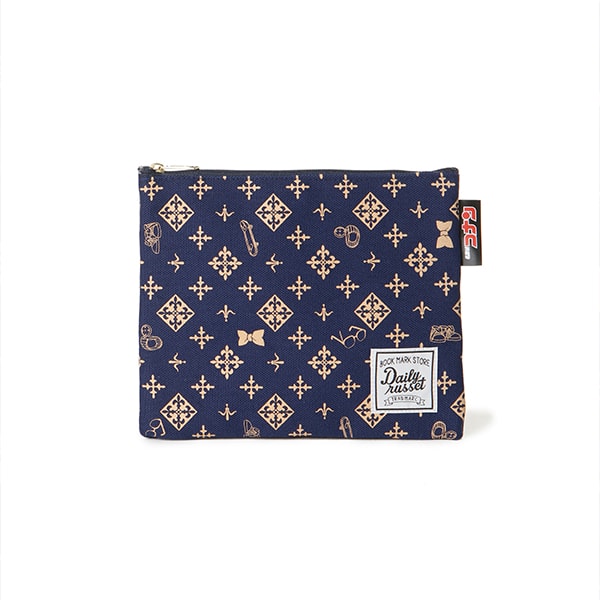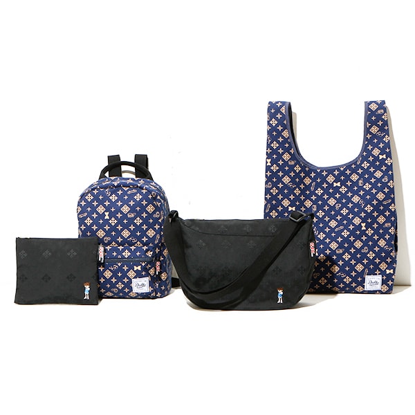 01:ネイビーはモノグラムの中に探偵アイテムを散りばめた遊び心のあるデザイン。