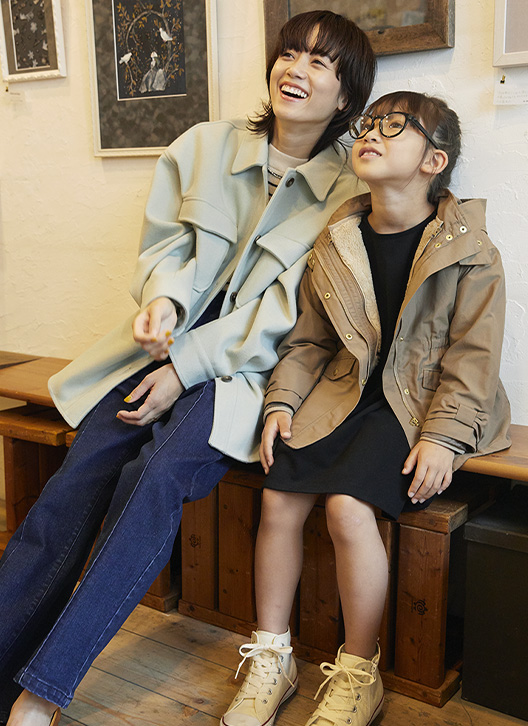 〔woman〕JACKET ¥9,800 KNIT ¥4,900 PANTS ¥3,900 〔men’s〕JACKET ¥4,900 CUT&SEWN ¥2,900 PANTS ¥4,900 SHOES ¥7,000 〔kids〕JACKET ¥8,900 CUT&SEWN ¥2,500 PANTS ¥2,500