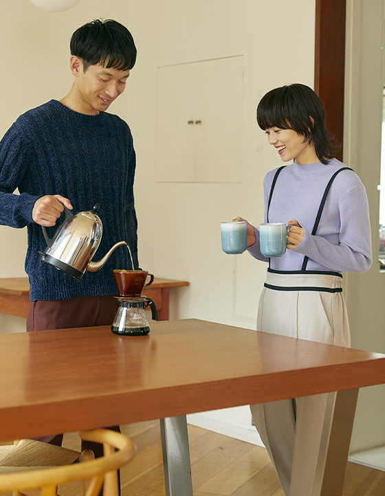 〔woman〕KNIT ¥2,900 PANTS ¥4,900 〔men’s〕KNIT ¥4,900 PANTS ¥3,900