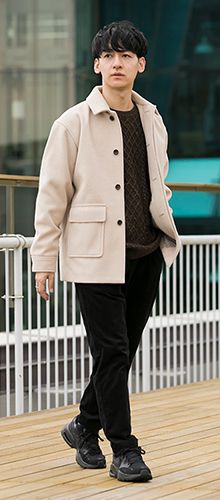 COAT ¥9,800 KNIT ¥4,900 CUT&SEWN ¥2,500 PANTS ¥3,900 SHOES ¥3,900