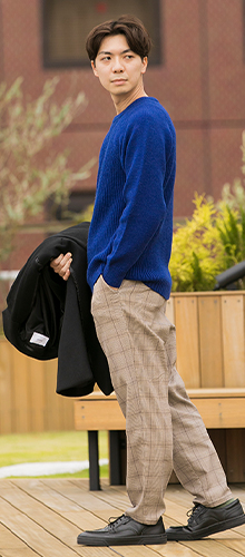 KNIT ¥6,900 PANTS ¥3,900 SHOES ¥15,800 COAT ¥7,900